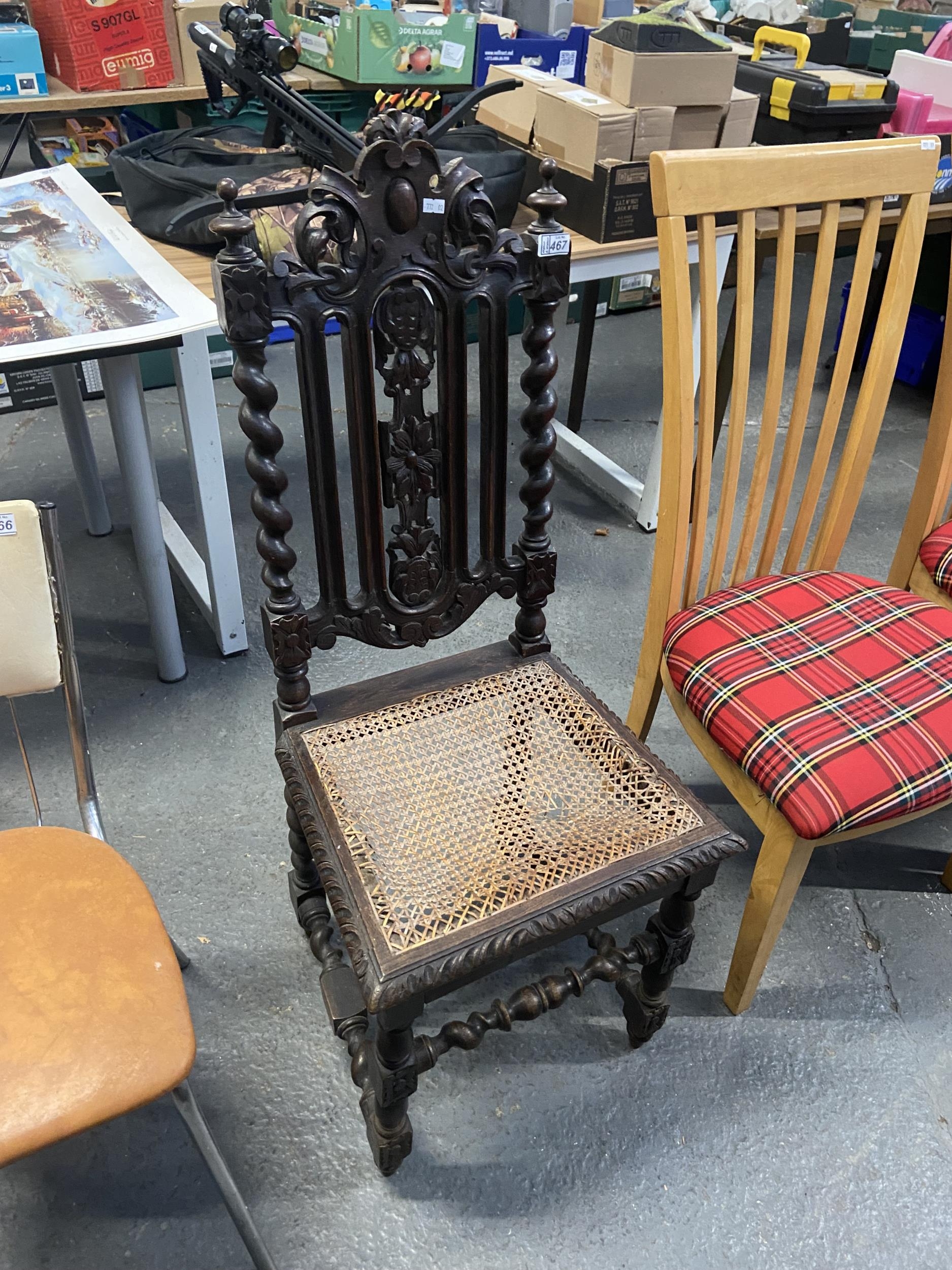 Early ornate rush seated high back chair