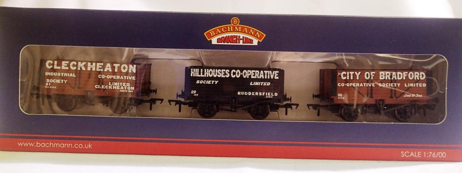 Bachmann 37-075N, set of three Northern Co-Op private owner wagons, Bradford Huddersfield, Cleckheaton, near mint, storage wear to box, National Railway Museum Exclusive. P&P Group 1 (£14+VAT for the first lot and £1+VAT for subsequent lots)