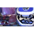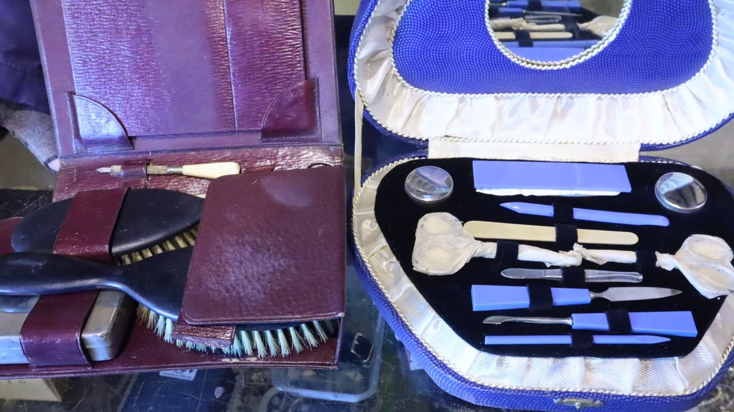 Unused vintage cased manicure set with a traveling vanity set. Not available for in-house P&P, contact Paul O'Hea at Mailboxes on 01925 659133