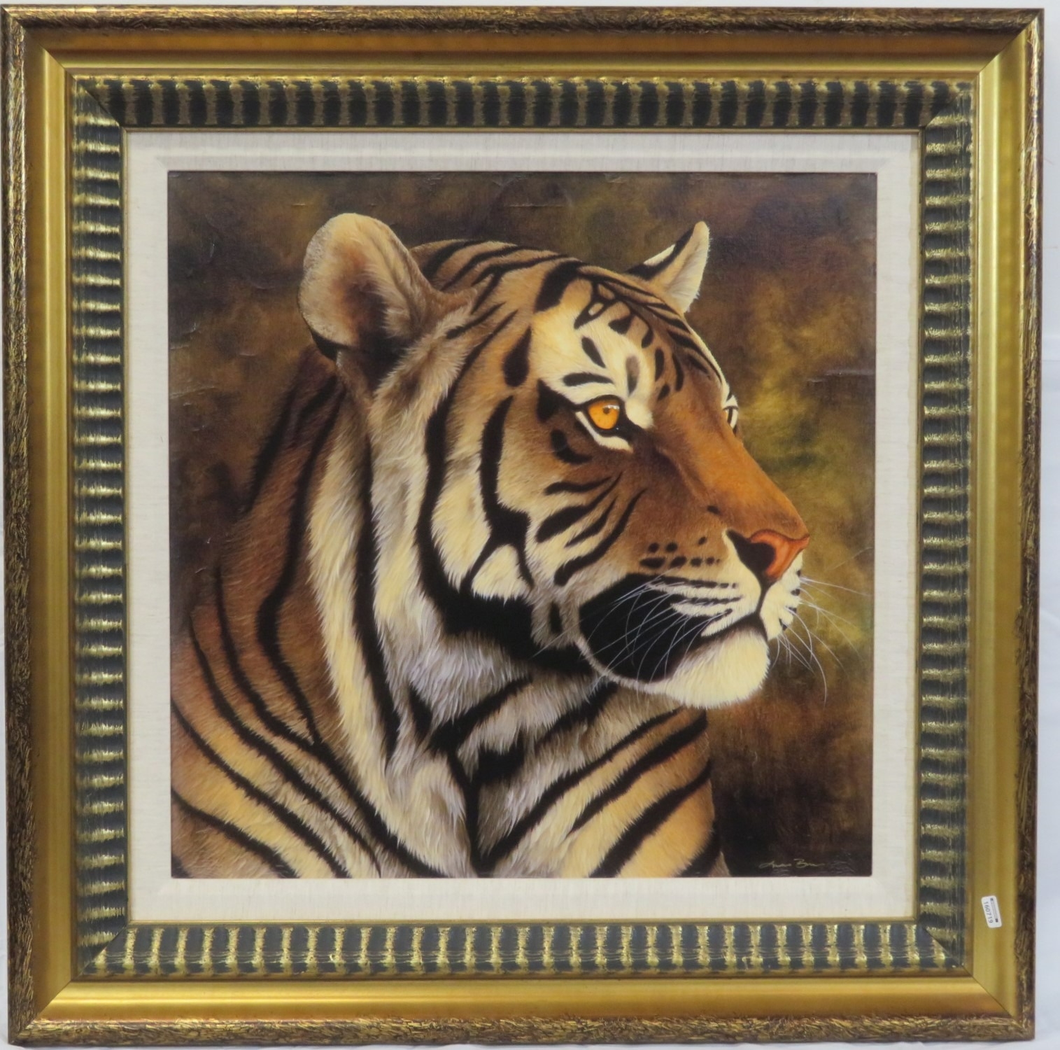 Andrew Bone 'Tiger Portrait' Giclee on Canvas, 57x57cm, Signed