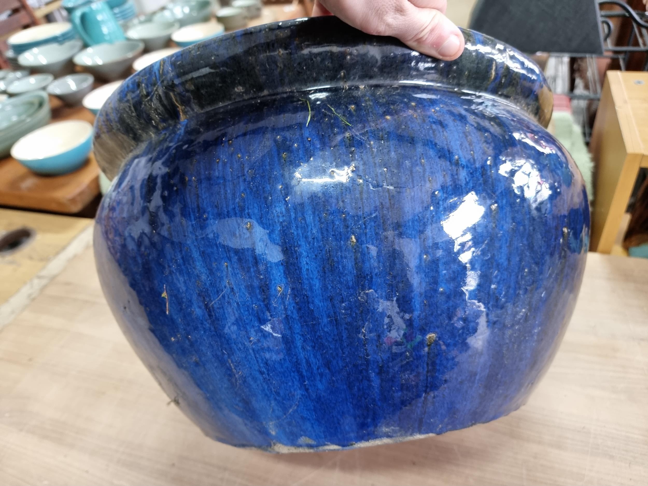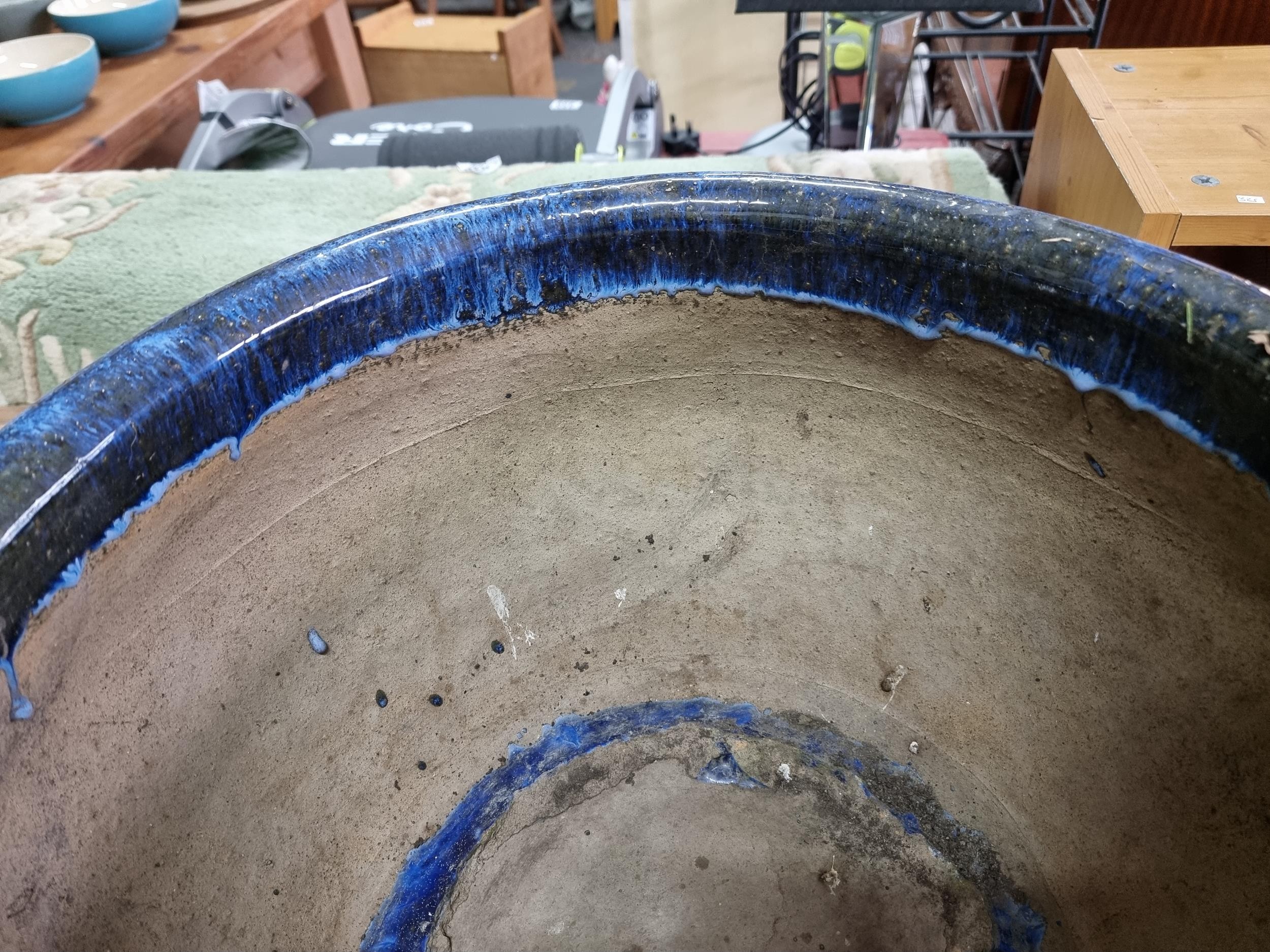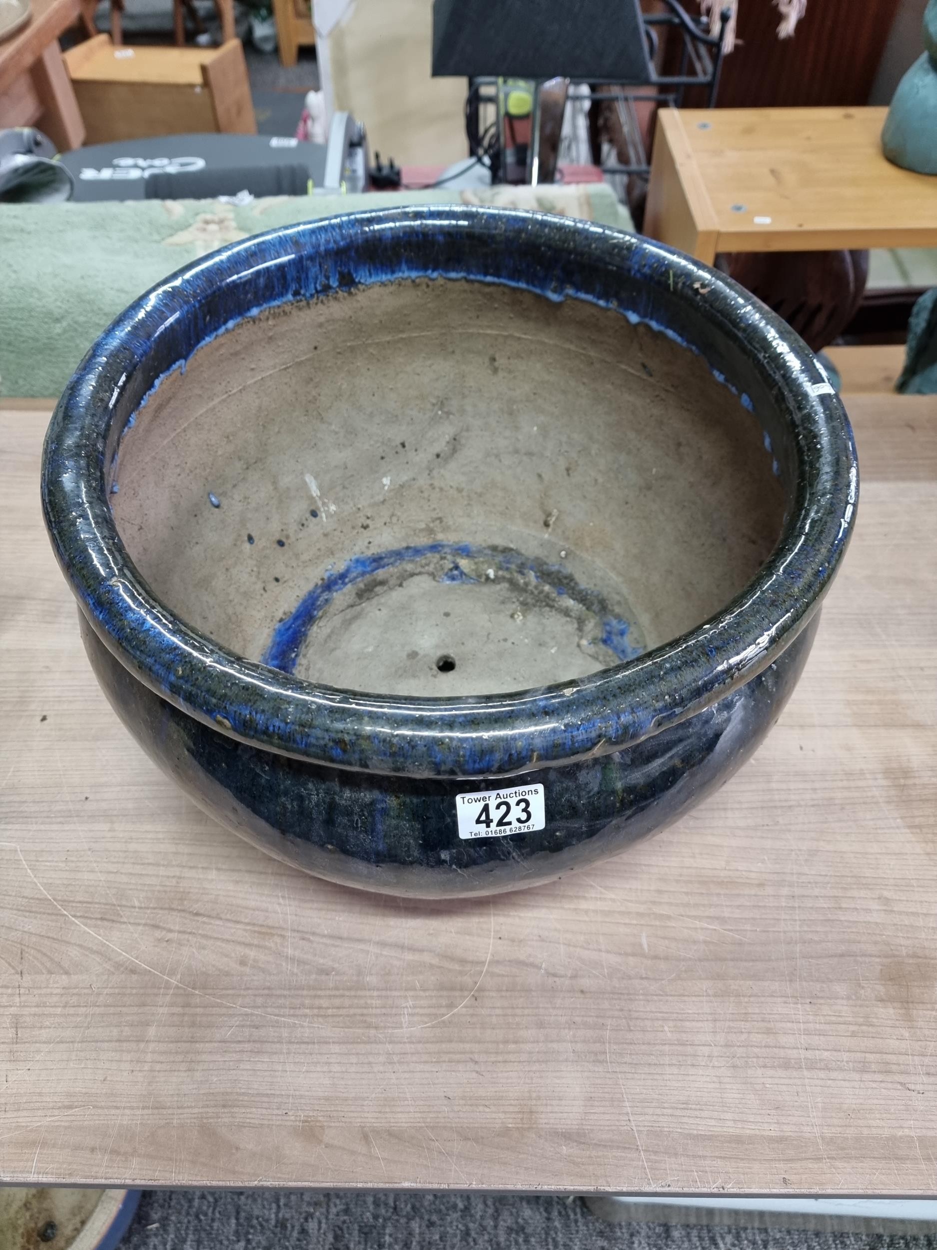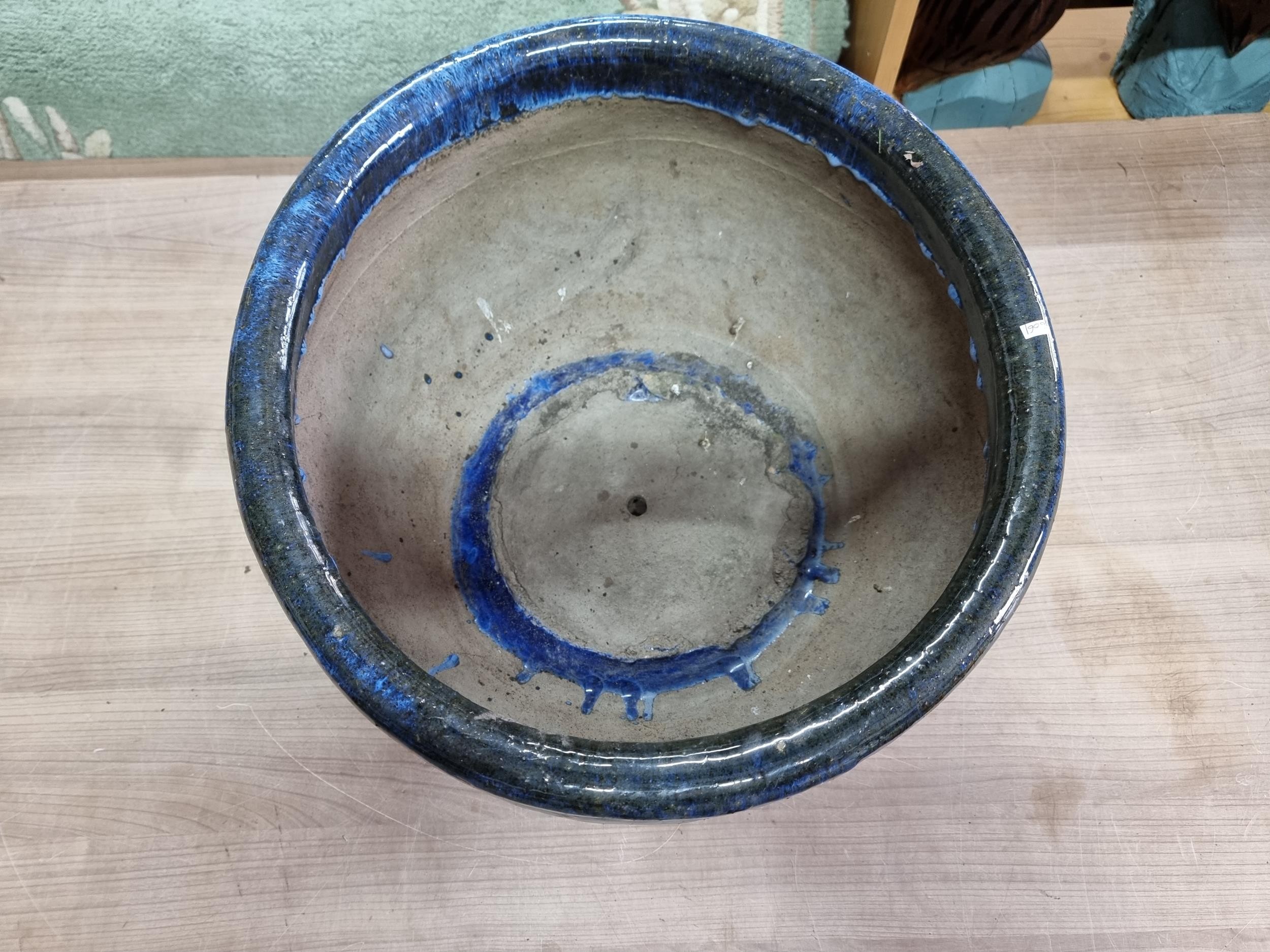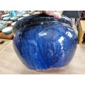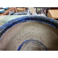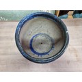 Large mottled blue planter in good order with no chips or cracks measures 28cm high 43cm diameter