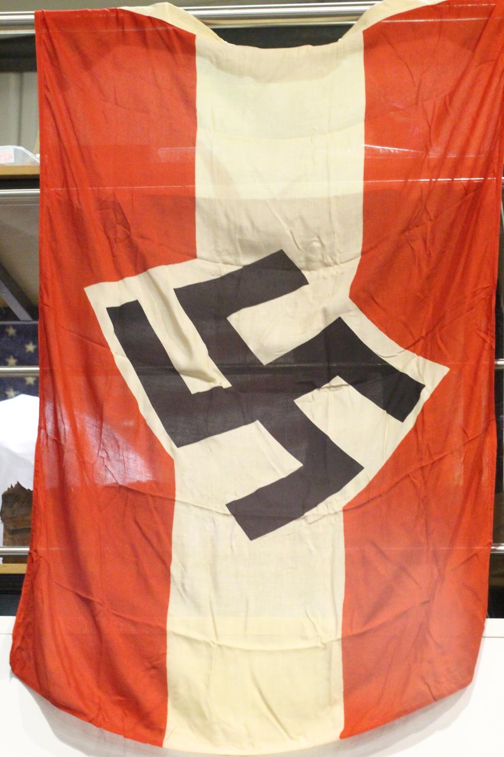 German Third Reich aged reproduction cotton Hitler Youth parade flag, 130 x 90 cm. P&P Group 1 (£14+VAT for the first lot and £1+VAT for subsequent lots)