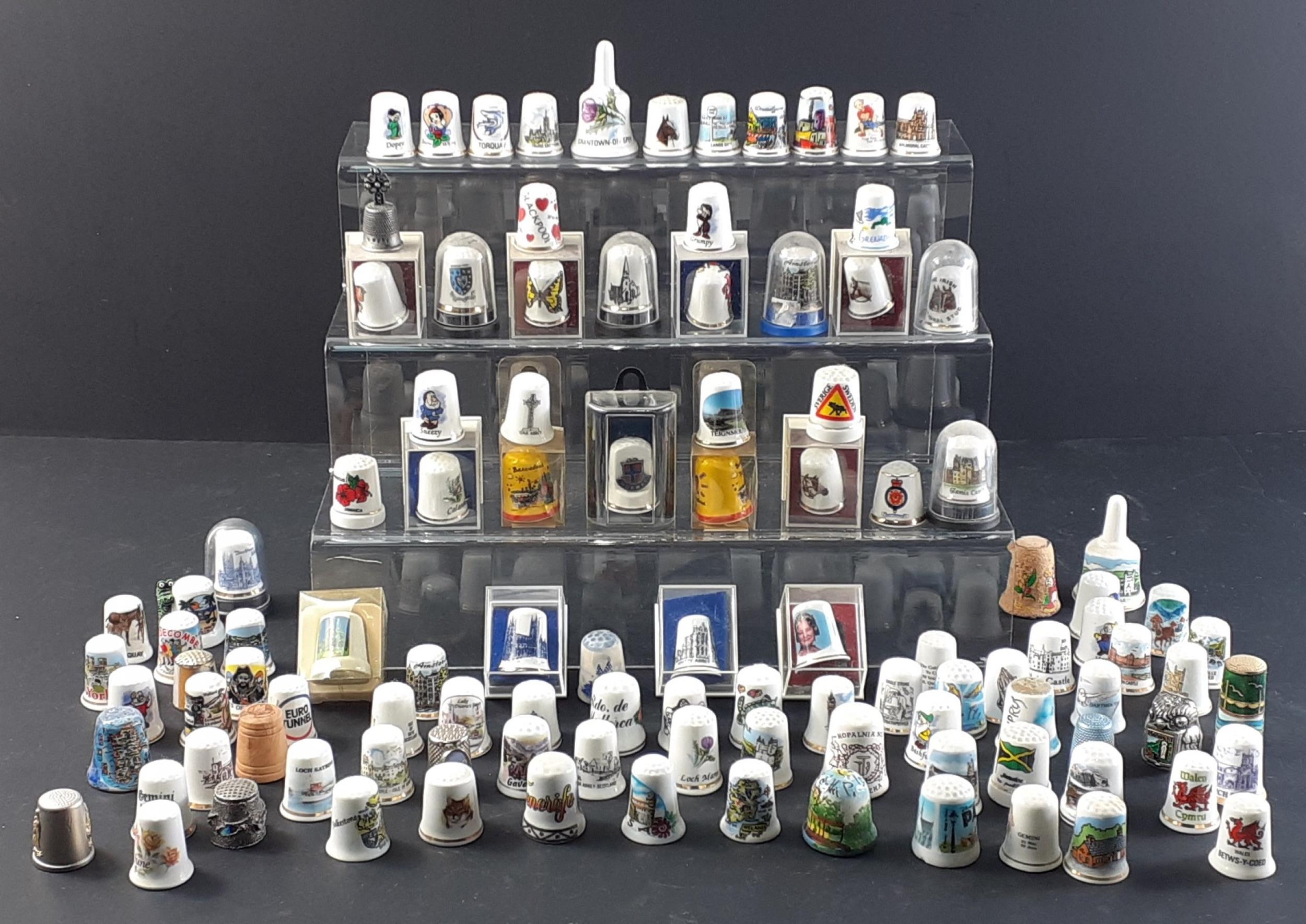 A substantial collection of THIMBLES. Many souvenir place names, characters and much much more. A wonderful collection.