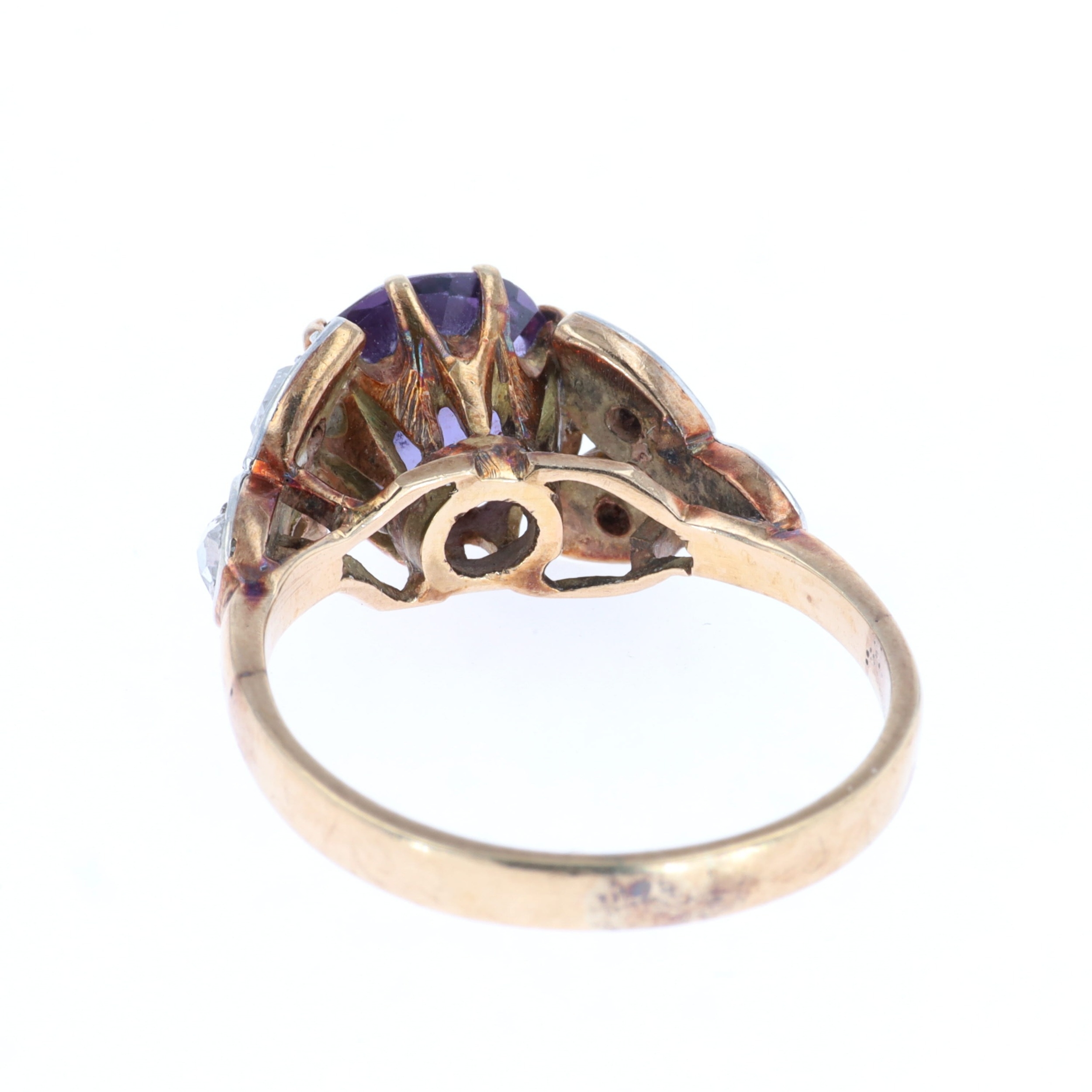 Rose Cut Diamond and Synthetic Colour Change Sapphire Gold and Platinum Ring