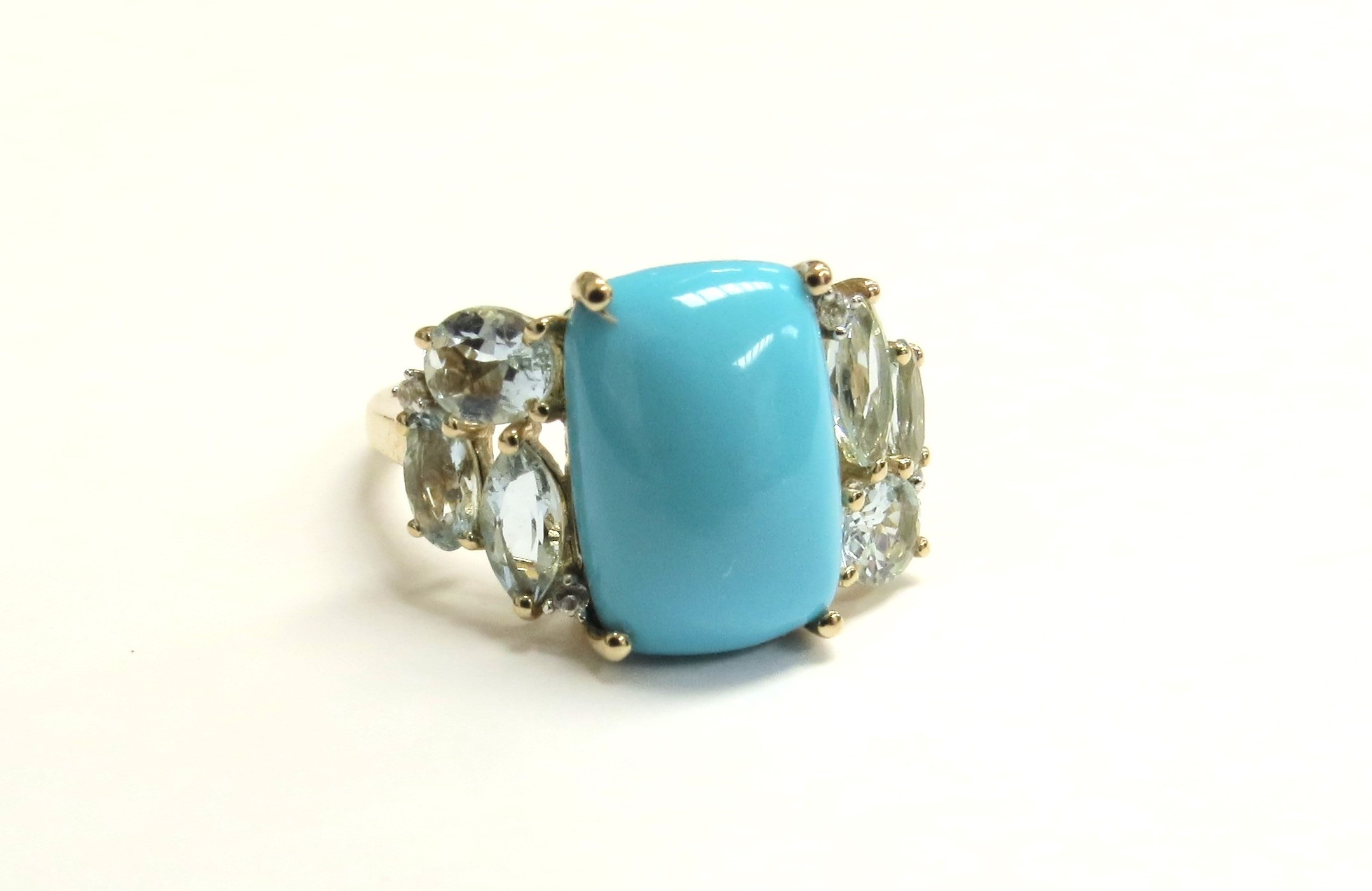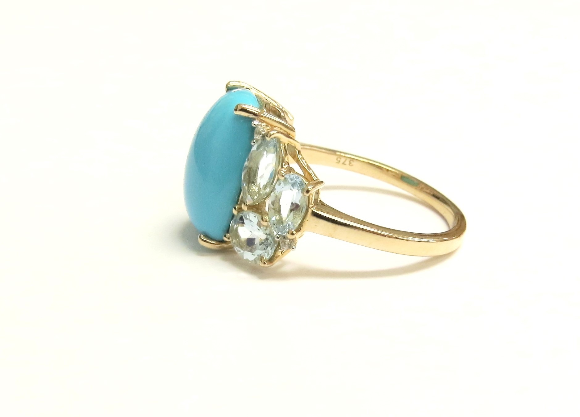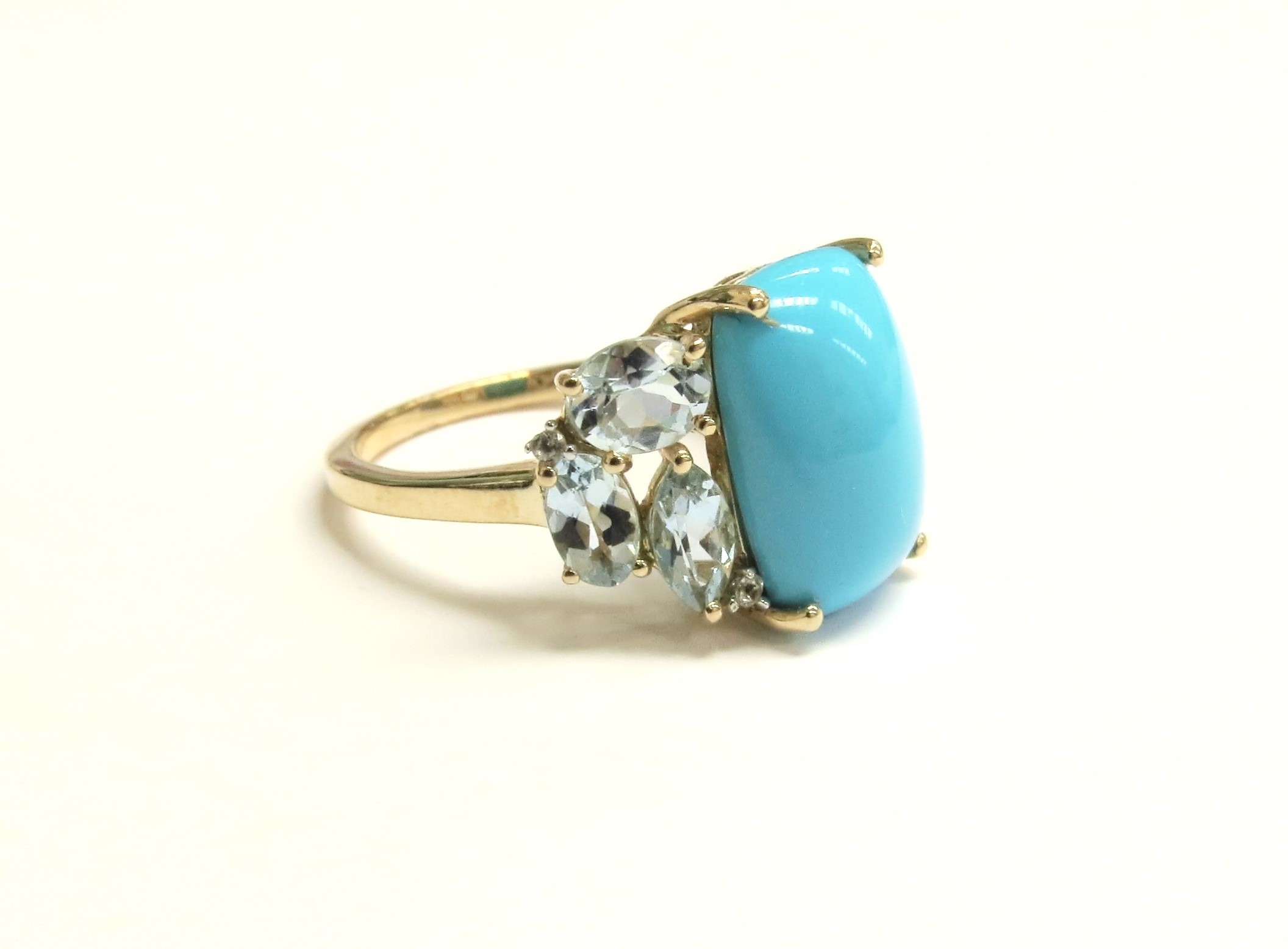 A 9ct gold sleeping beauty turquoise and Santa Maria aquamarine cluster ring. Size O, 3.5g