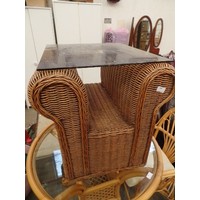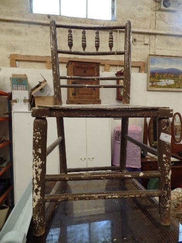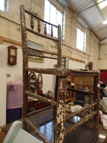 SMALL VINTAGE BROWN PAINTED CHAIR.