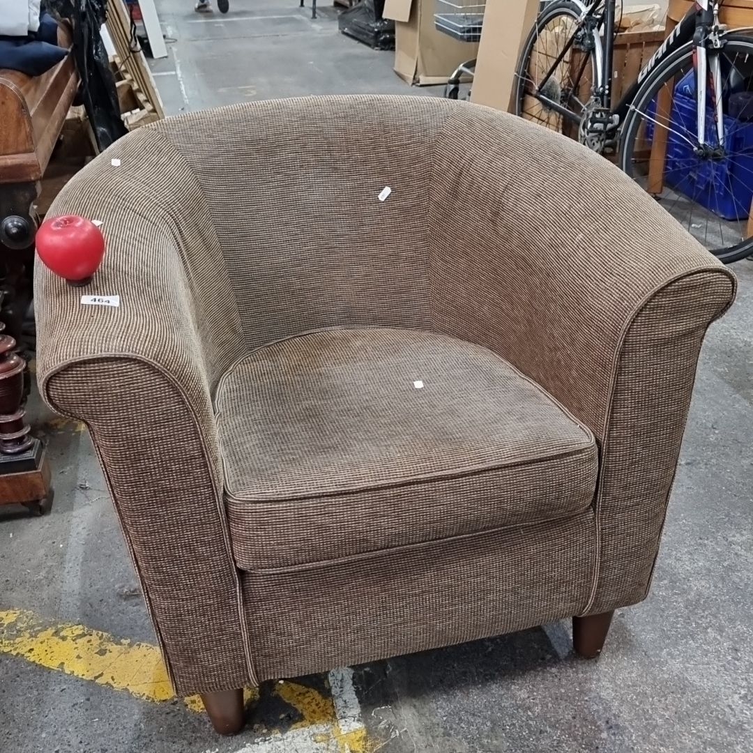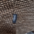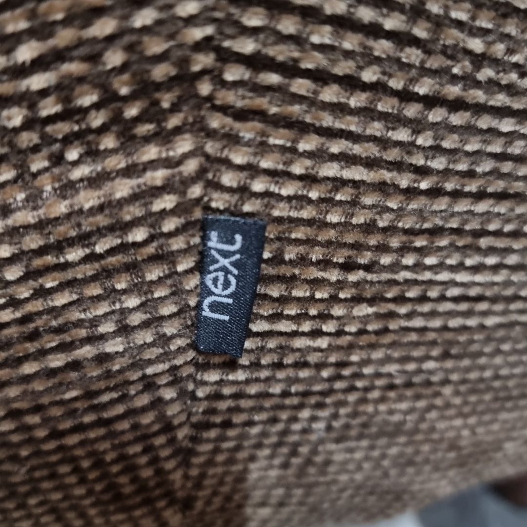 A Next Home fabric armchair with brown patterned upholstery and cushioned seating.