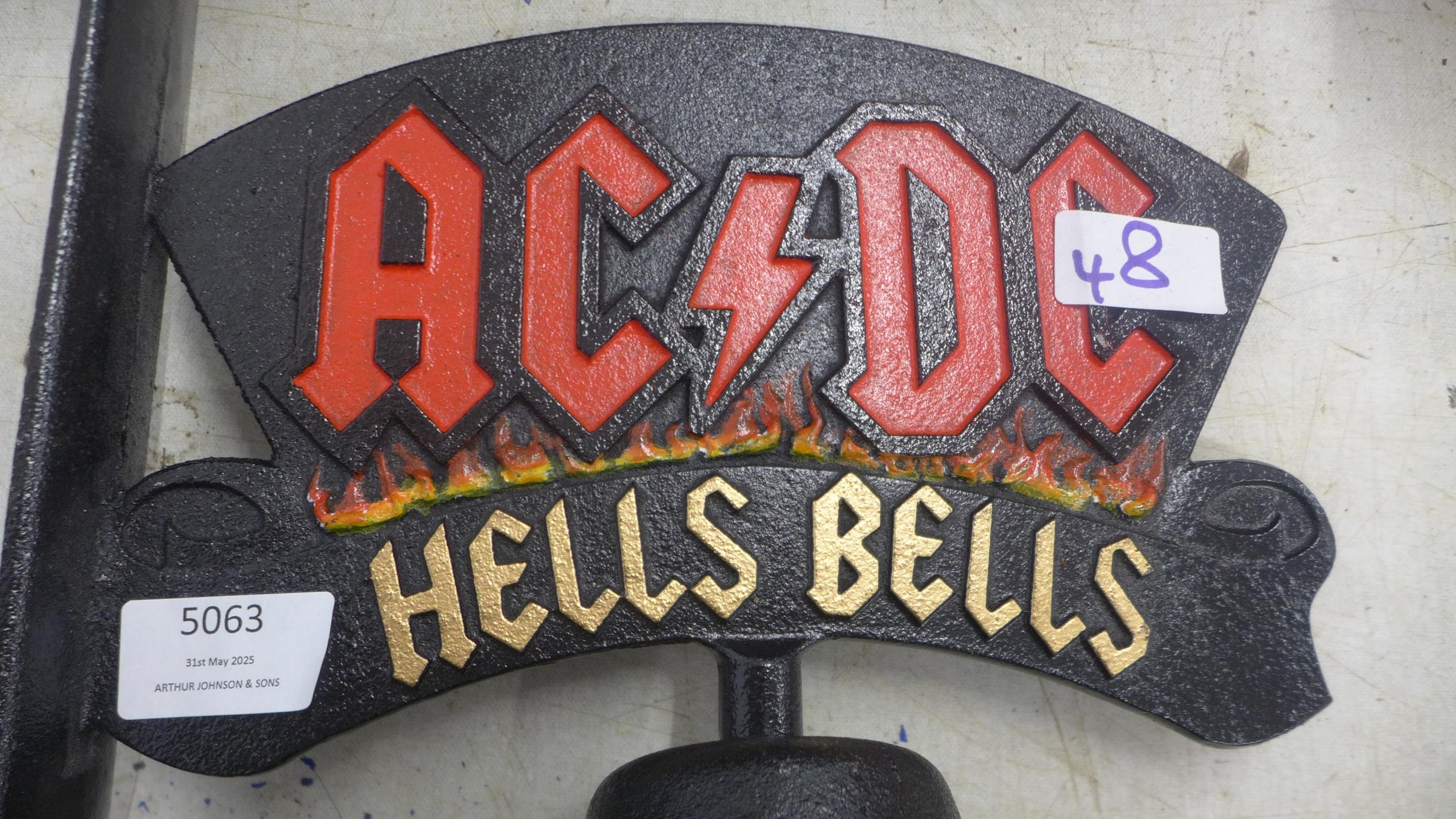 A cast metal AC/DC Hells bells wall mountable bell *This lot is subject to VAT