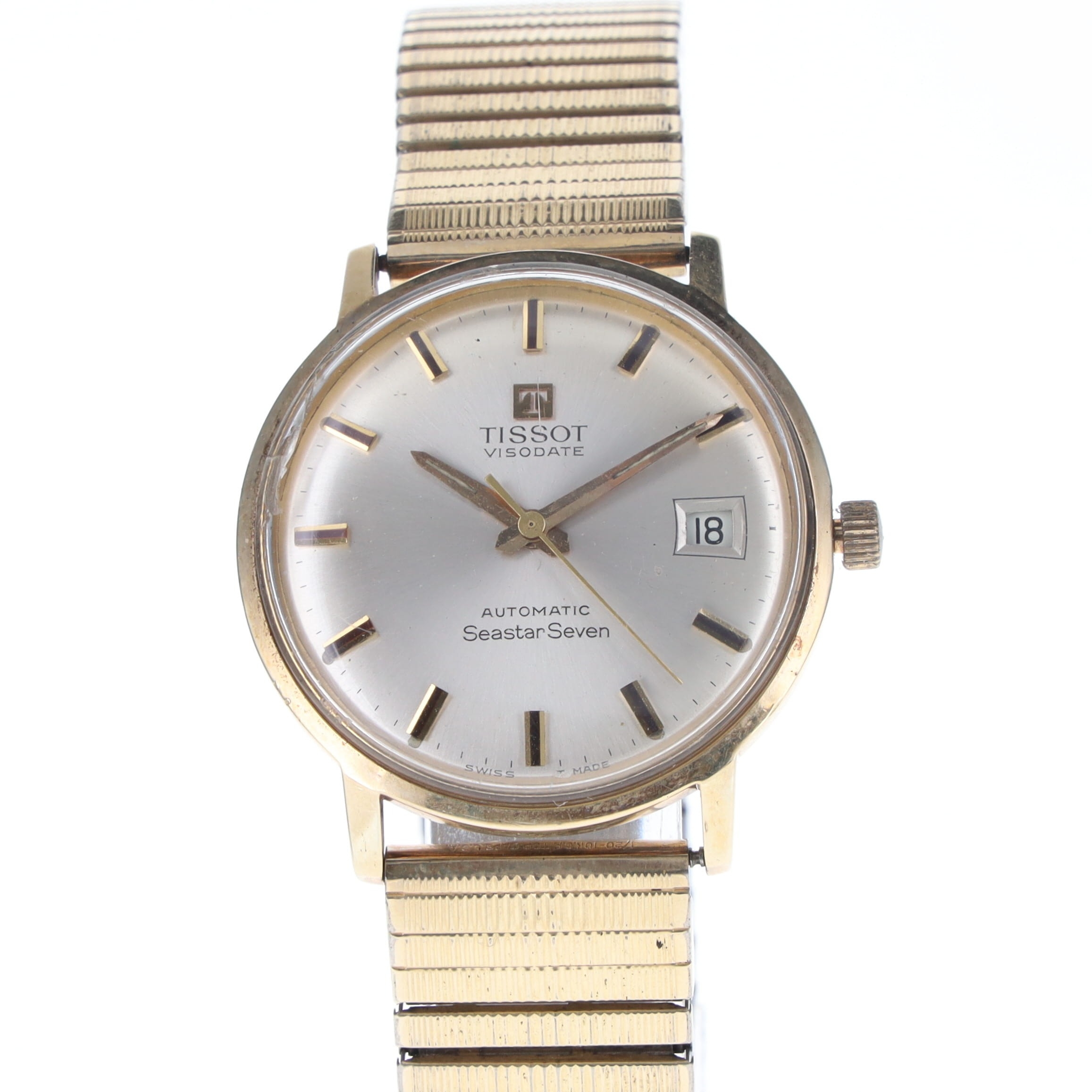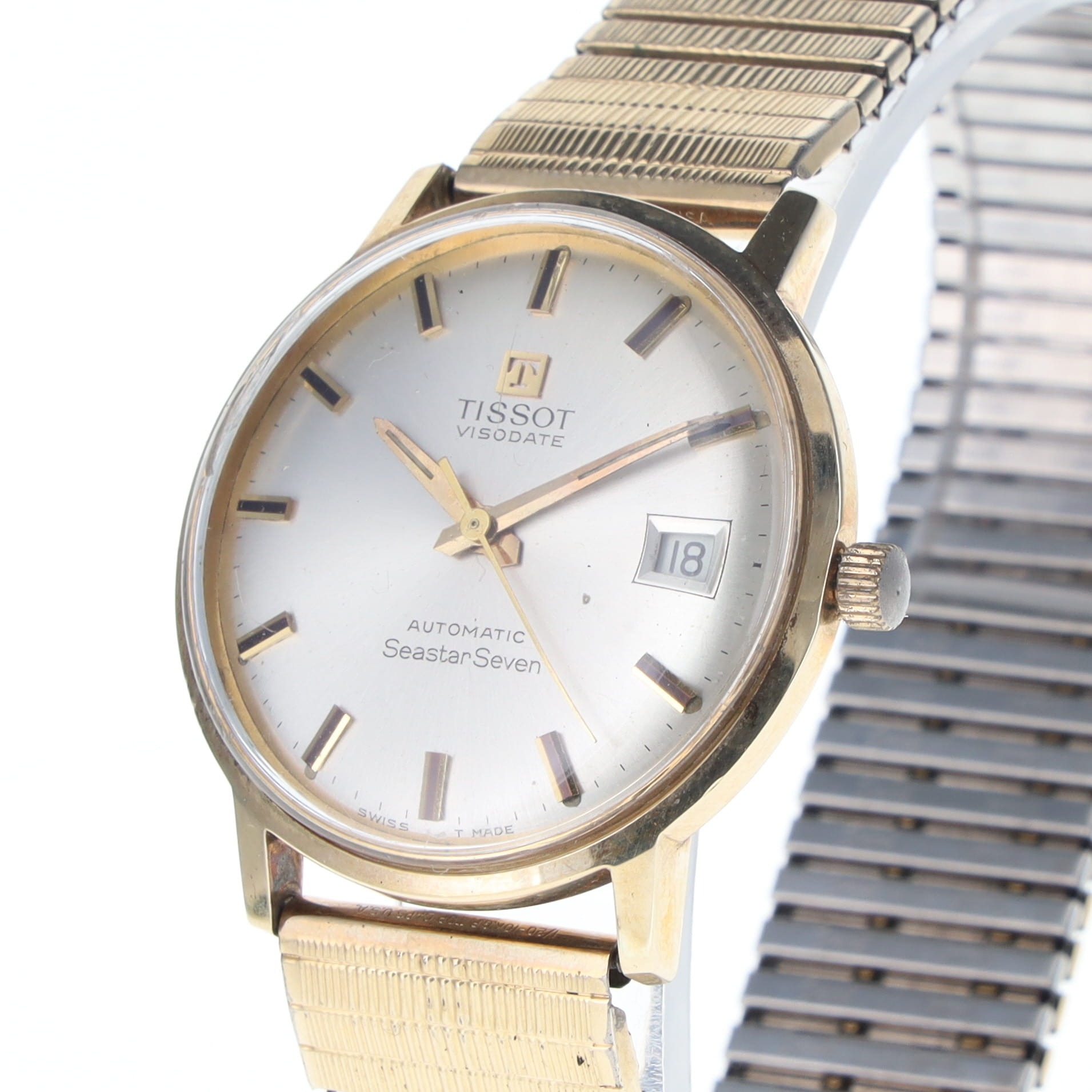 Tissot - 9ct Gold Seastar Seven Visodate Tissot calibre 2481 Automatic movement. 9ct Gold case and expandable gold tone bracelet. Acrylic crystal is considerably scratched. Watch is in full working order, offered without original box or papers.