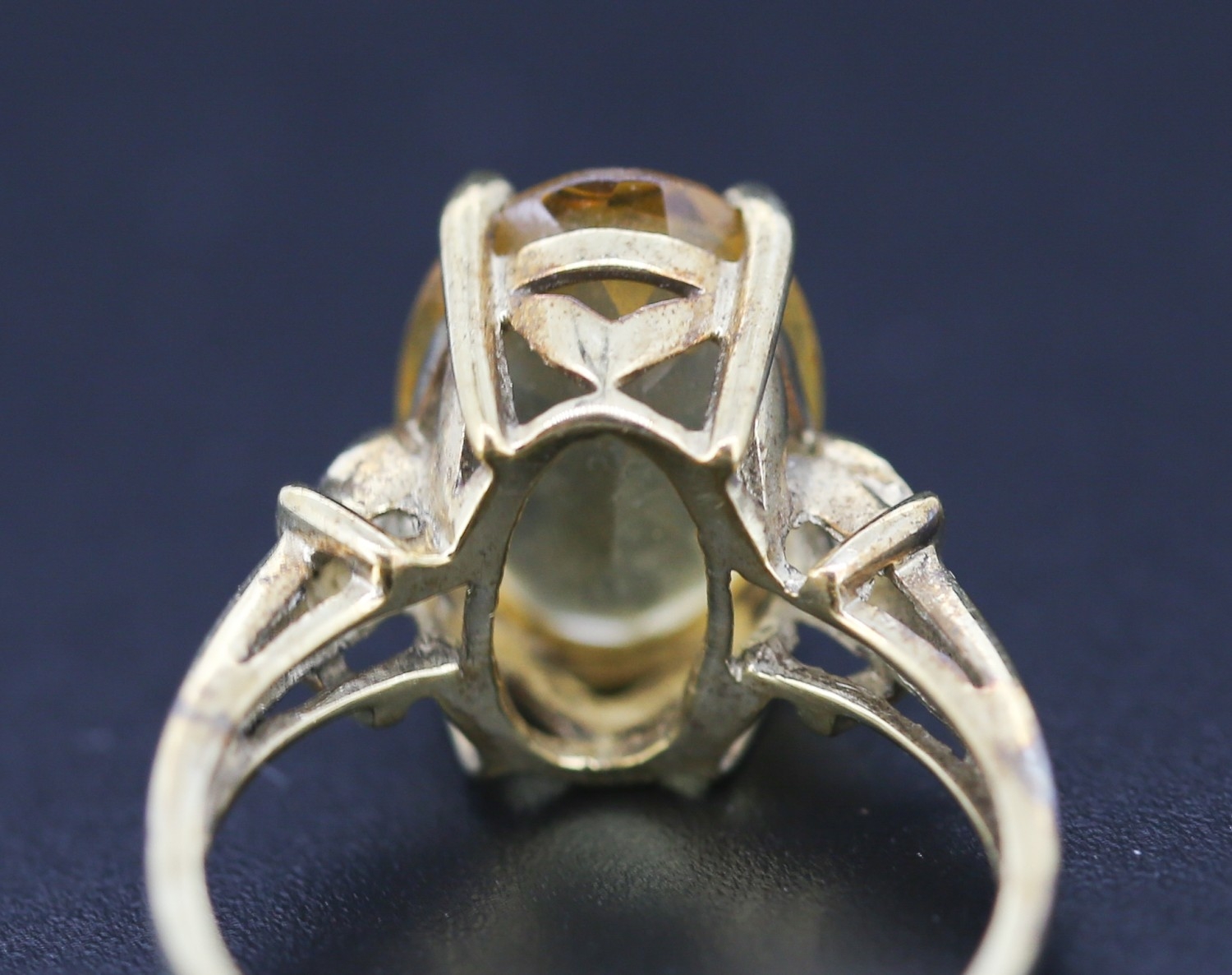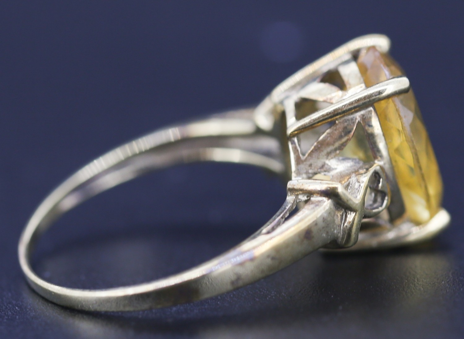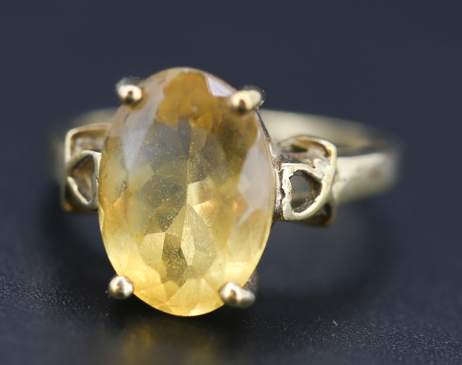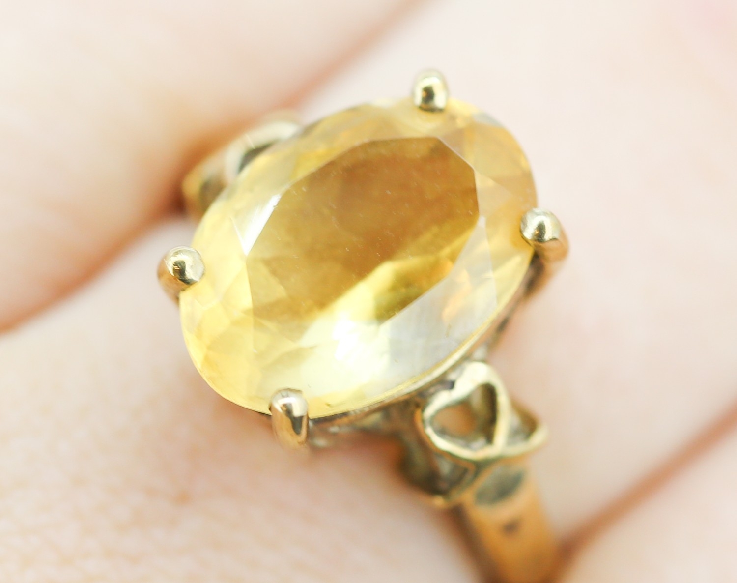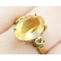 Citrine Single Stone Set Ring Mounted in 9 Carat Yellow Gold Heart Motif to Shoulders Ring Size Q and a Half