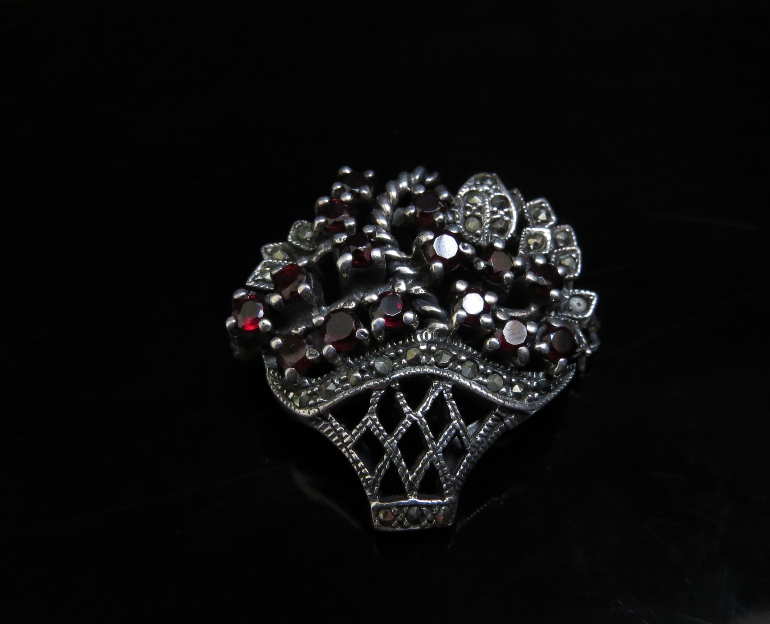A brooch as a basket of flowers stamped 925 (E) £20-30
