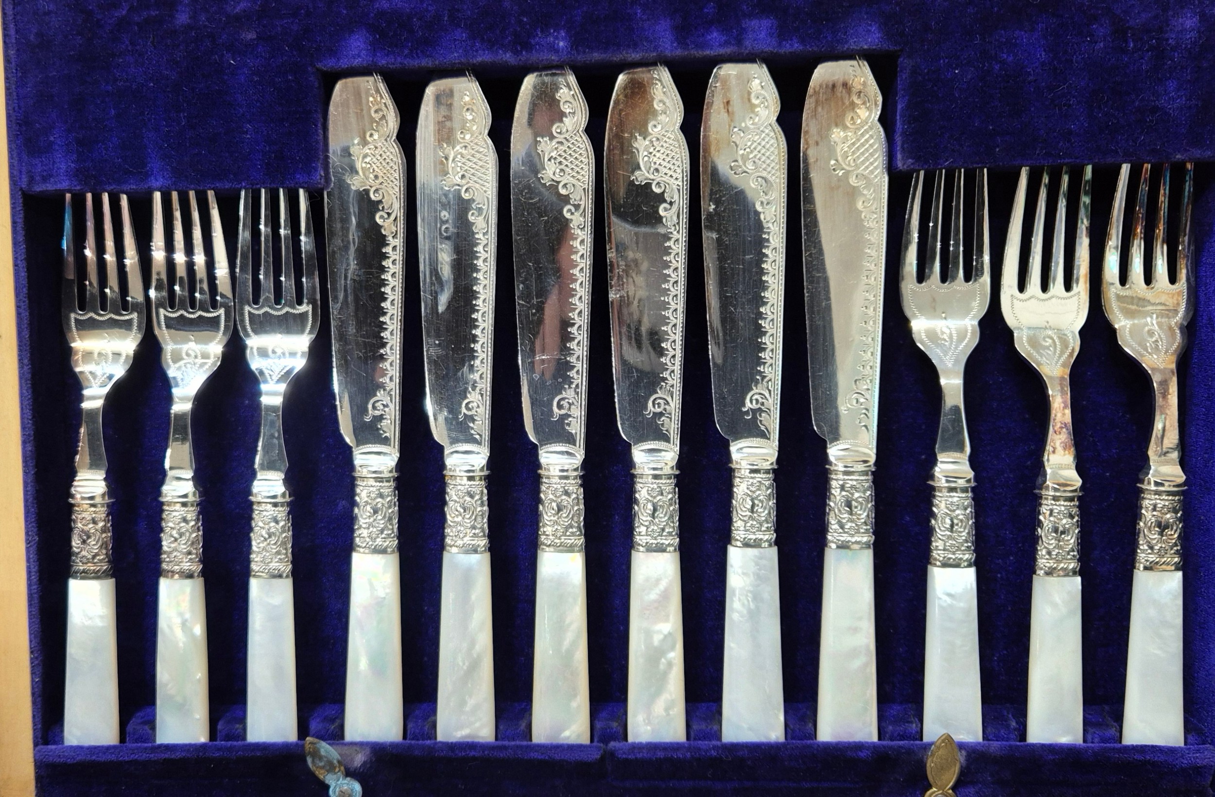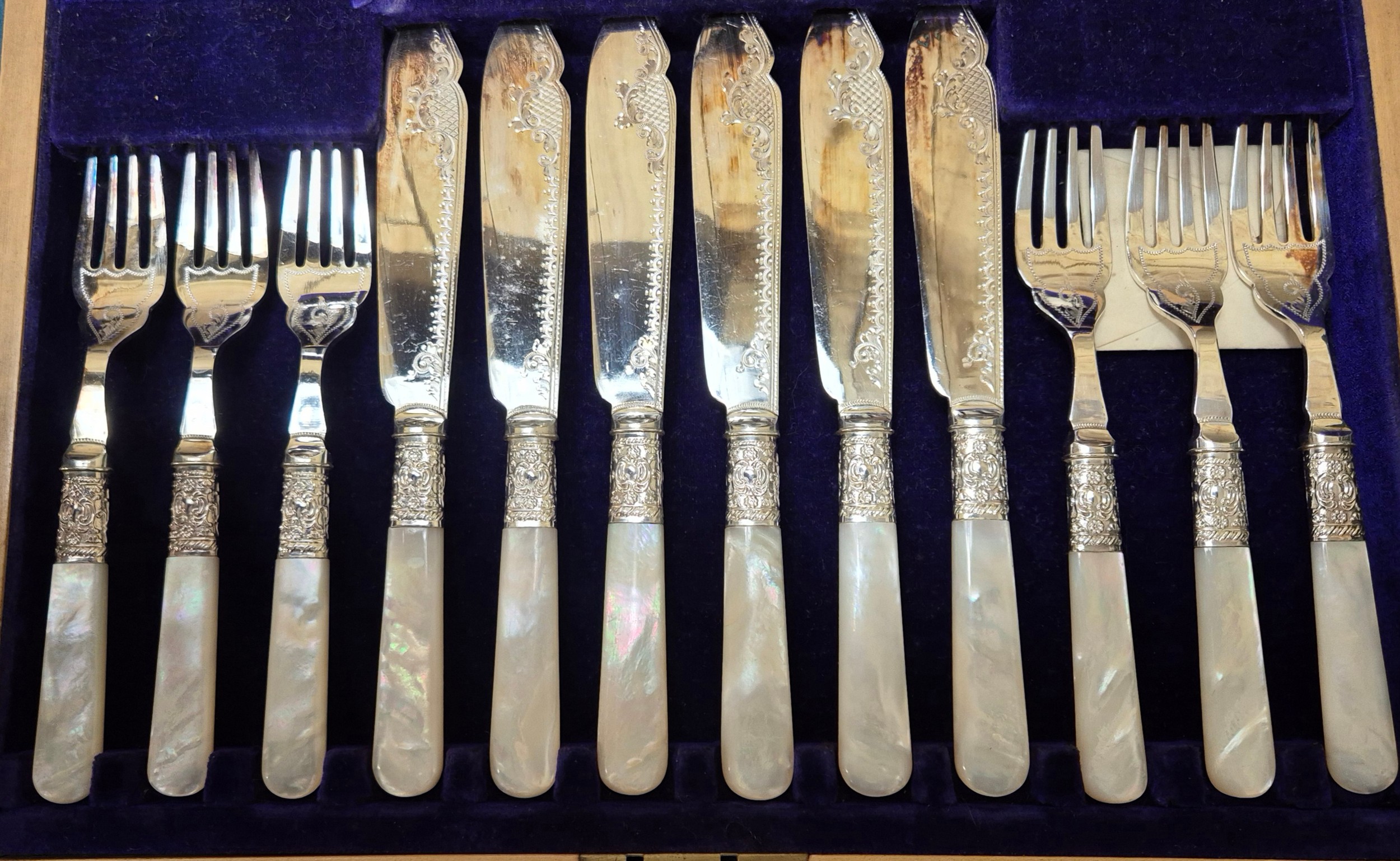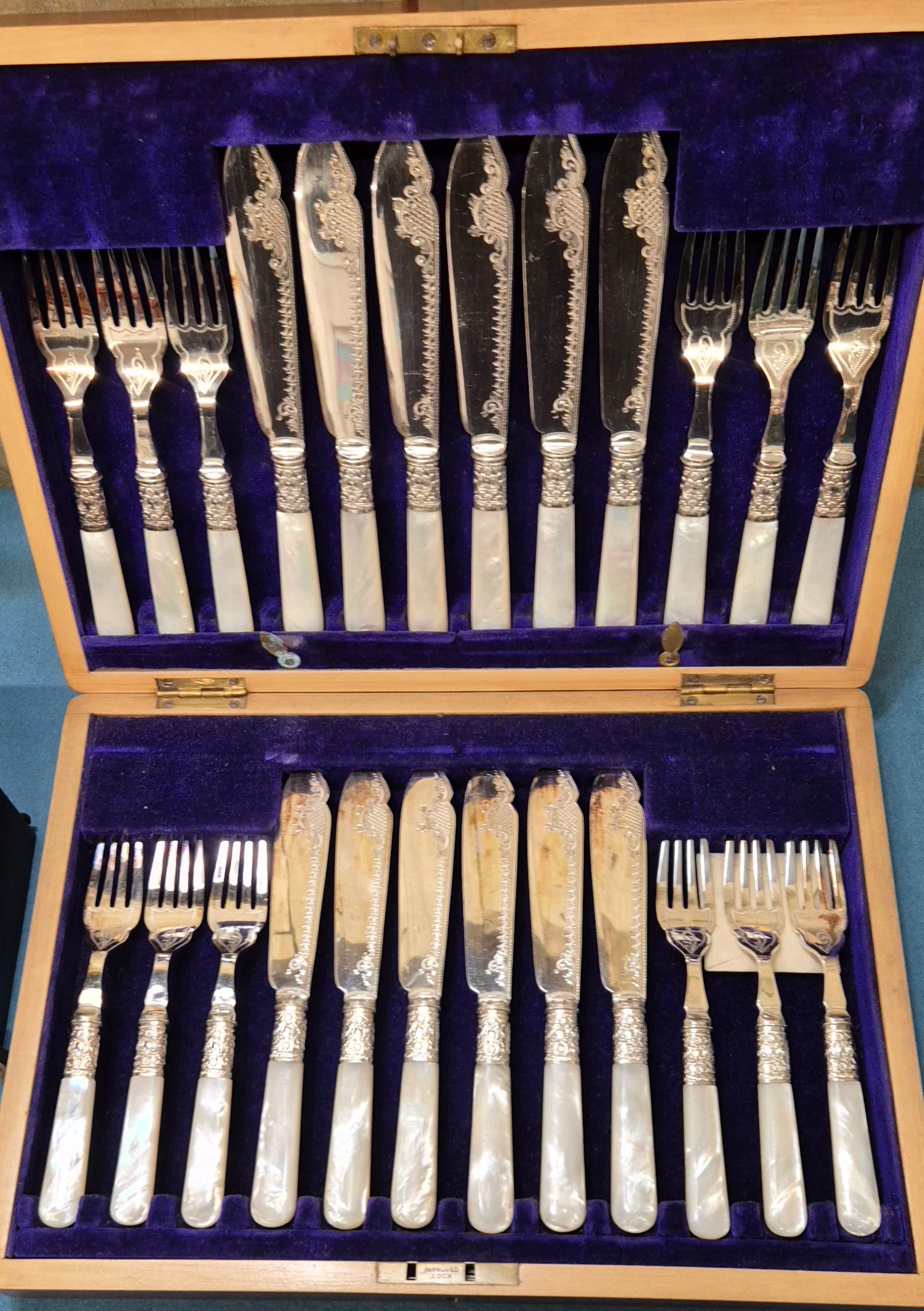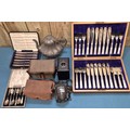 Selection of collectables; boxed silver plated cutlery, pewter tea pot, Ensign Ful-Vue camera and Coronet Rex box camera.