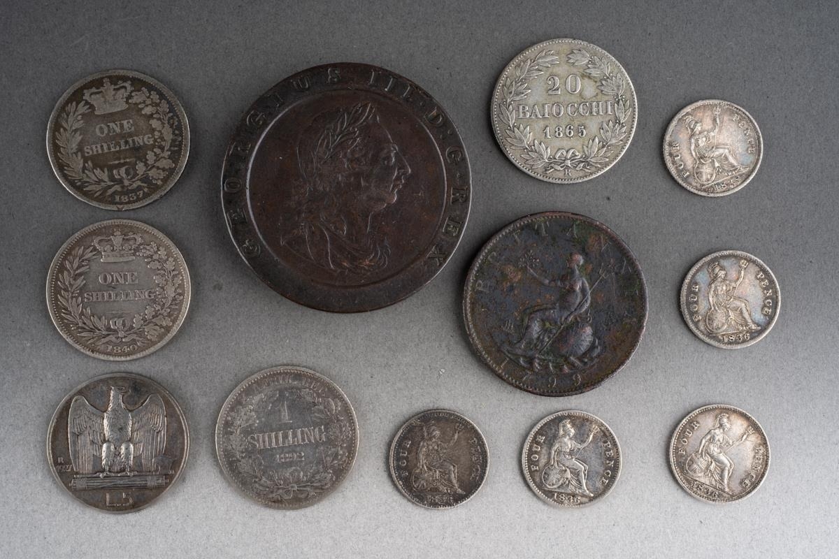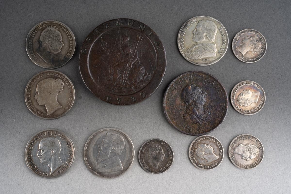 1797 2 penny cartwheel to include 1799 half penny & small collection of British & foreign silver coins (approx 35.8 grams)