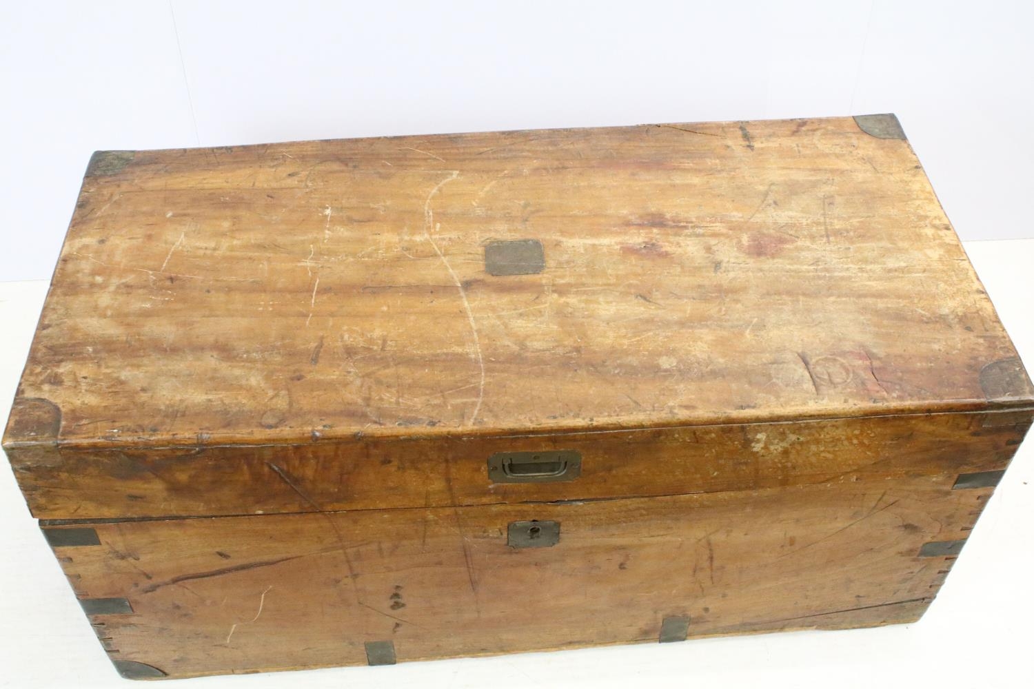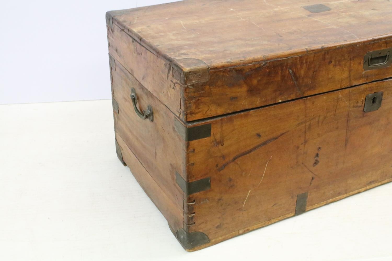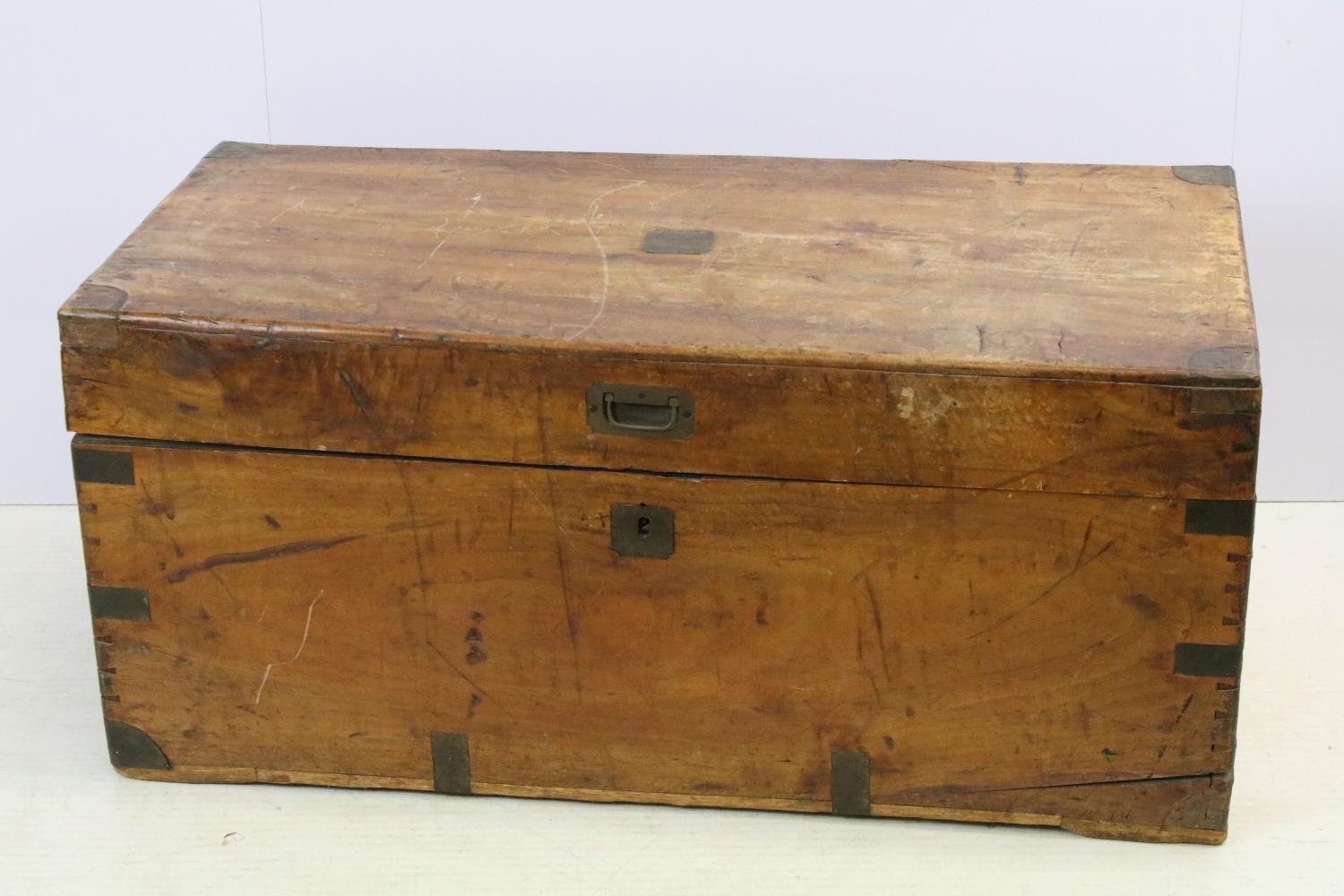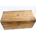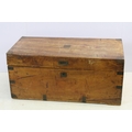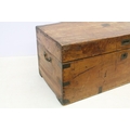 19th century teak campaign chest with brass mounts, brass recessed handle to front and two carrying handles, 101cm long x 47cm deep x 45cm high