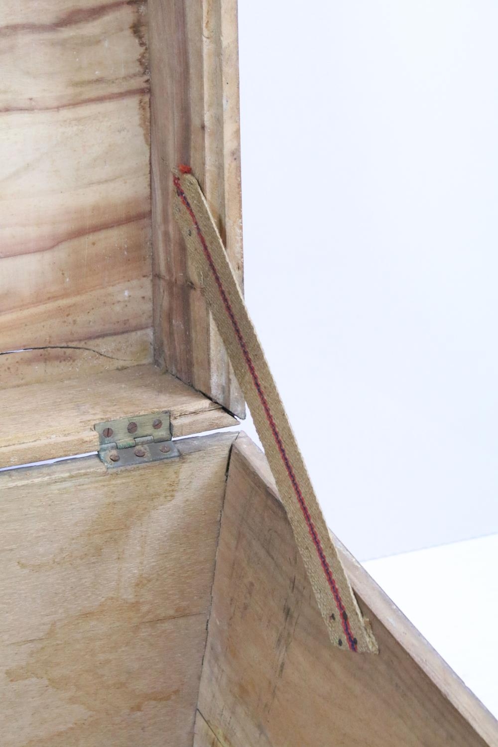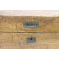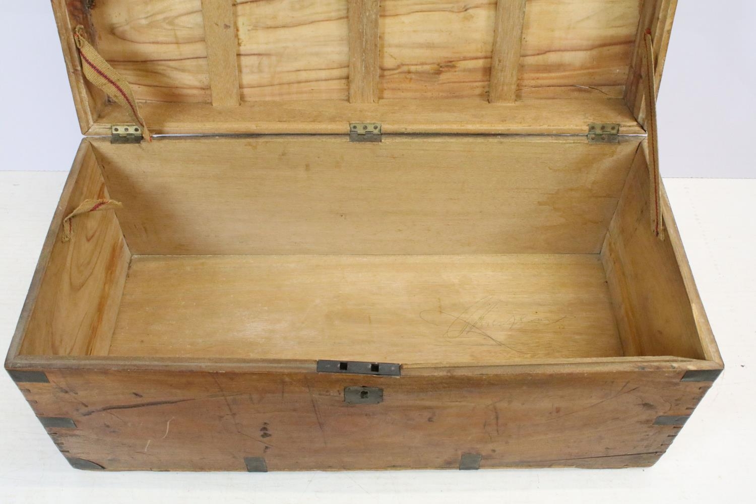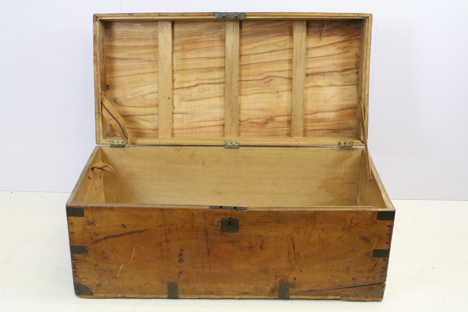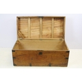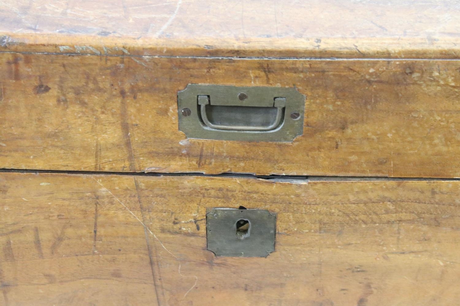 19th century teak campaign chest with brass mounts, brass recessed handle to front and two carrying handles, 101cm long x 47cm deep x 45cm high