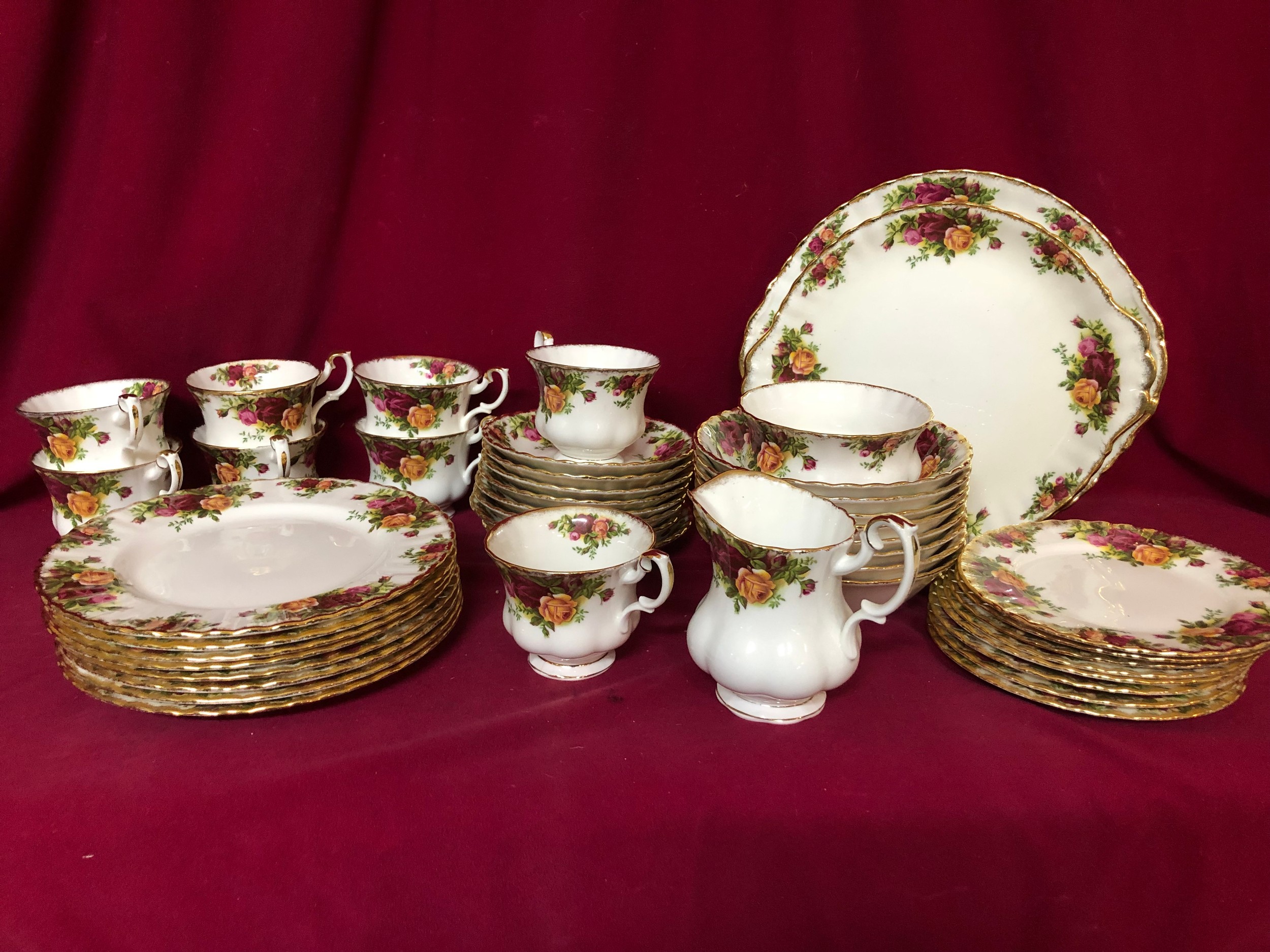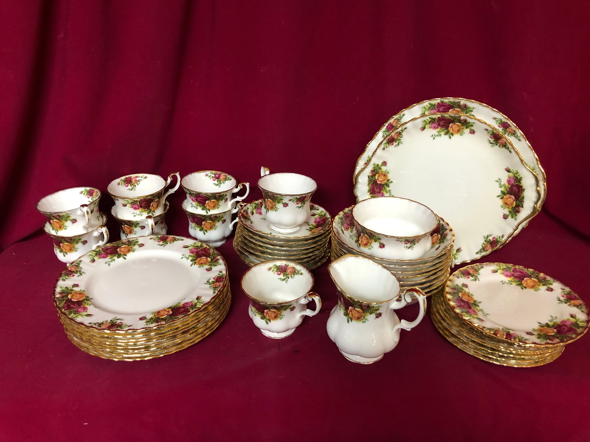 Selection of Royal Albert Country Roses comprising 8 cups and saucers, 8 dishes, 8 salad plates, 8 side plates, milk and sugar and 2 sandwich plates