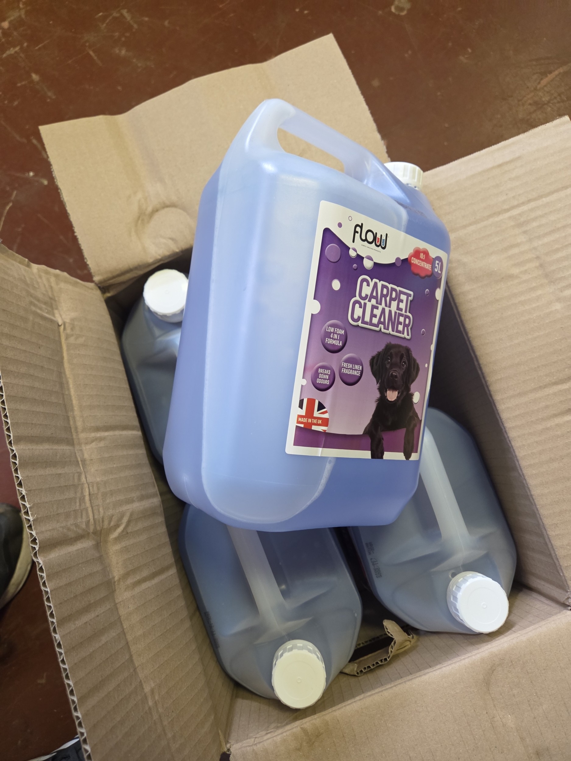 4 Bottles of 5L Flow Pet Magic Carpet Cleaner 5L Concentrate