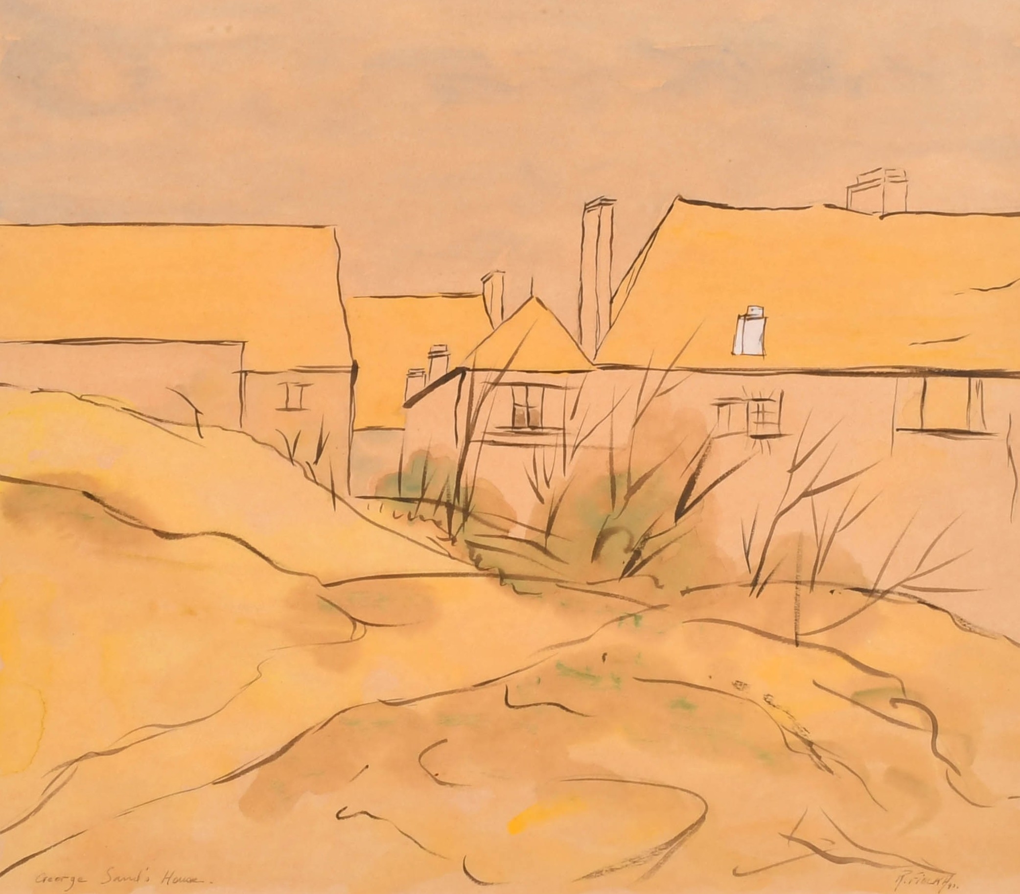 R Fiolka (20th-21st Century) European. "George Sand's House", Watercolour and ink, Signed, inscribed and dated '90, 13.5" x 15.75" (34.3 x 40cm)