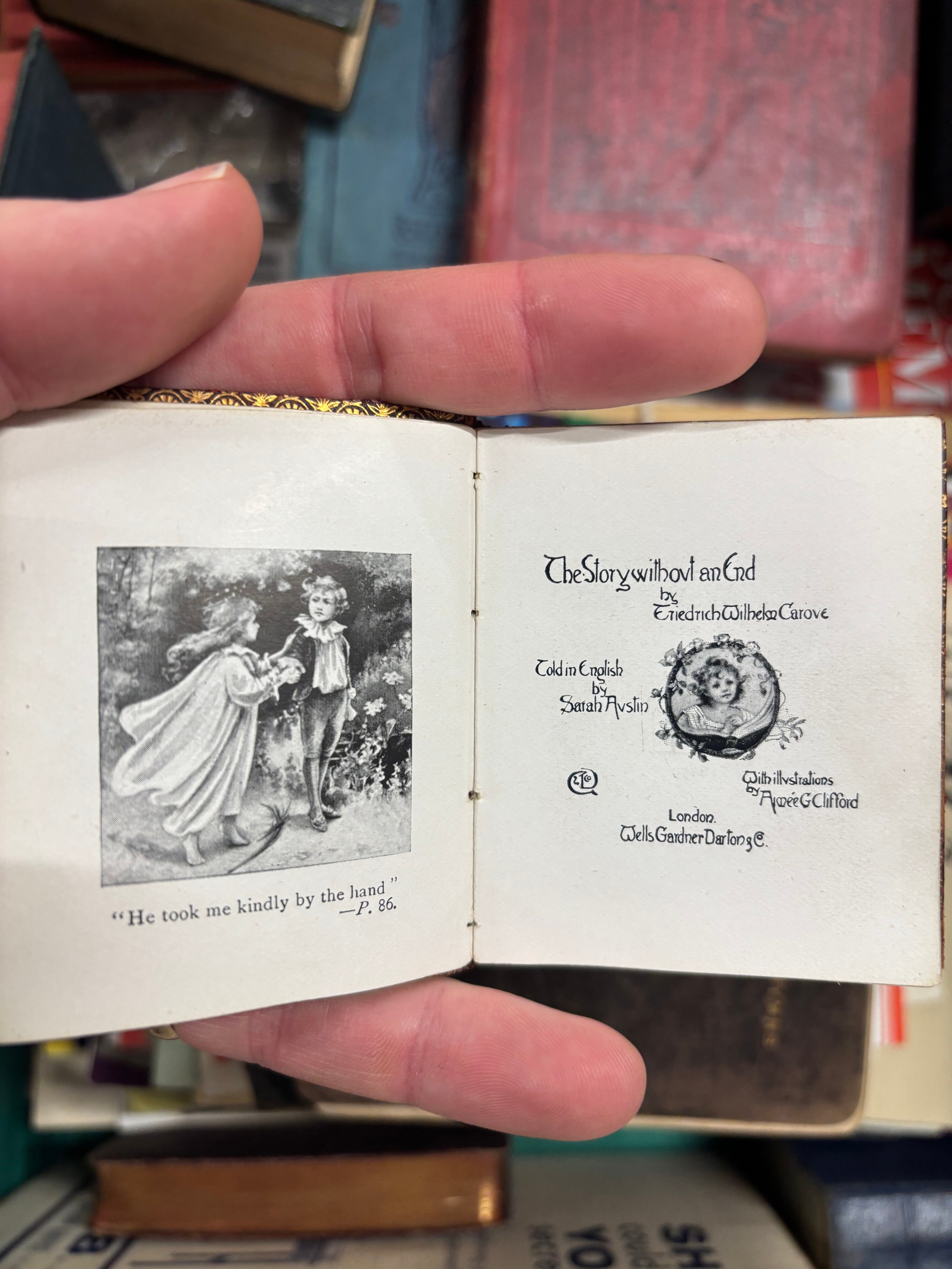 Miniature Book. Carove, Wilhelm Friedrich. The Story Without an End. London, 1899. A good, clean copy, 7 x 6.5 cm., with miscellaneous other works, a crate.