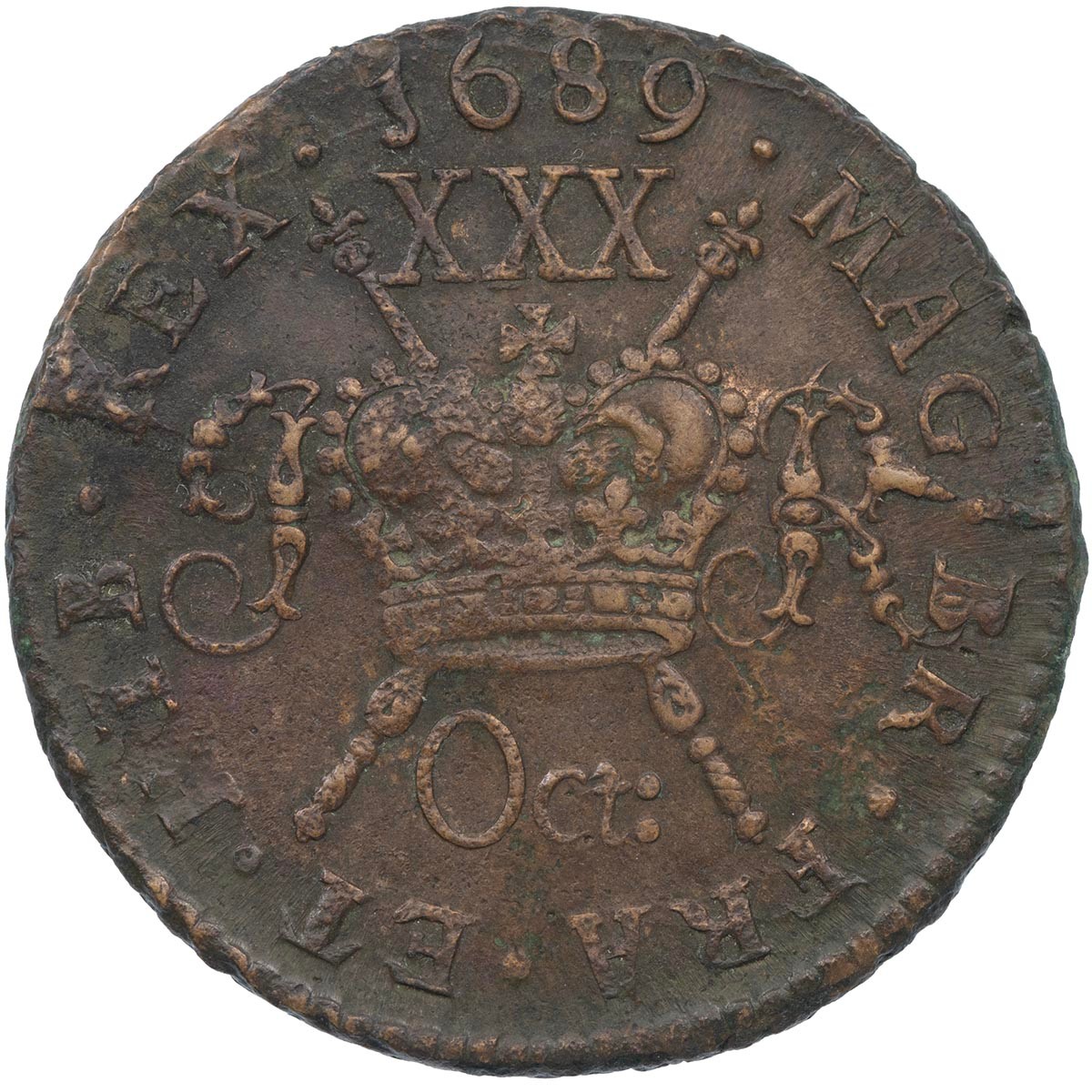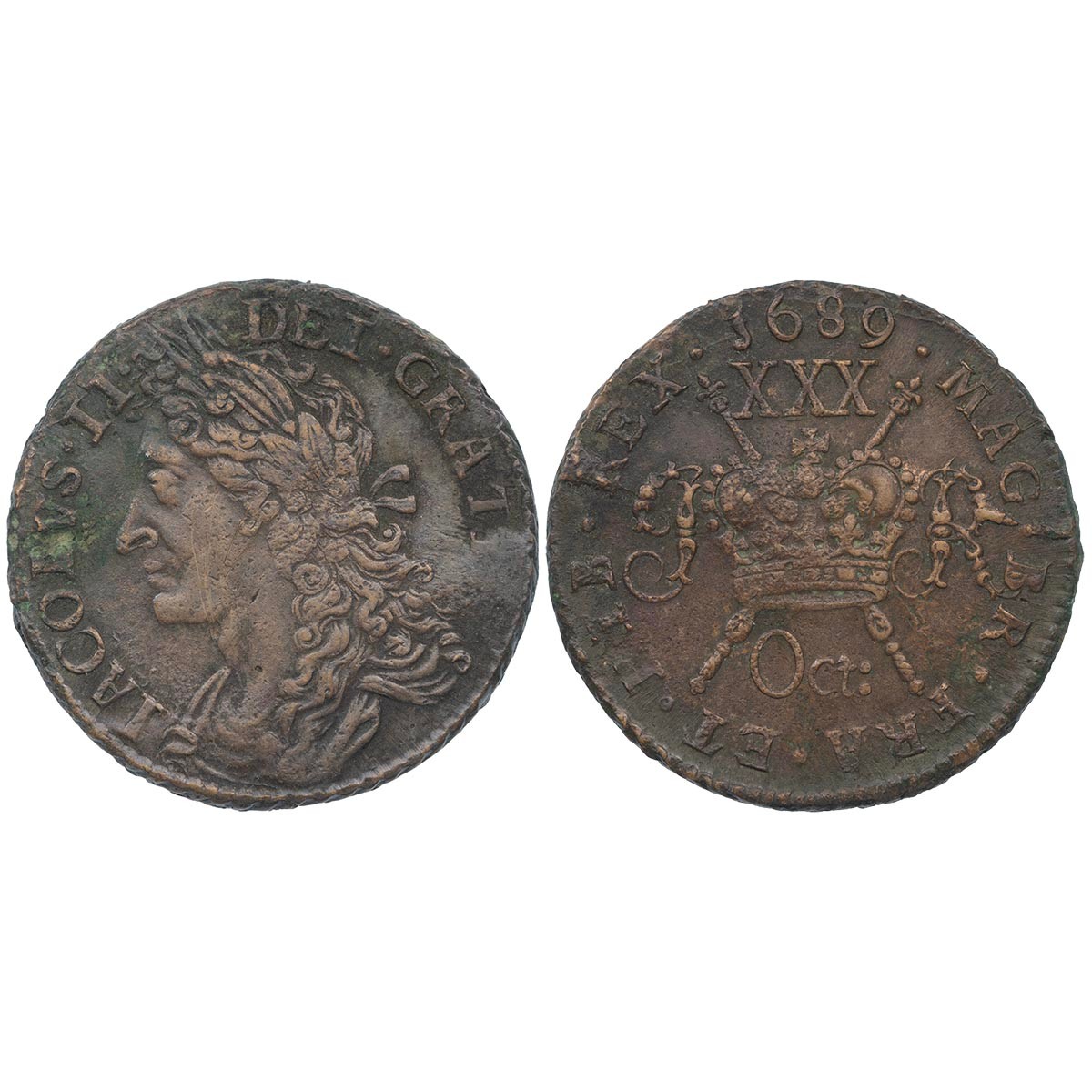 Ireland, James II Gunmoney Halfcrown, large size, October 1689 (S 6579D), 'Oct:', 14.28g, Very Fine.