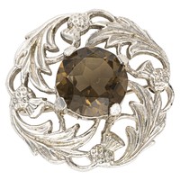 Circular, bezel set round brilliant cut diamond to the centre weighing 0.10 carats, colour G, clarity VS, the panels with daisy accents, in 9ct gold, diameter 35mm with transparent case back, 8g all in