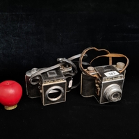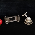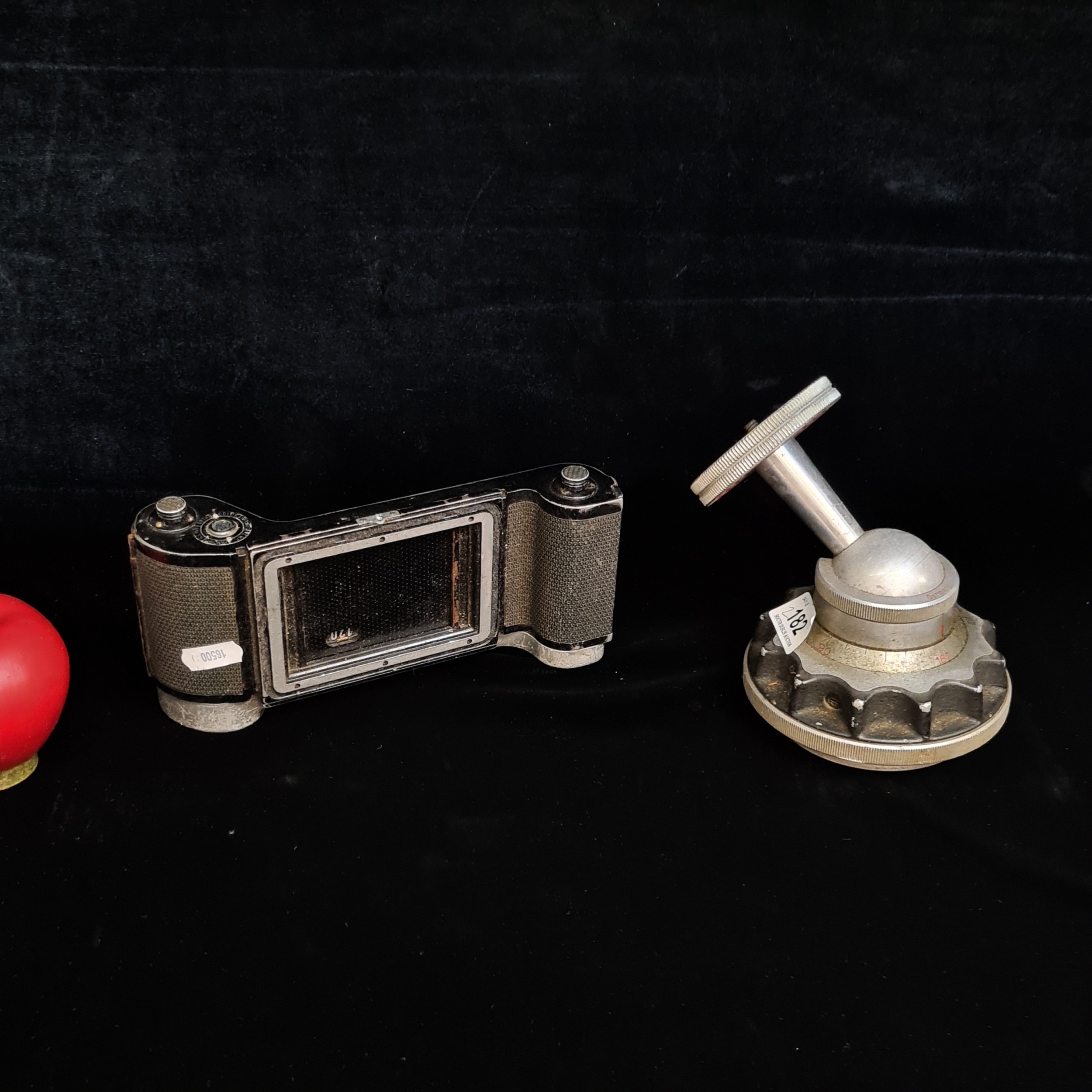 Two vintage camera accessories including a Linhof Muchen camera tripod ball joint head and a 6x9 roll film holder.