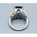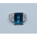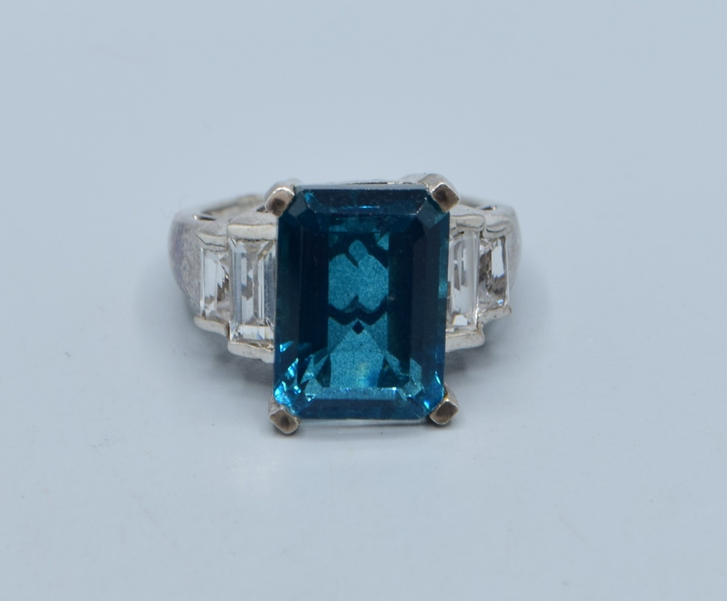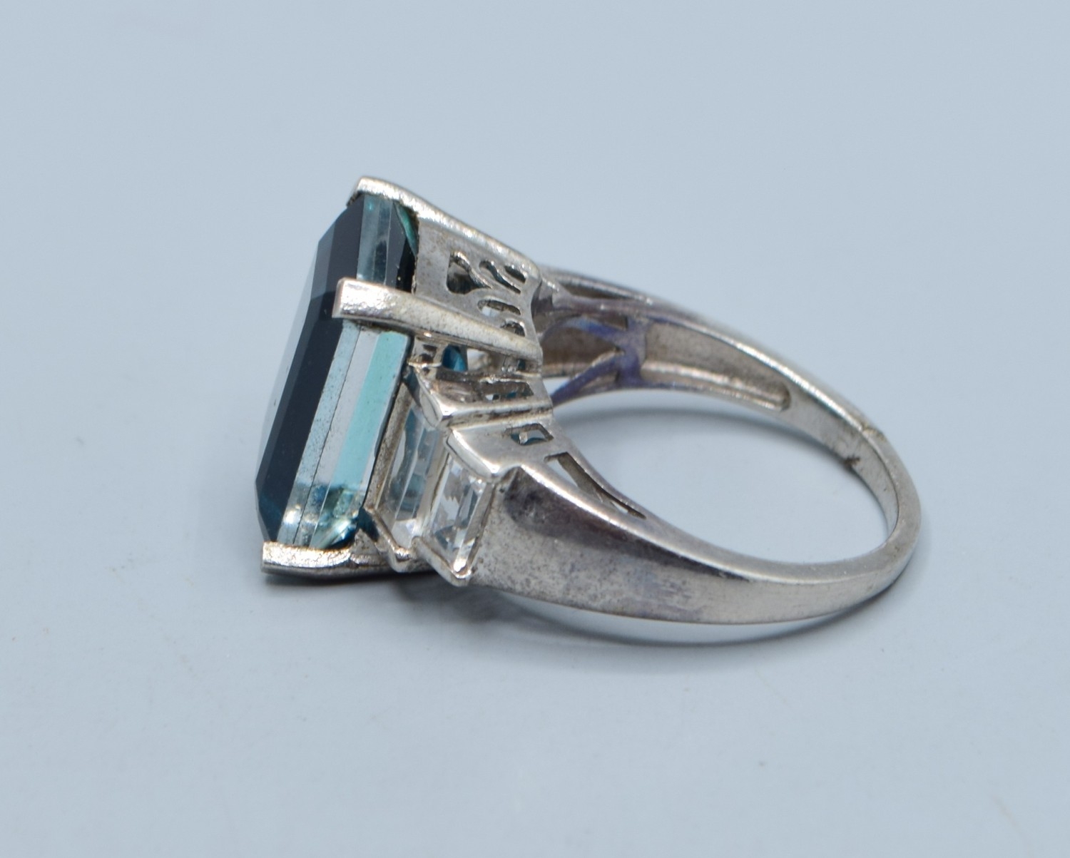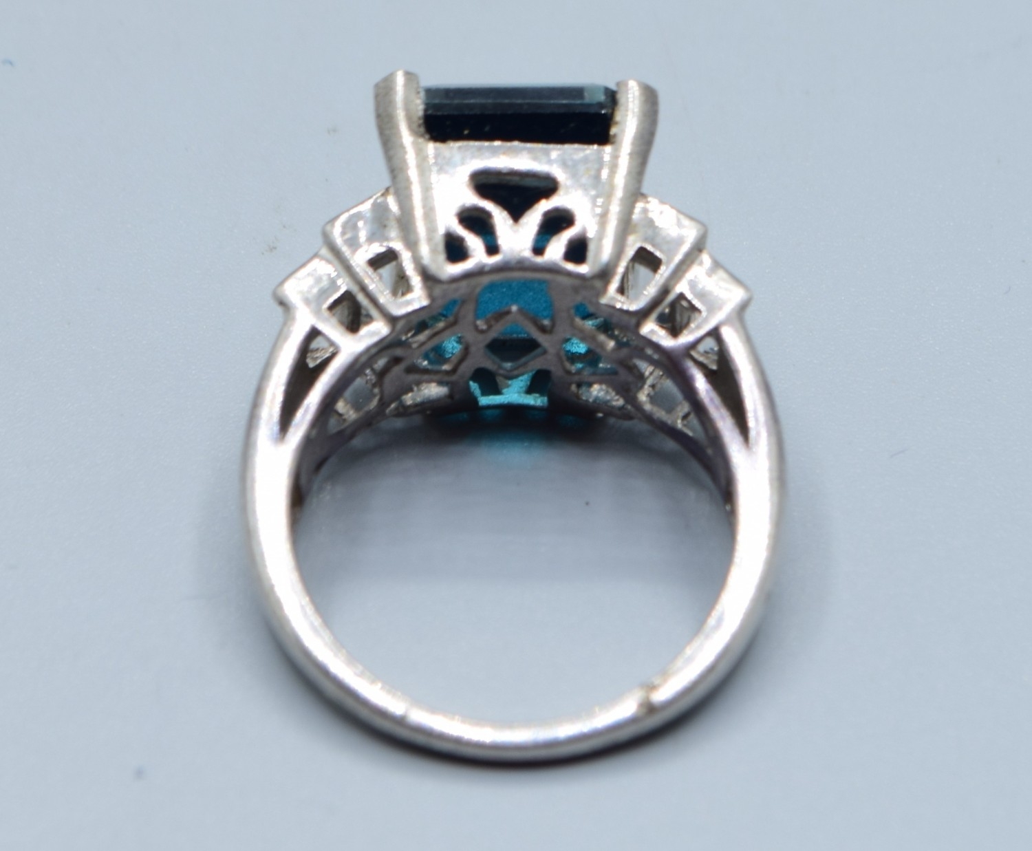 925 silver ladies rectangular Elbaite Tourmaline statement ring with clear gem stone decoration to each side size O