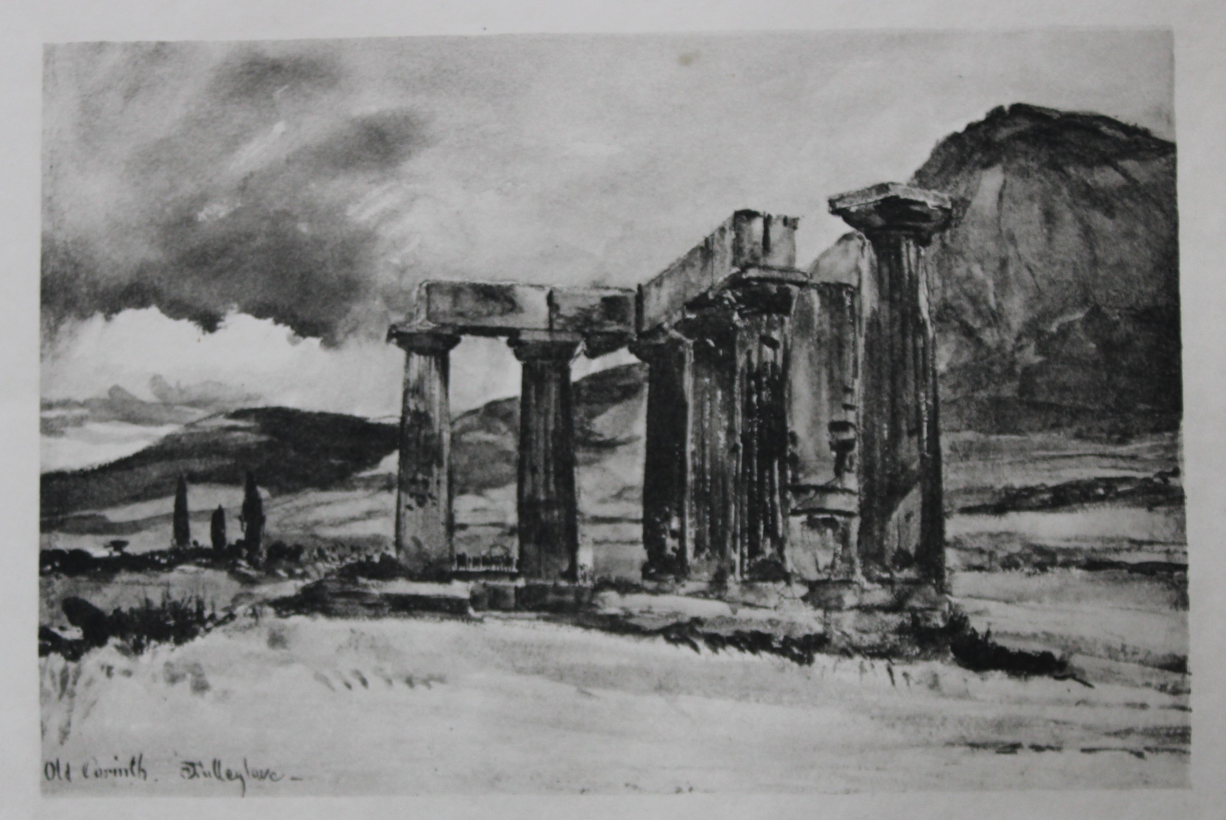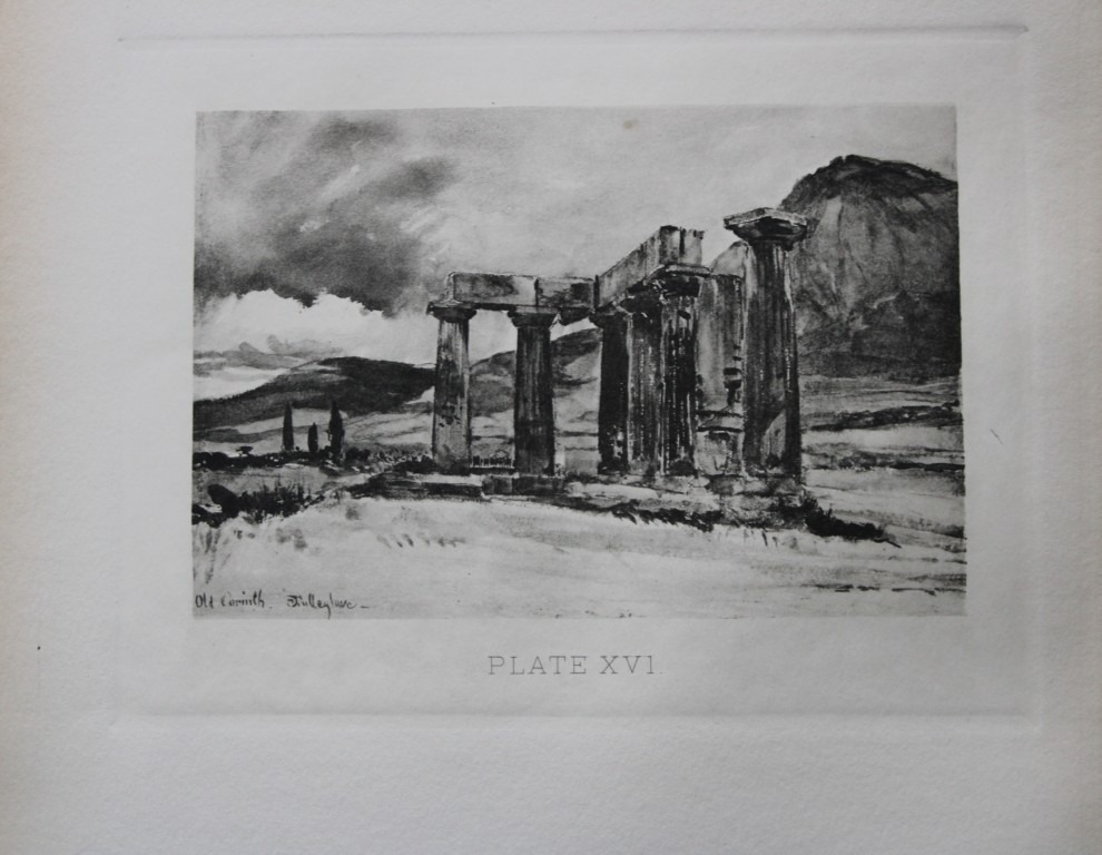 John Fulleylove 1897 - Etching of Temple at Corinth. This superb etching is from Pictures of Classic Greek Landscapes and Architecture by John Fulleylove RI. Published by JM Dent & Co, London 1897.
