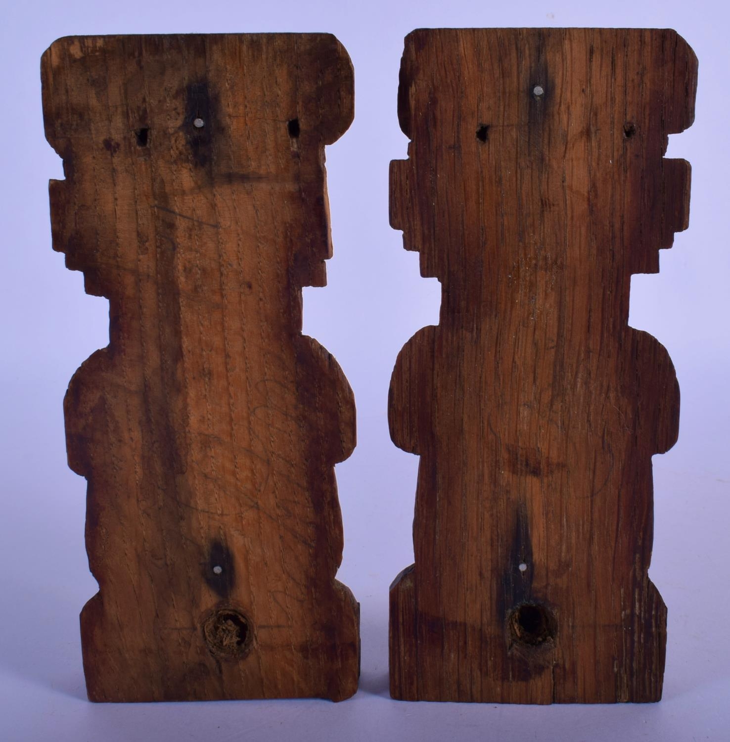 A PAIR OF 18TH CENTURY NORTHERN EUROPEAN CARVED TREEN WOOD PLAQUES depicting bearded males. 16 cm x 6 cm.