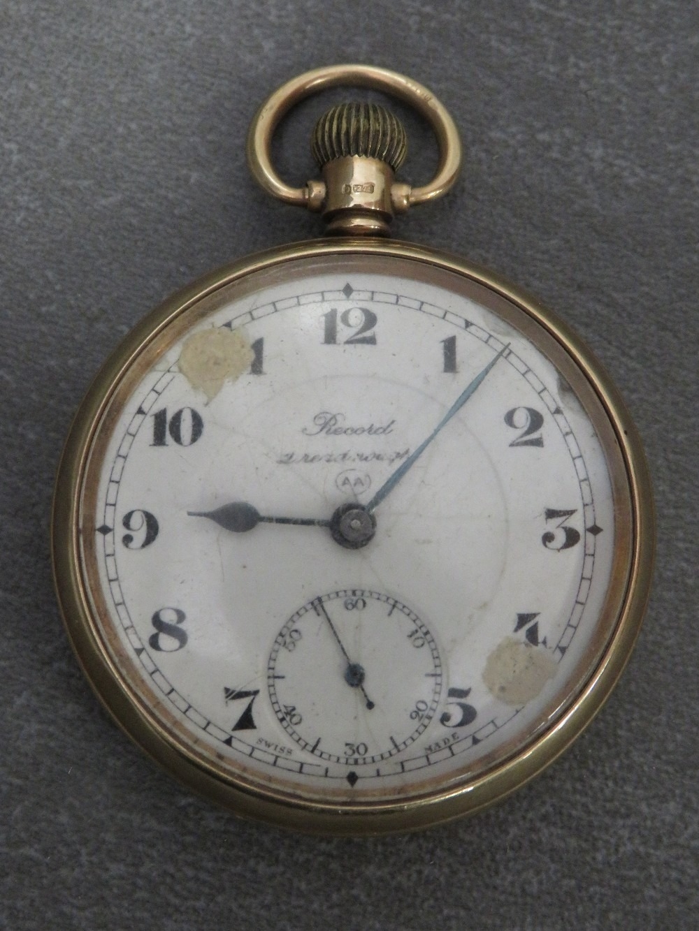A hallmarked 9 carat gold cased Record pocket watch A/F