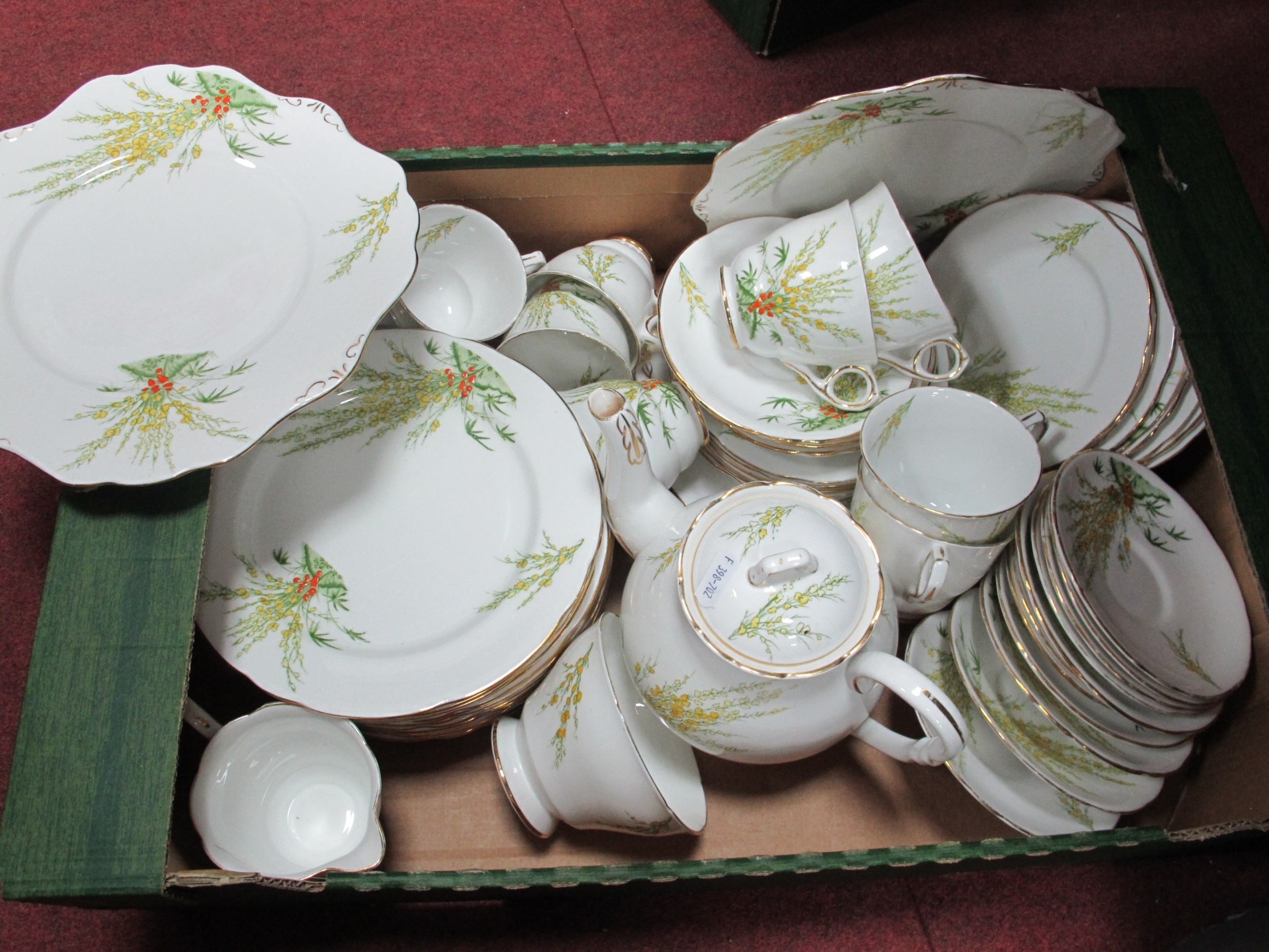 Royal Stafford 'Broom' Teaware of approximately 60 pieces, including a teapot.