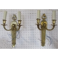 A pair of cast and gilded brass two branch wall lights in a Regency style, 35cm high