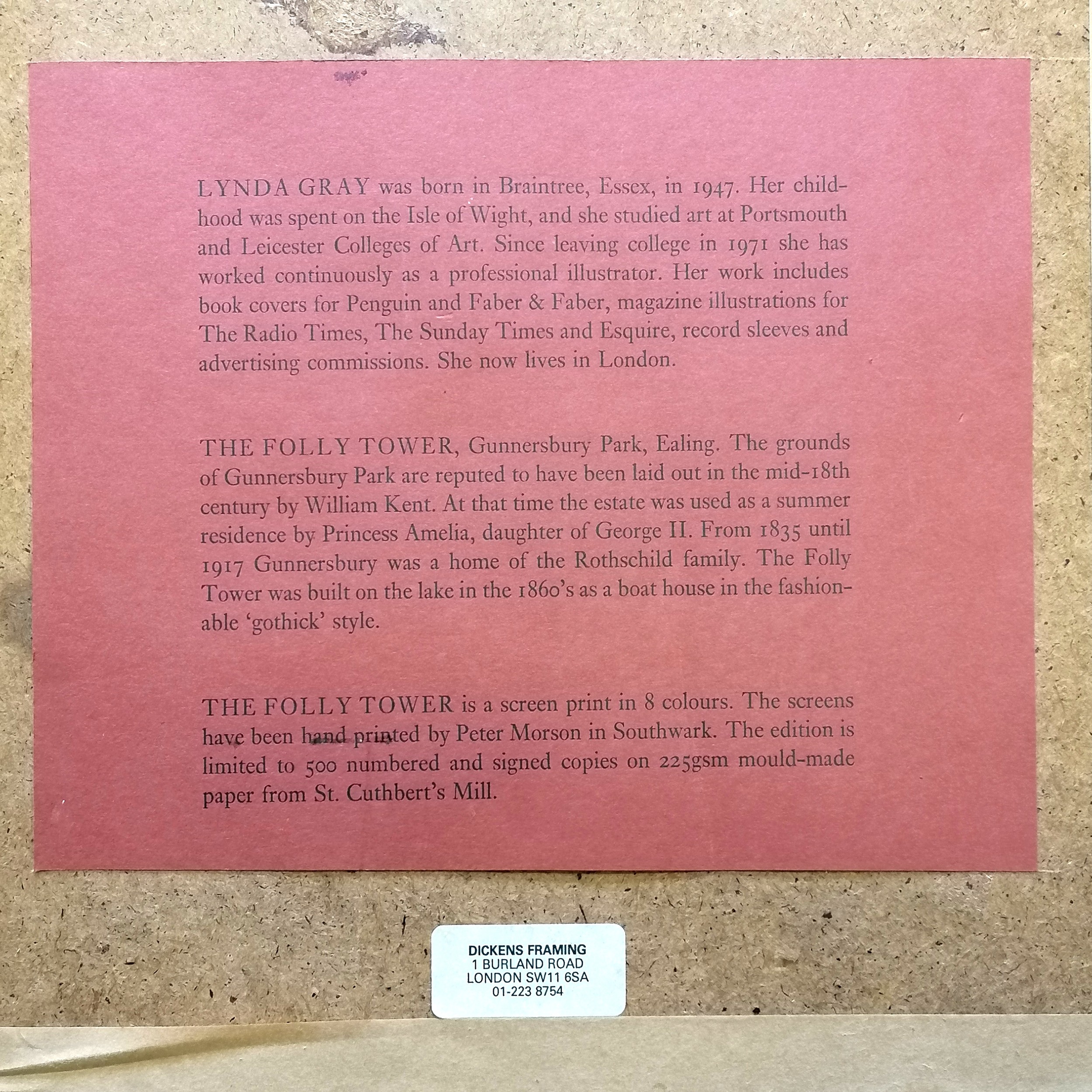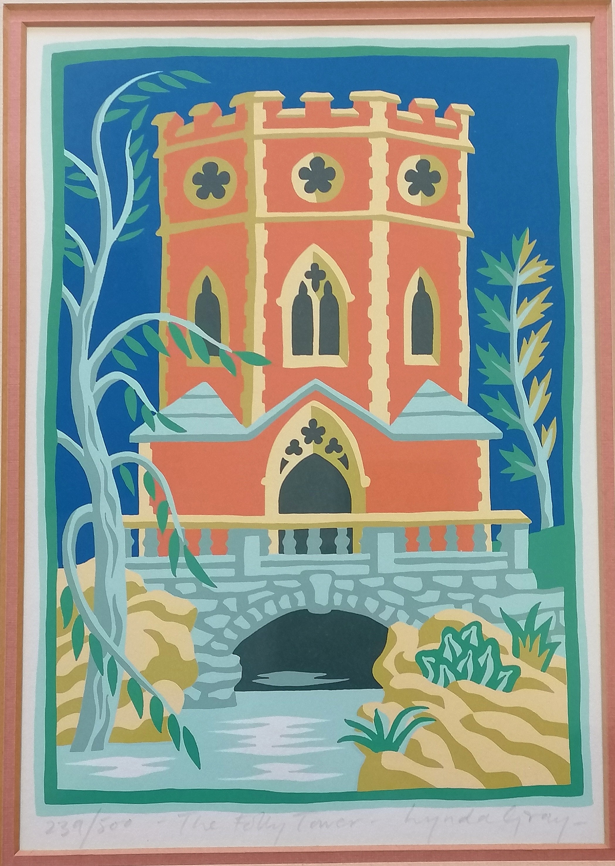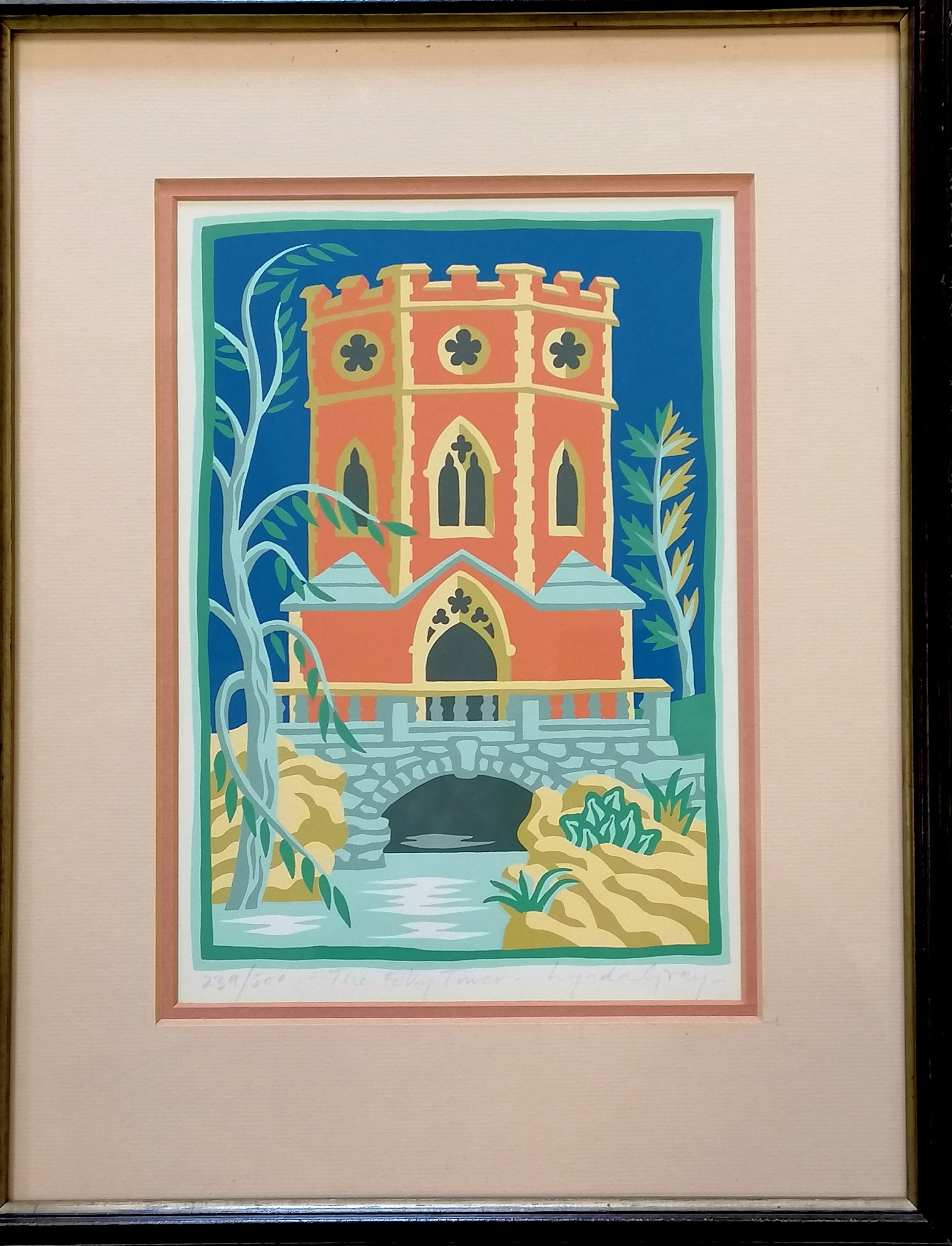 Lynda Gray (b.1947) 8 colour screenprint 'The folly tower' from a ltd ed of 500 - frame 40cm x 31cm