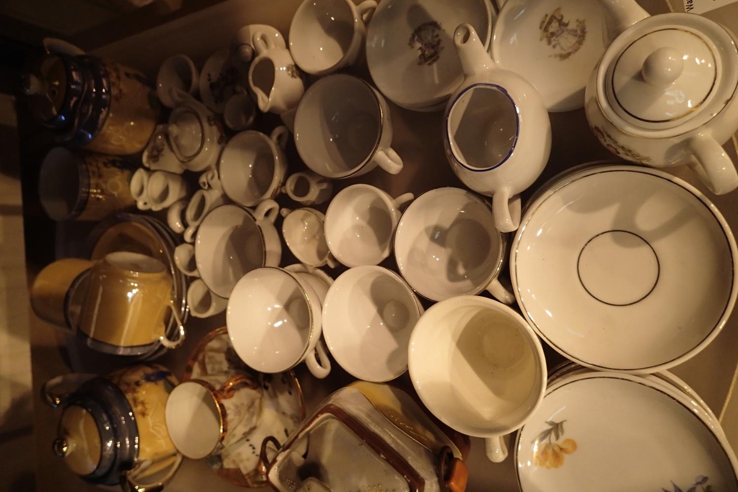 Tray of part dolls tea sets and further tea and dinnerware. Not available for in-house P&P, contact Paul O'Hea at Mailboxes on 01925 659133