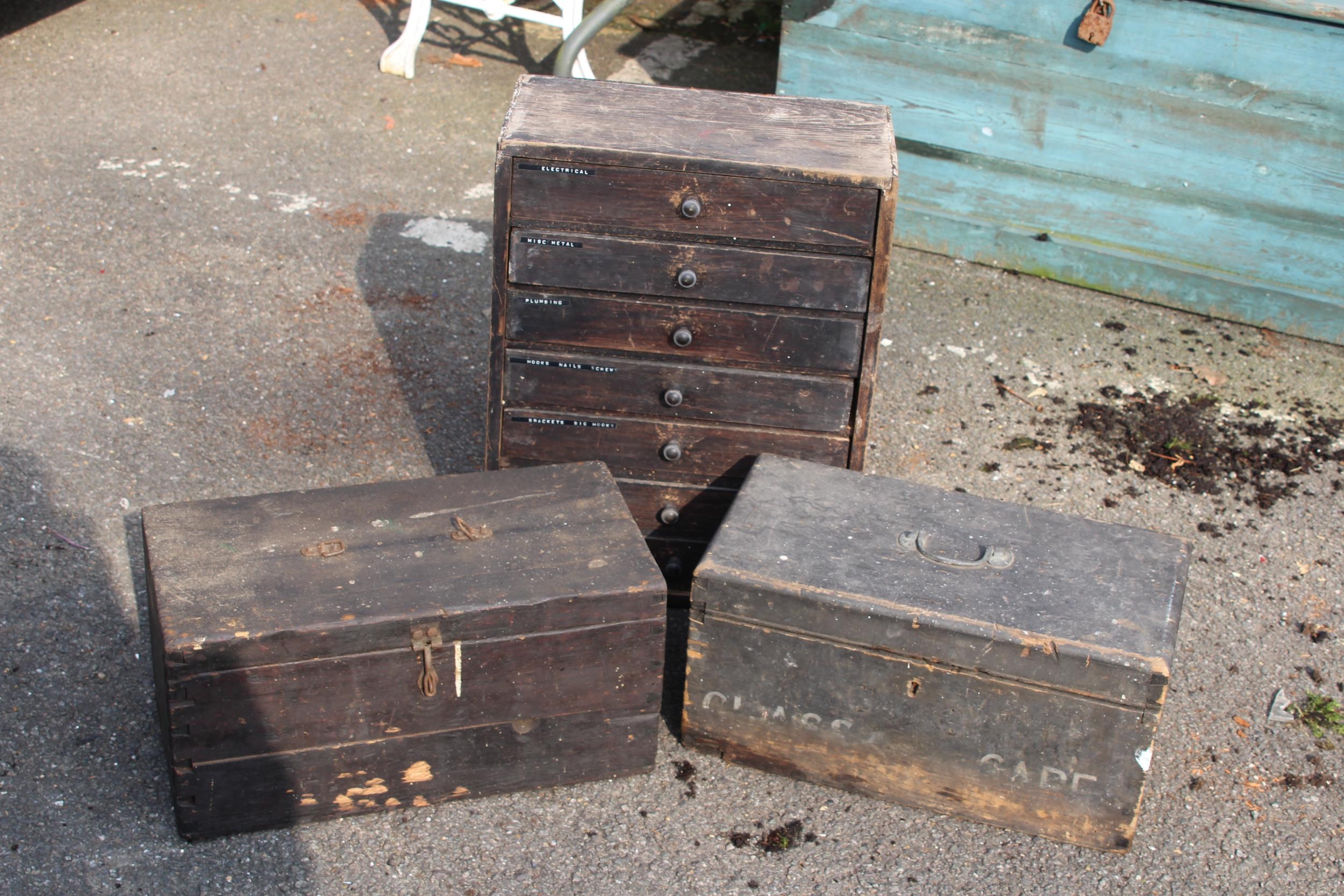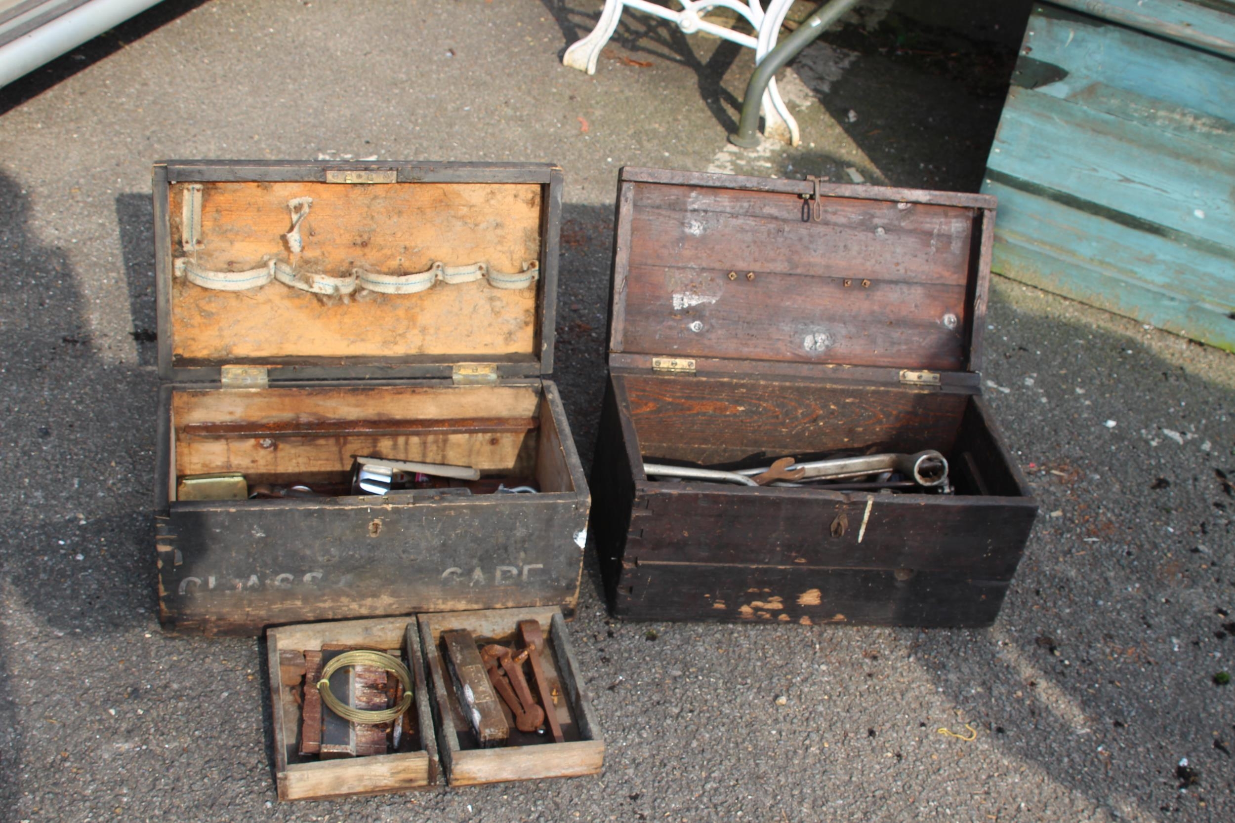 2 X VINTAGE TOOL BOXES AND CABINET WITH CONTENTS 46 X 24 X 22CM