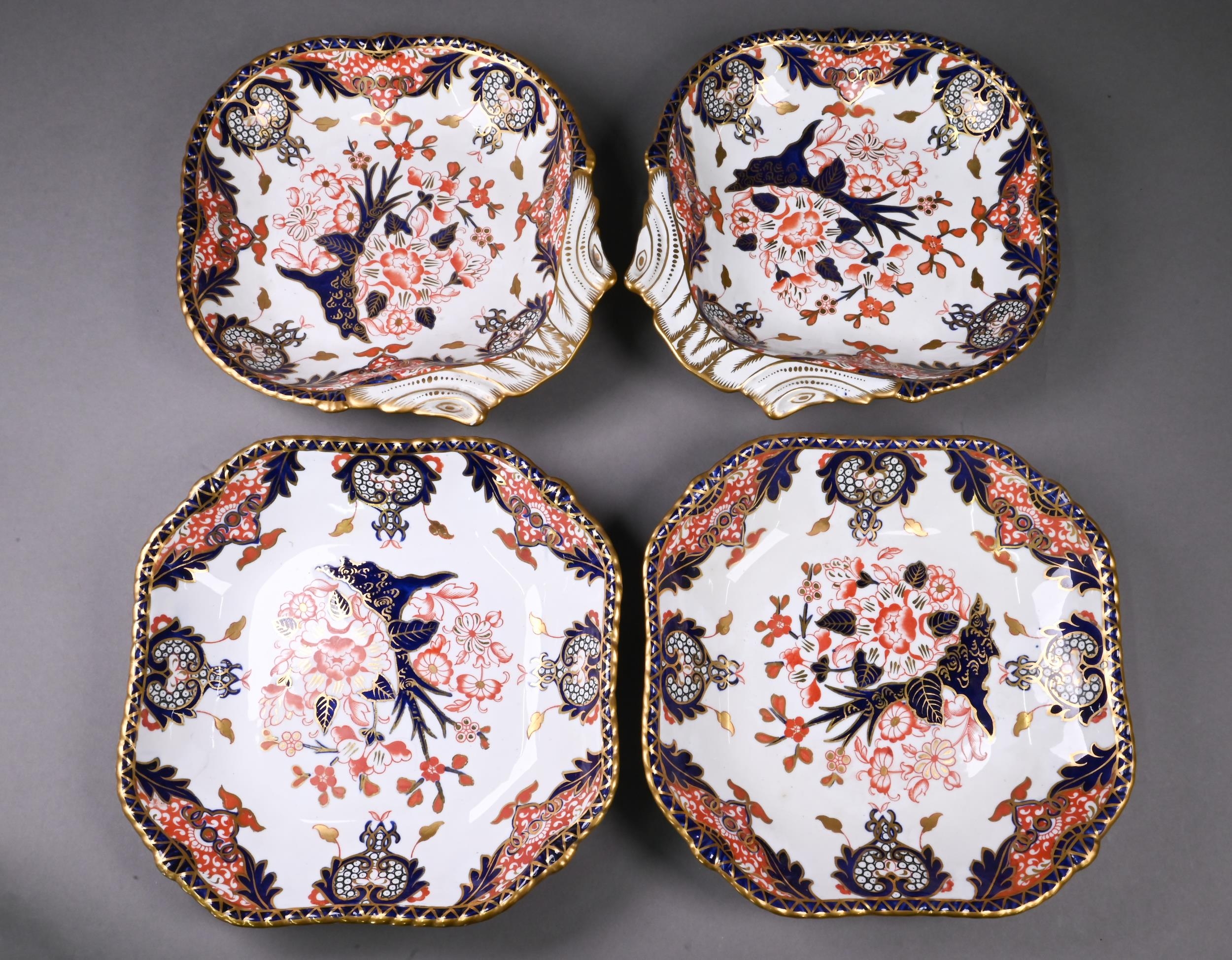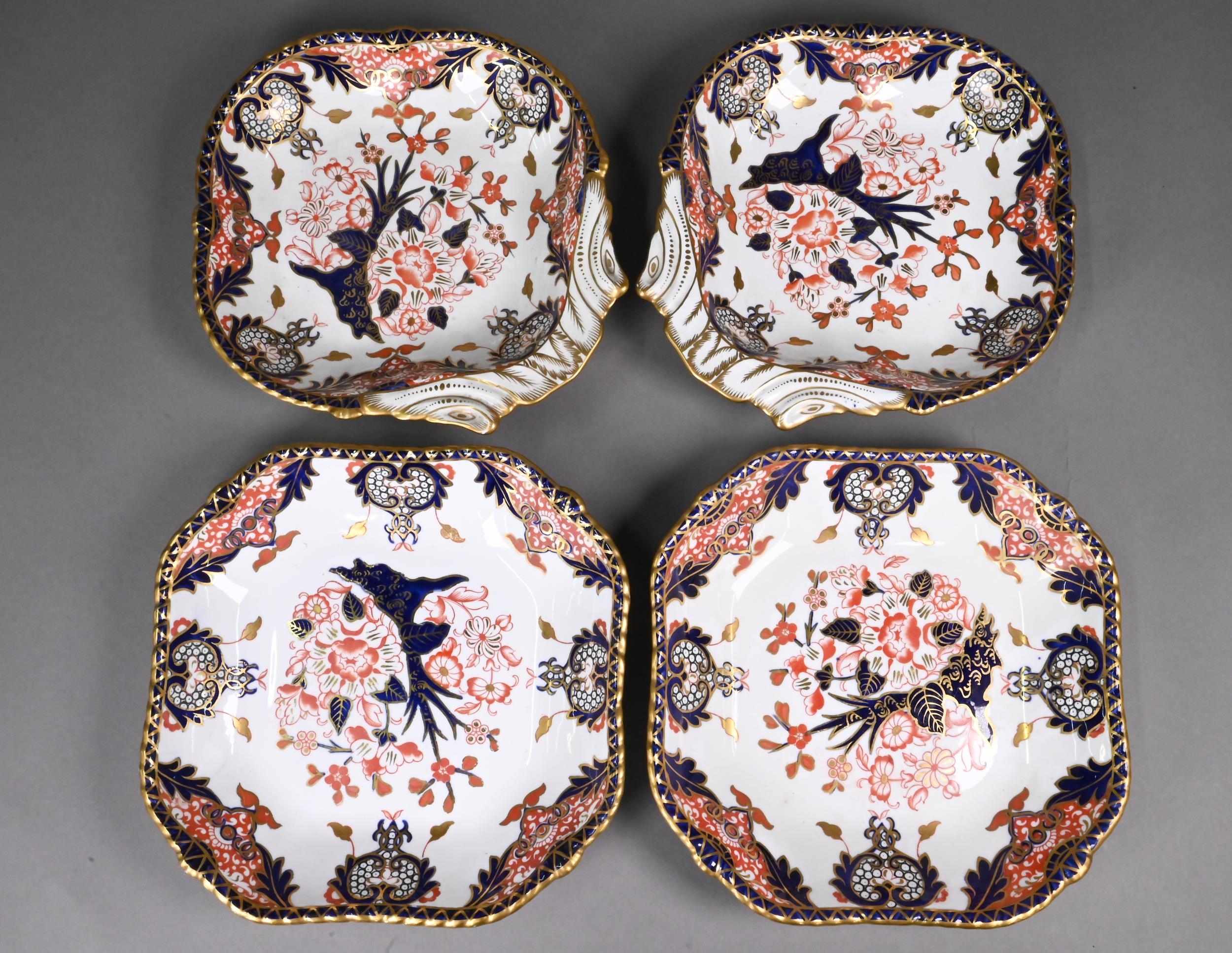 Two pairs of Royal Crown Derby china Imari serving dishes, 1905-07, 23 cm square and 26 x 24 cm (4)