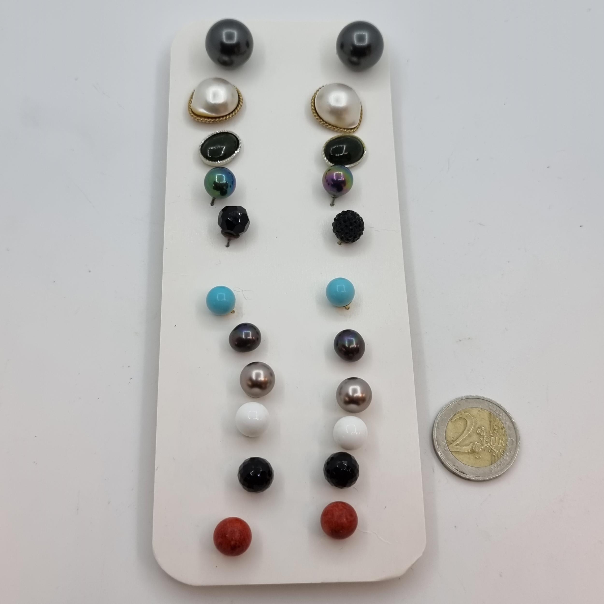 A collection of 11 pairs of vintage costume jewellery stud earrings. Inc Mother of pearl, turquoise, Lapiz etc