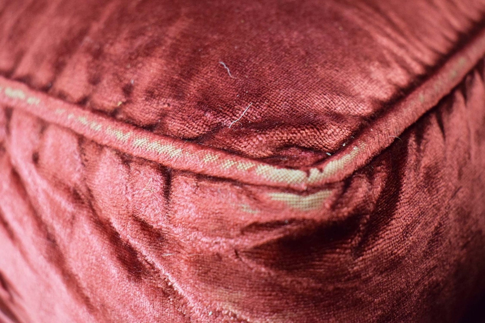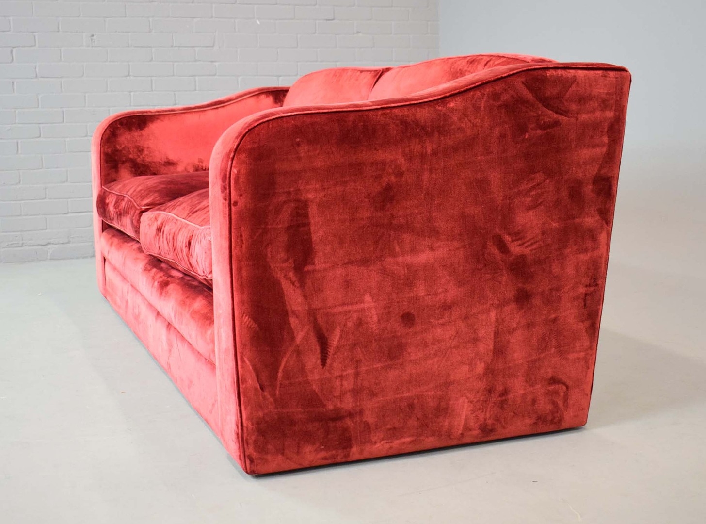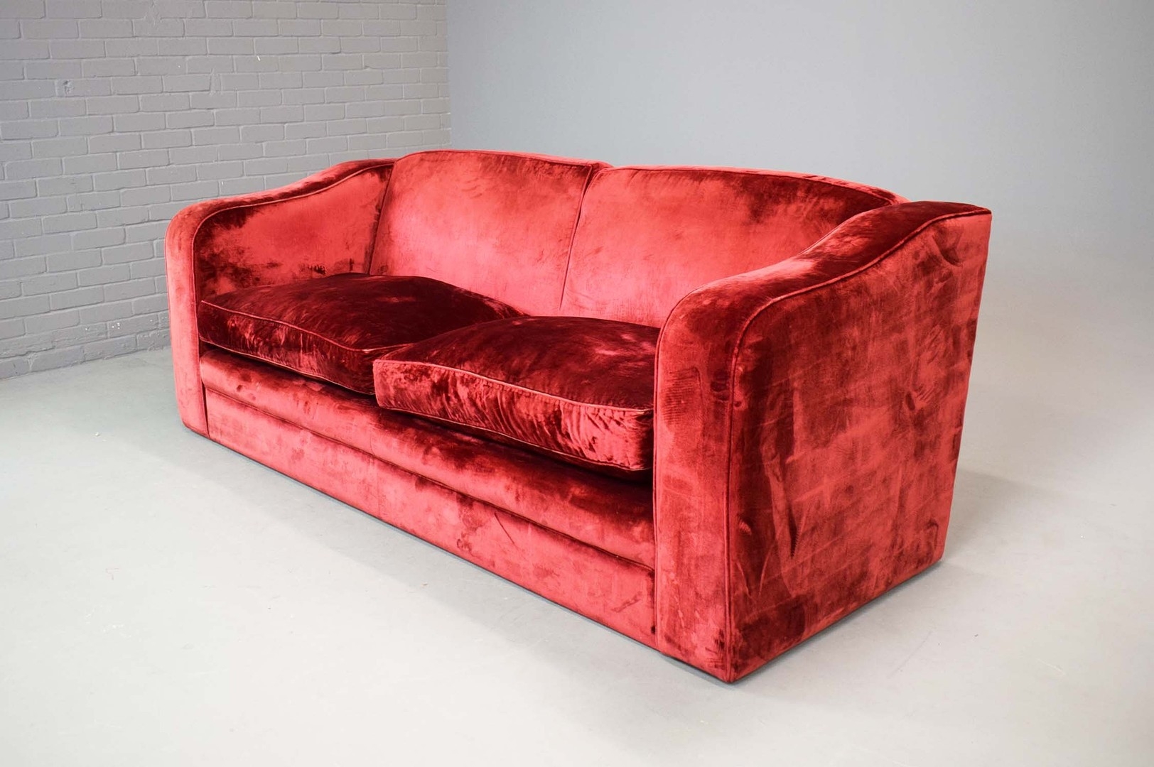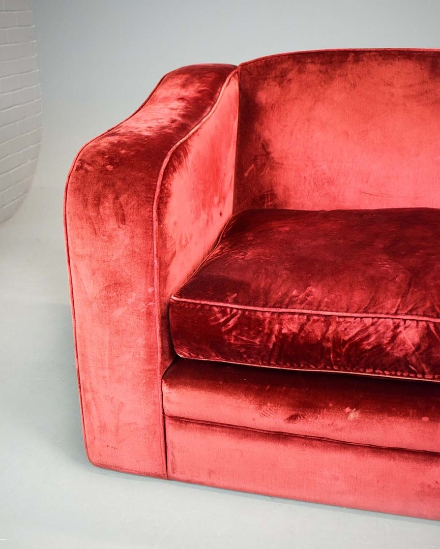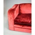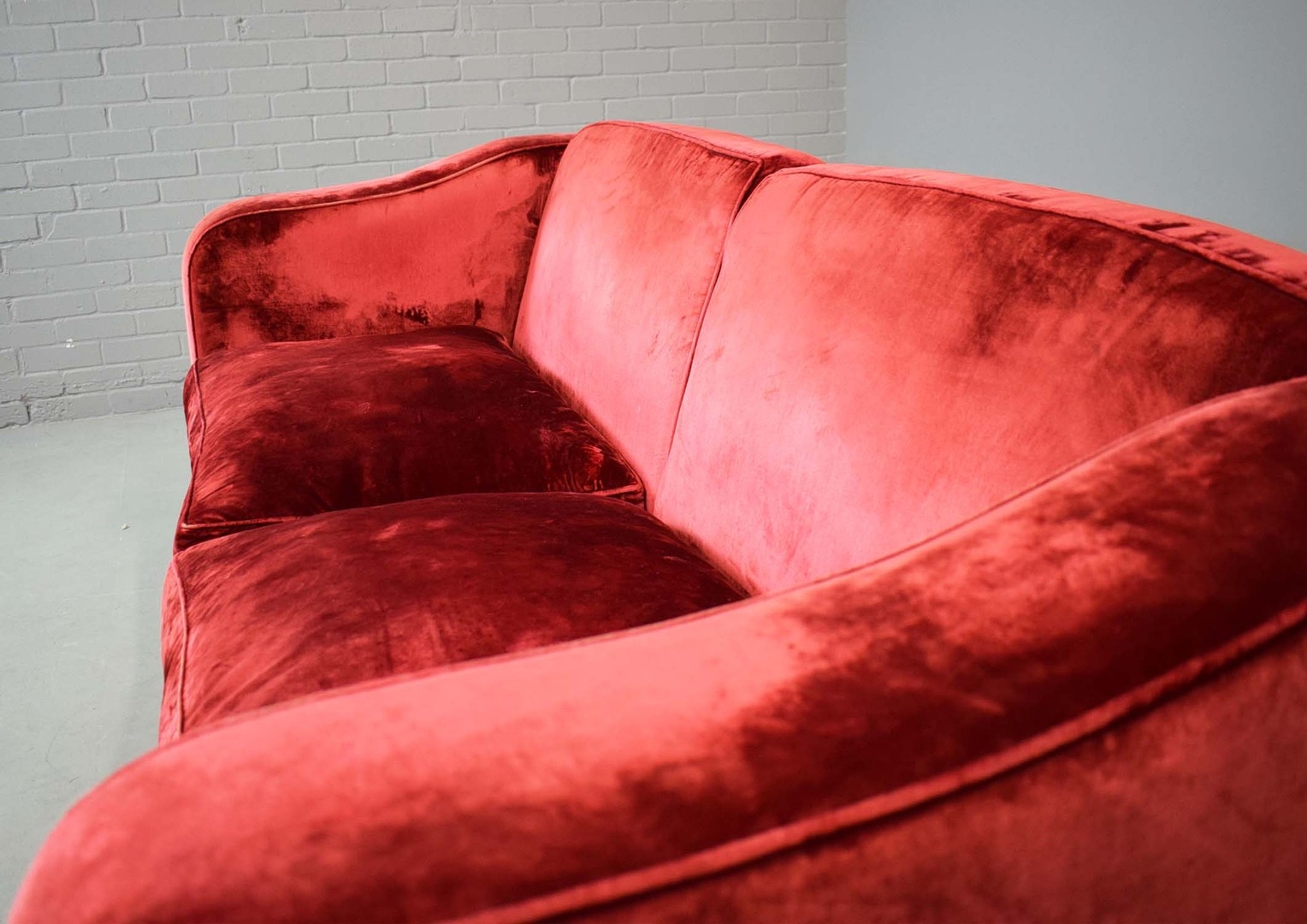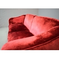 SOFA, RED VELVET. 85cm t x 231cm w x 95cm d.