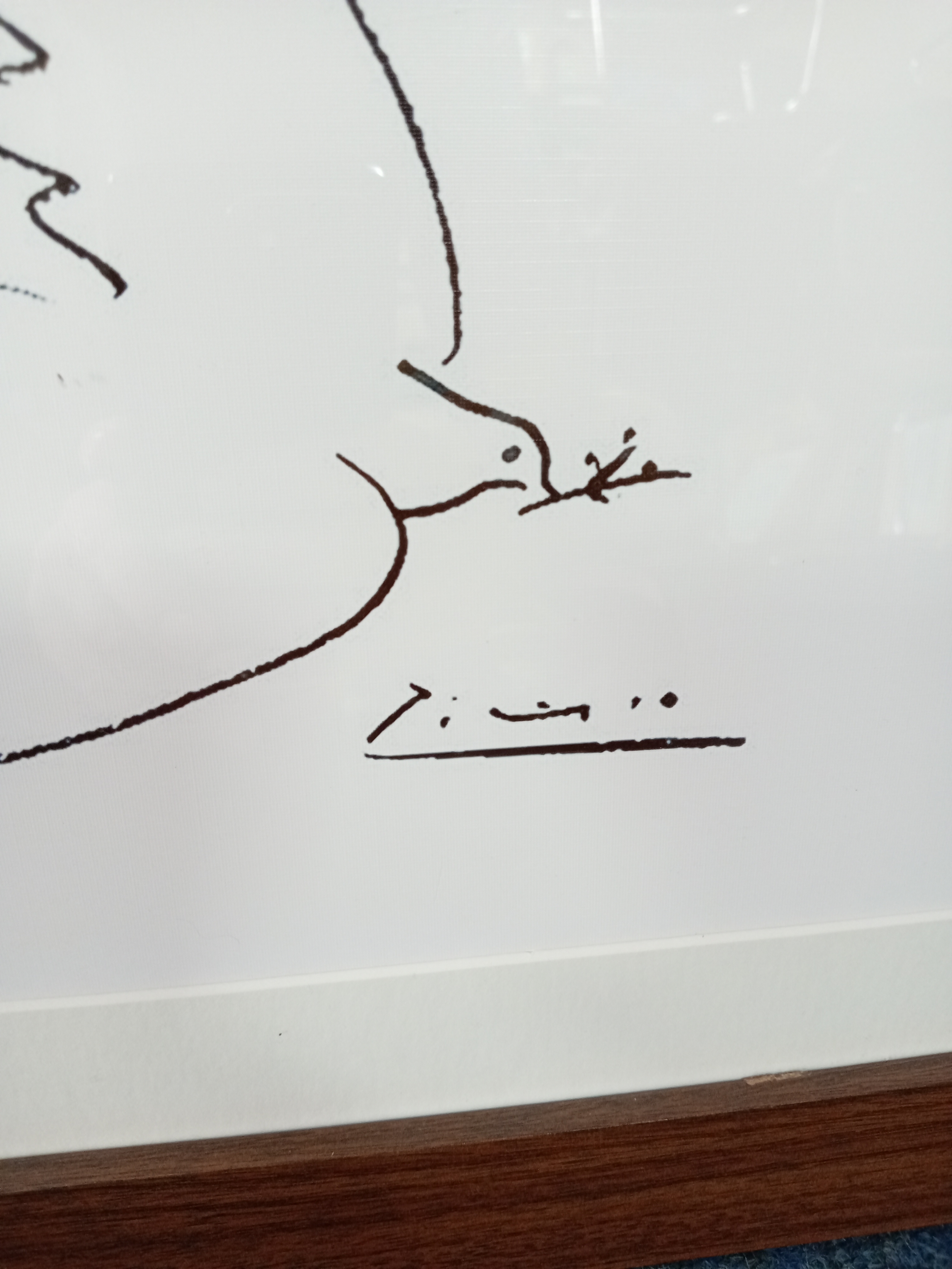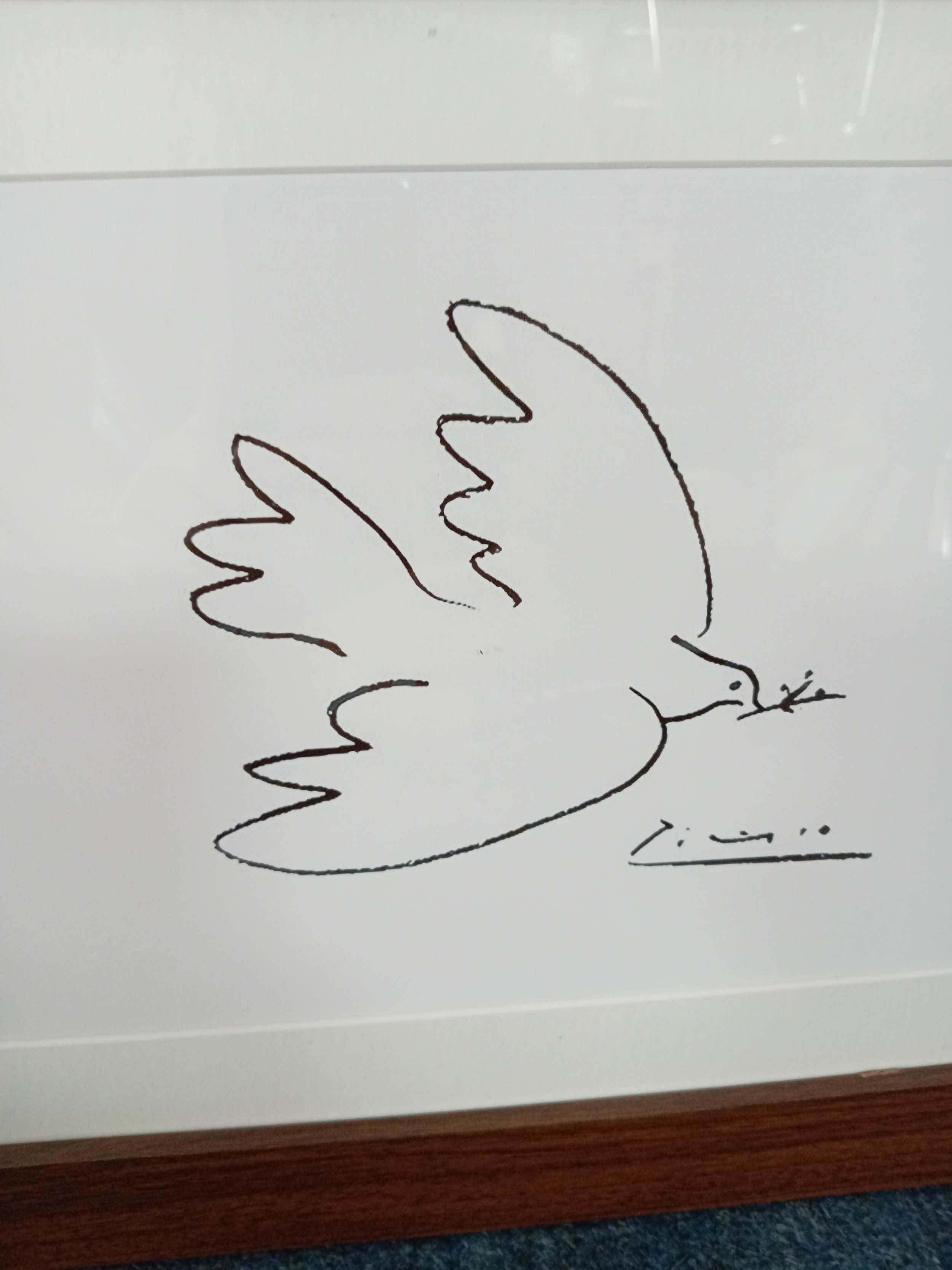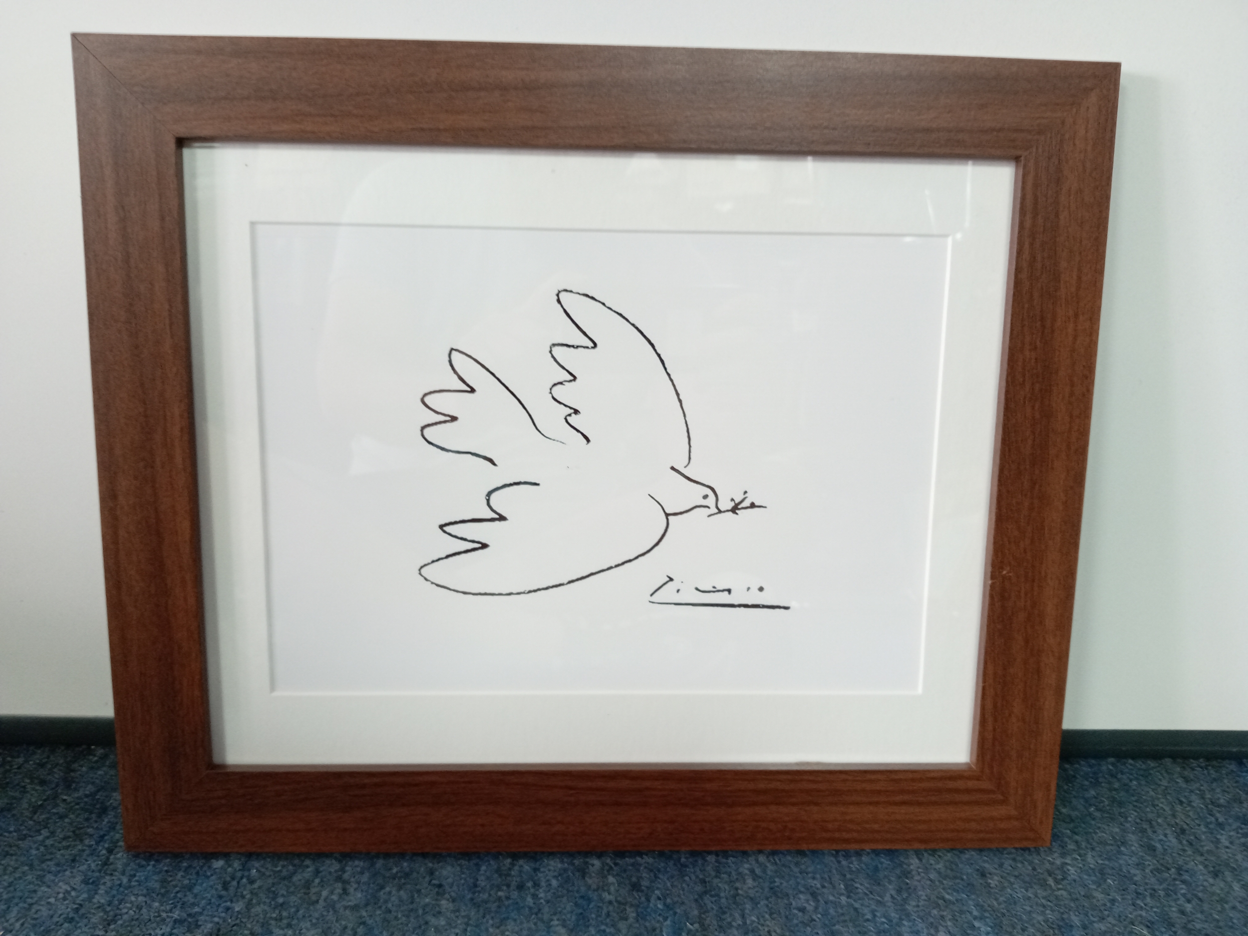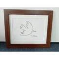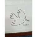 A framed lithograph of Pablo Picasso 'Dove of peace' measures 42cm x 35cm.