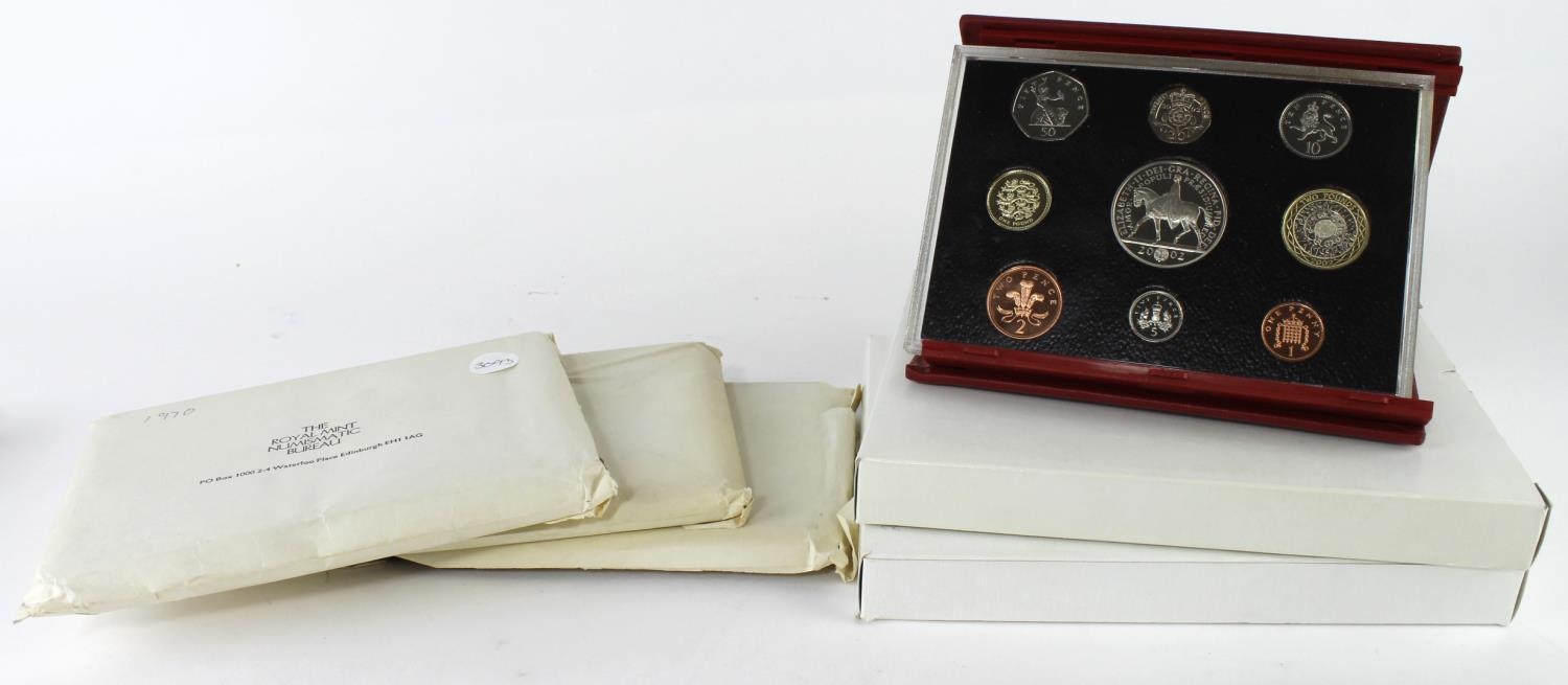 GB Proof Sets (6) 1970 x3, 2000, 2001 & 2002 (red case) aFDC...