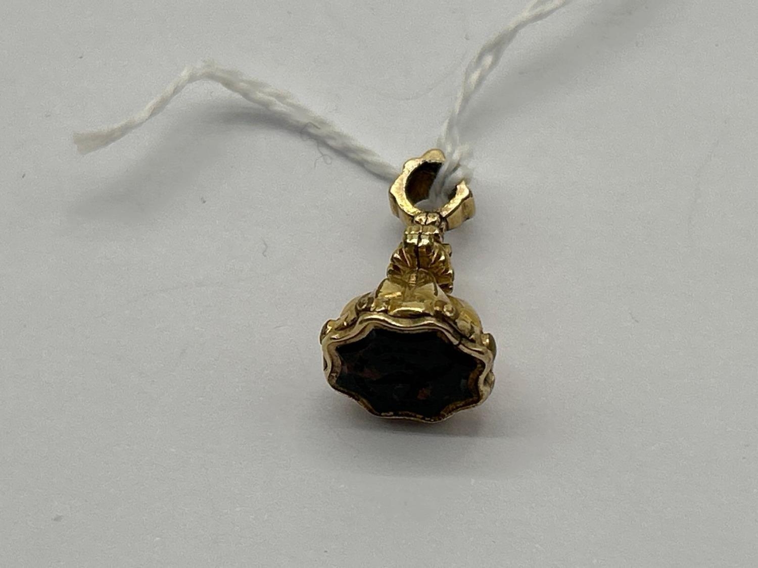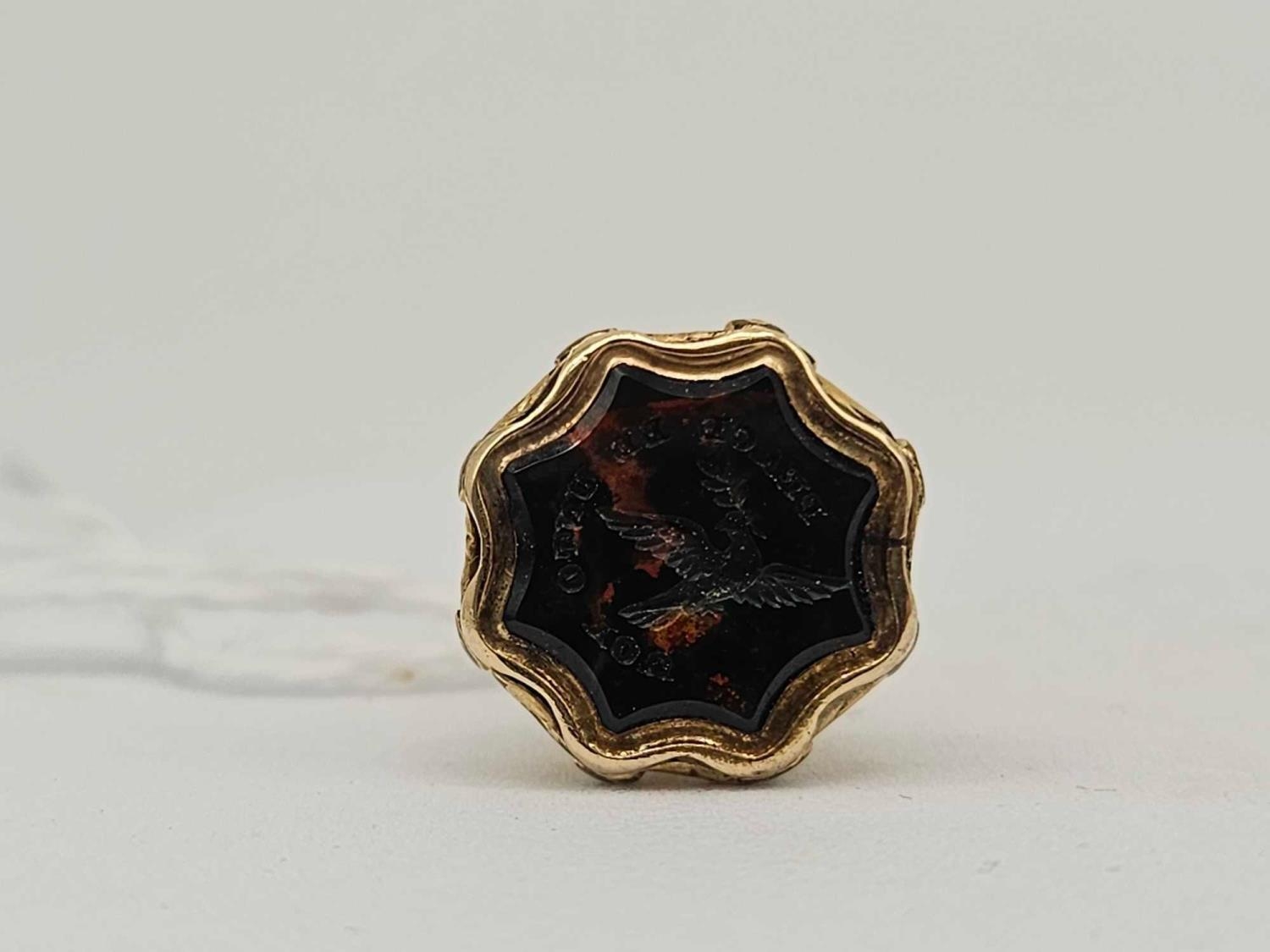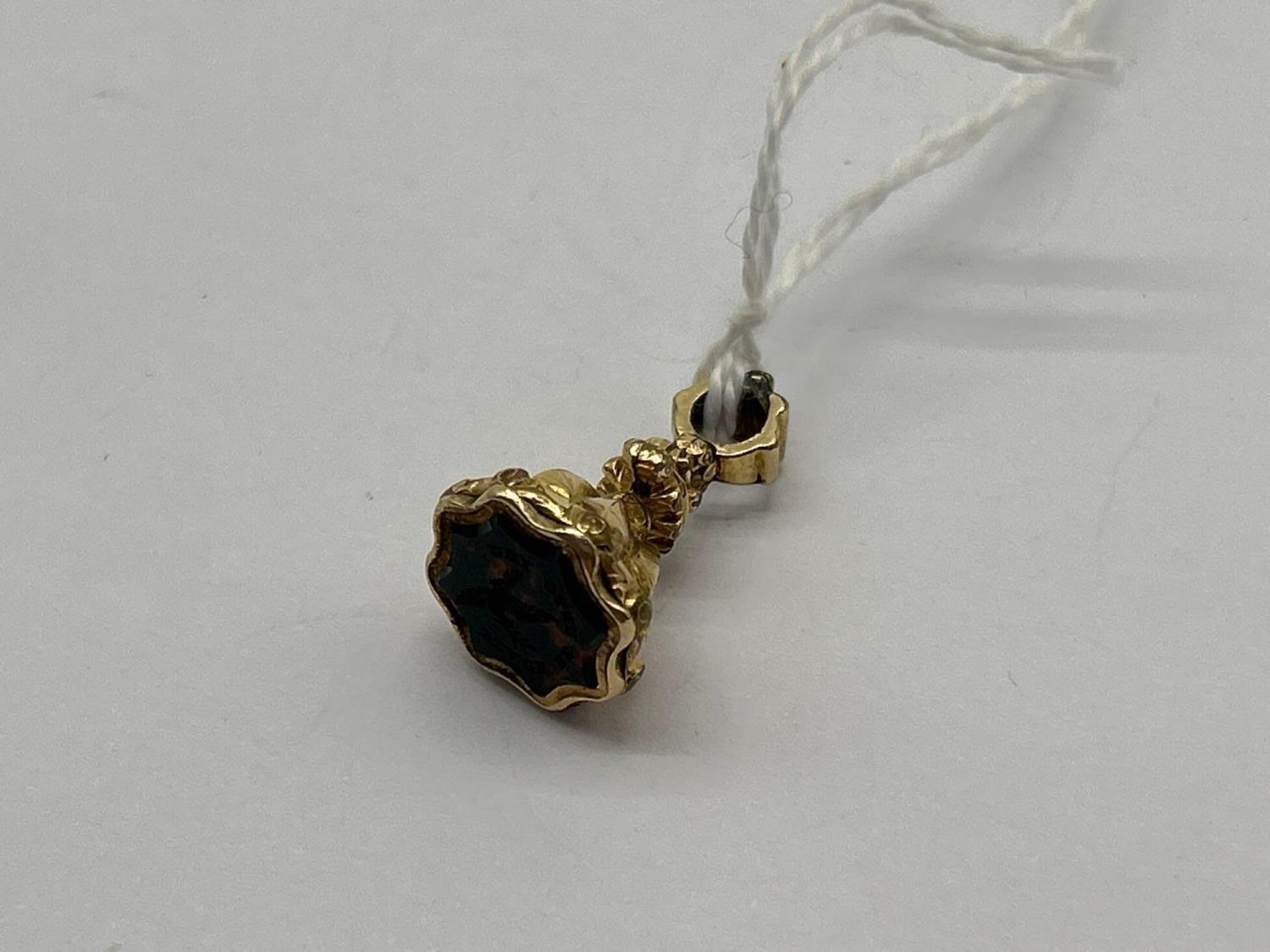 A 19th century gold cased seal fob with bloodstone 4.4g