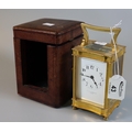 French gilt brass carriage clock having full depth Arabic dial marked 'Charman D Neill Ltd Belfast', together with associated but not original leather carrying box.