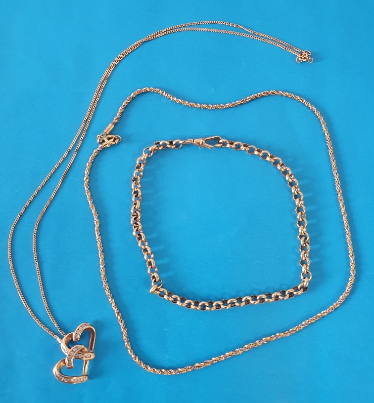 9ct Gold Bracelet and two 9ct Gold Necklaces, total weight 11.2g (3 in lot)