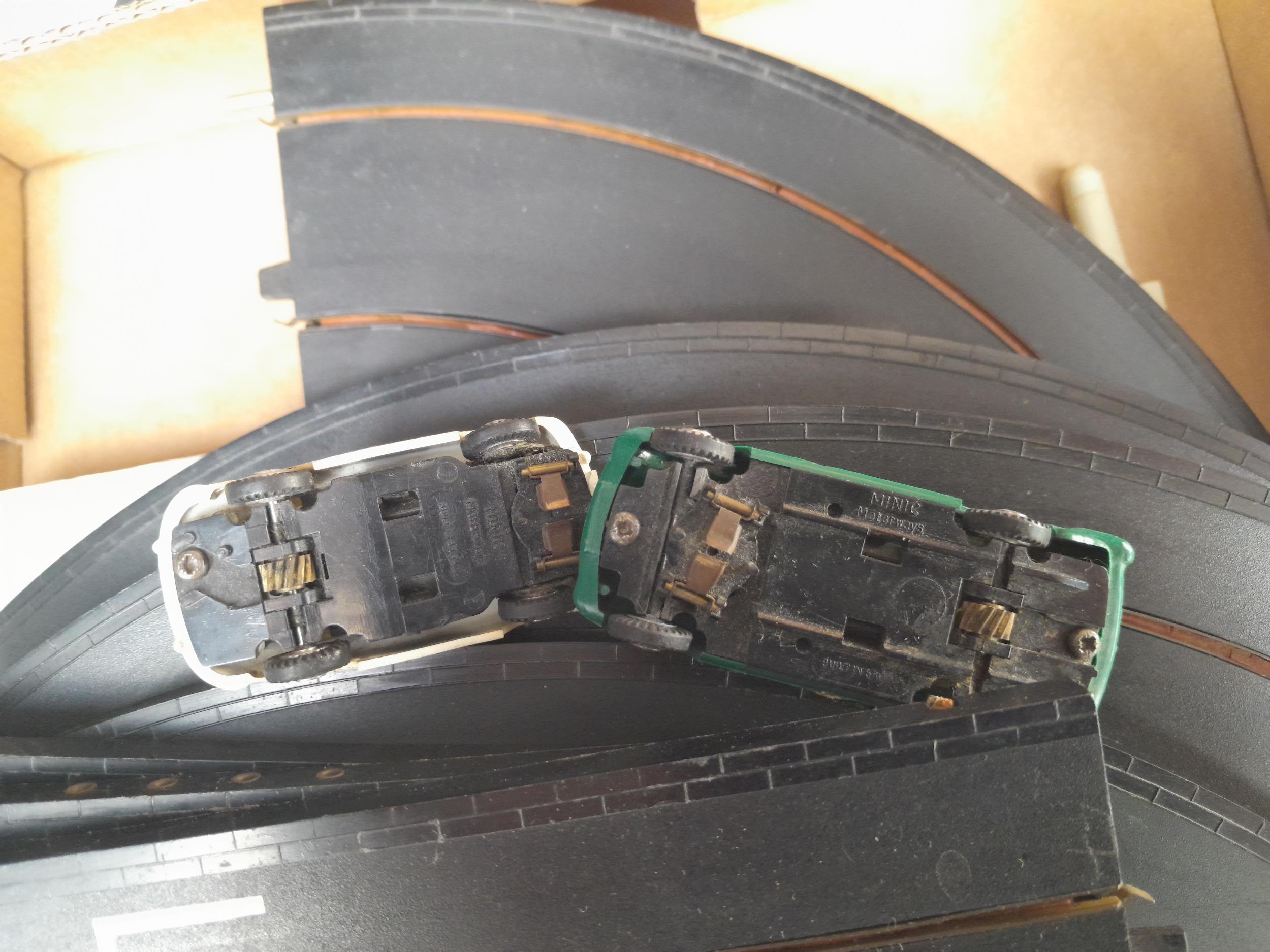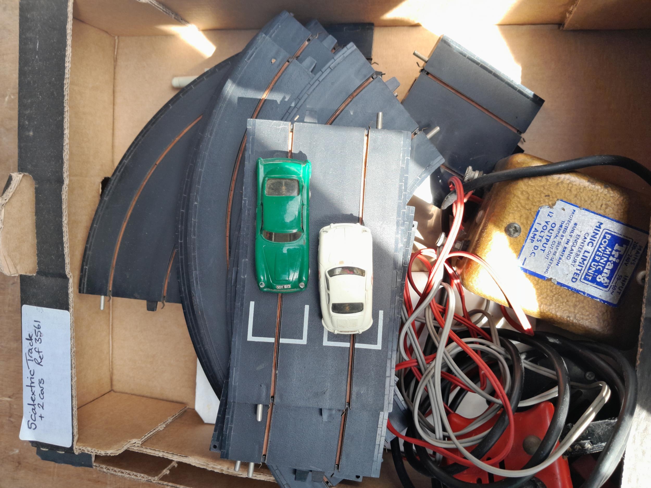 Vintage Minic Motorways track, 2 x cars untested, transformer untested