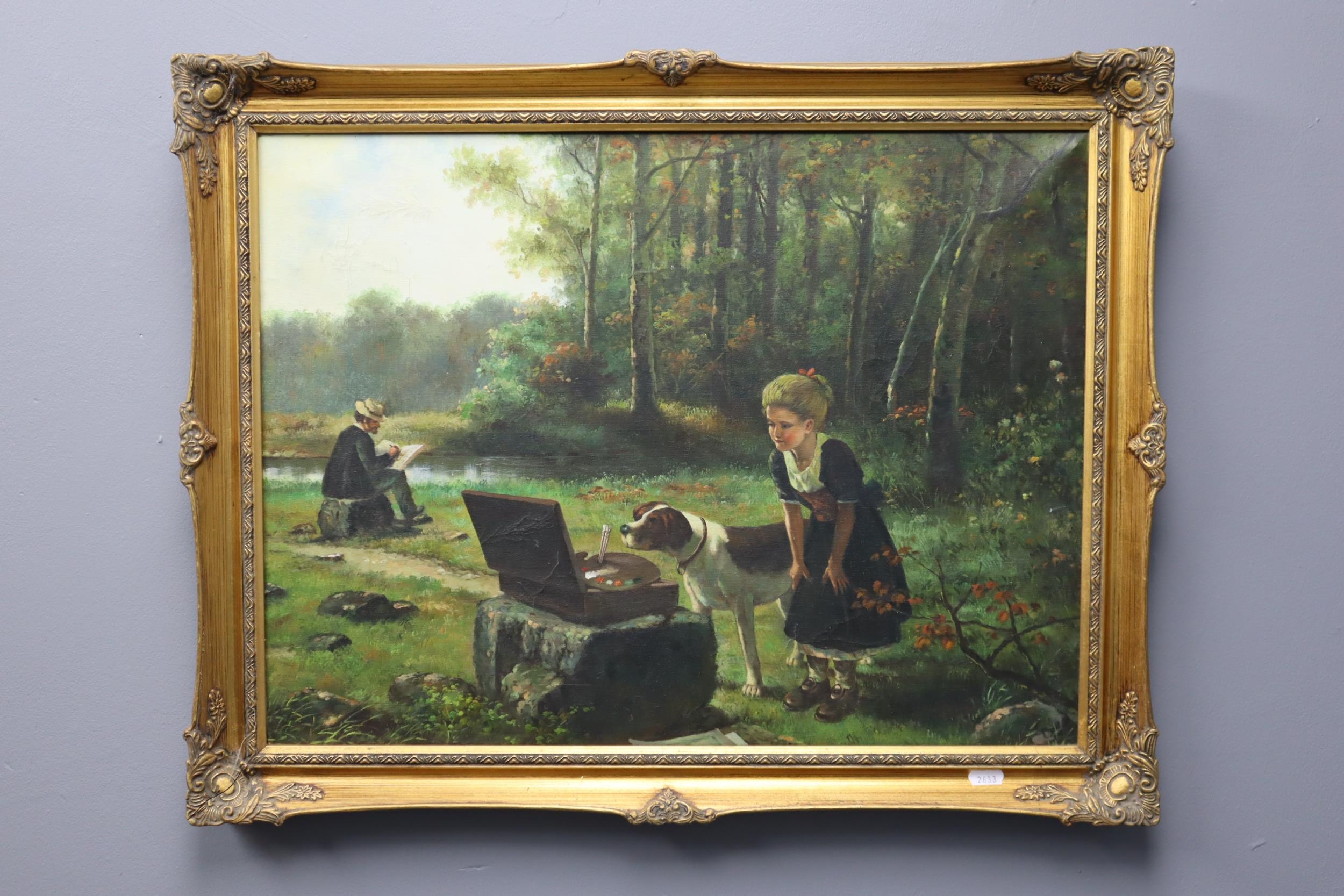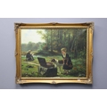 Original Oil on Canvass of Victorian Country Scene in Gilt Framed Mount signed by Artist