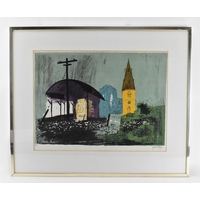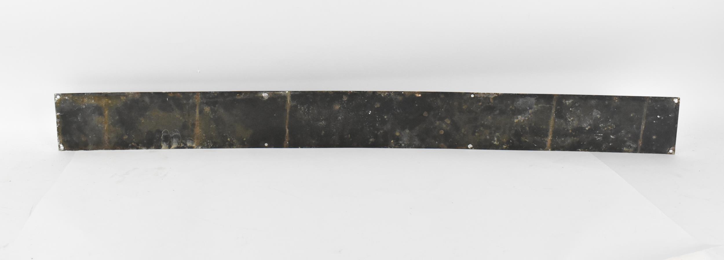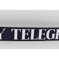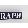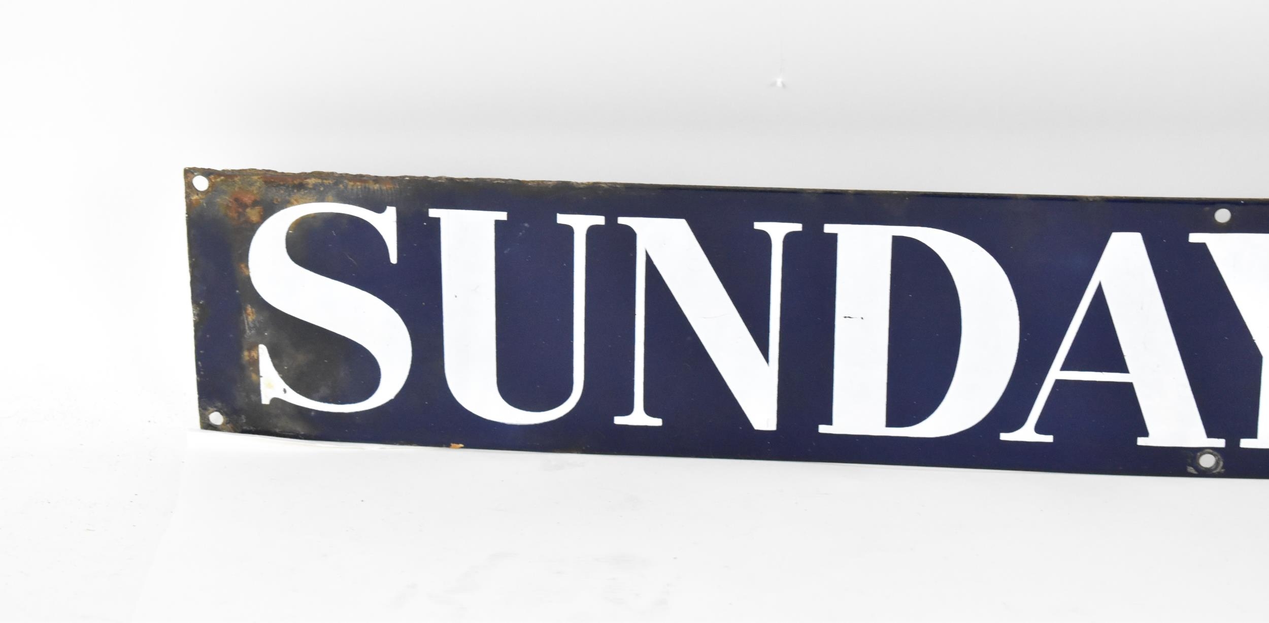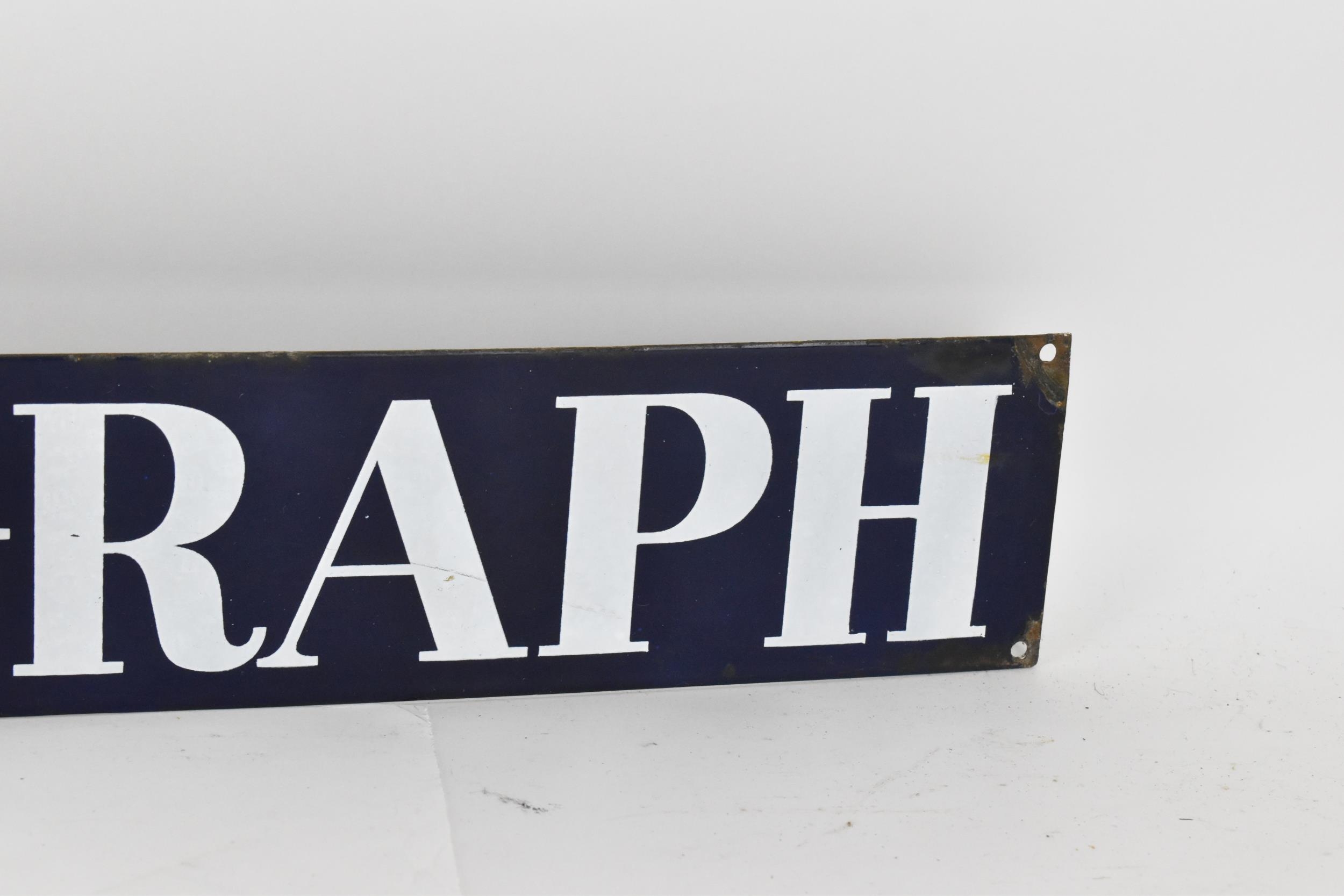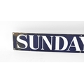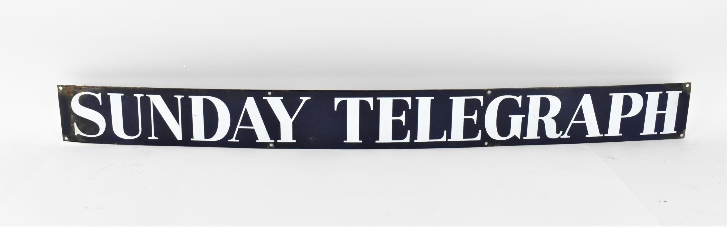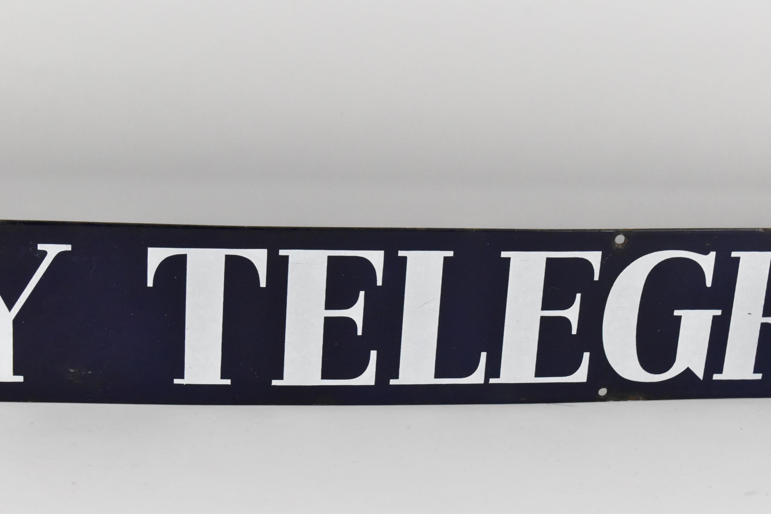 A Sunday Telegraph enamel sign, with white lettering on blue ground, eight drilled holes for mounting, 10 cm x 106.5 cm