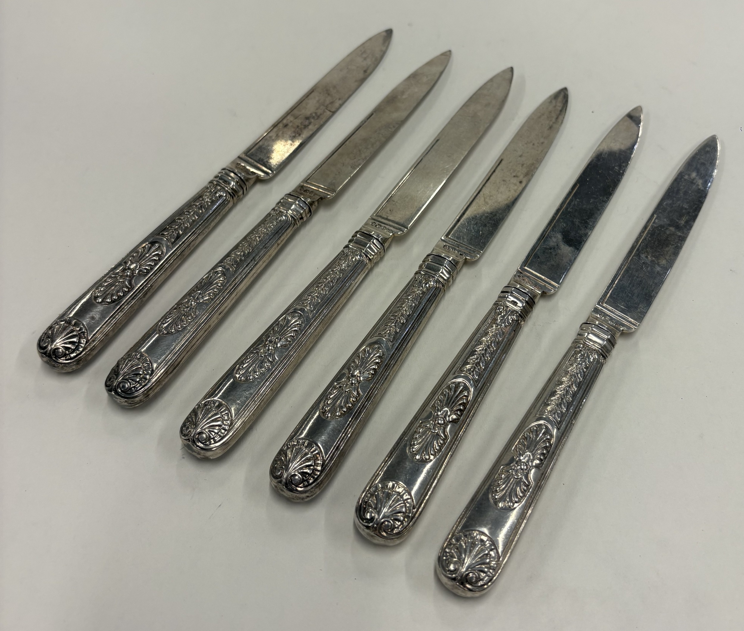 PAUL STORR: A set of six silver knives. London 1829. Approx. 400 grams of gross weight. Est. £1000 - £1500.