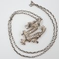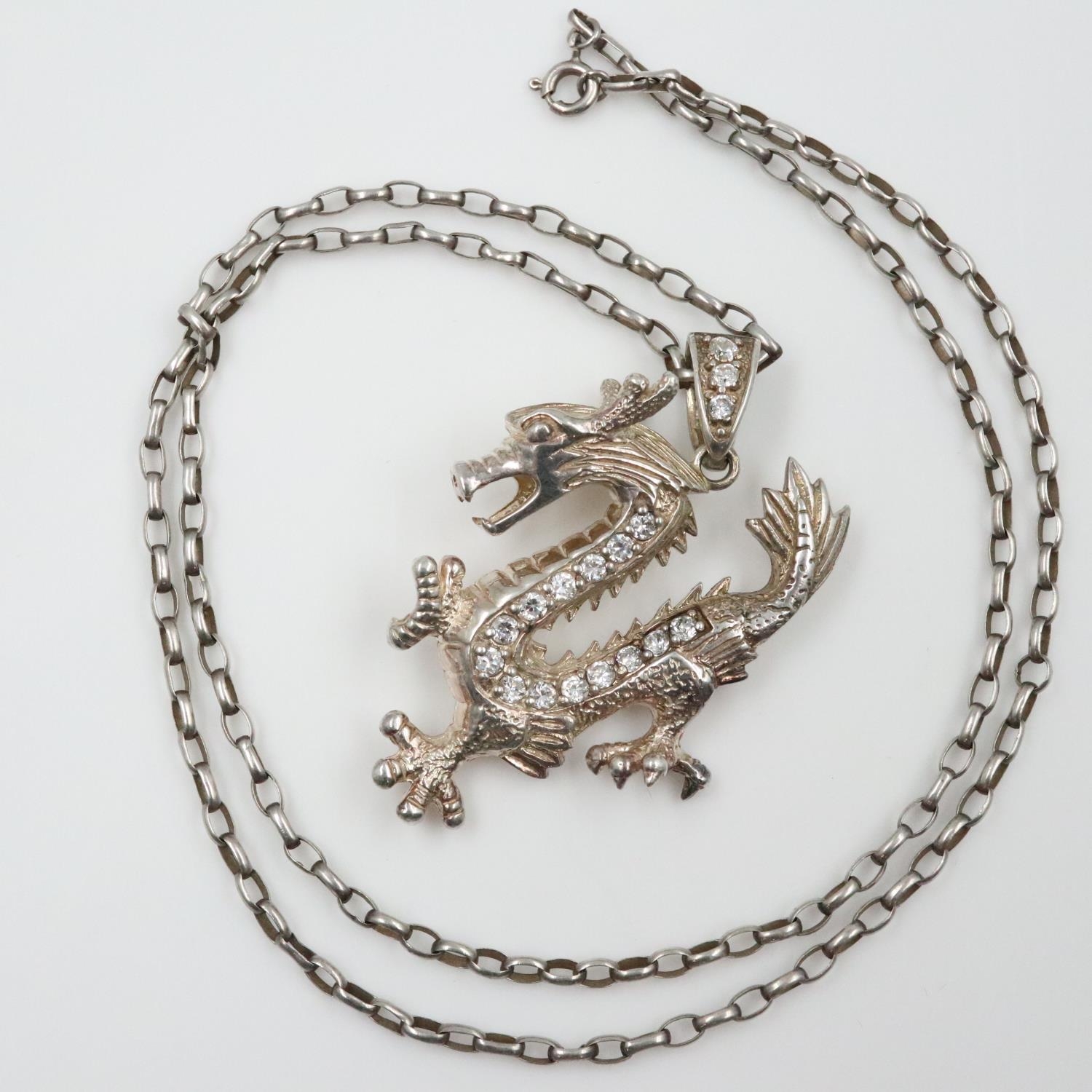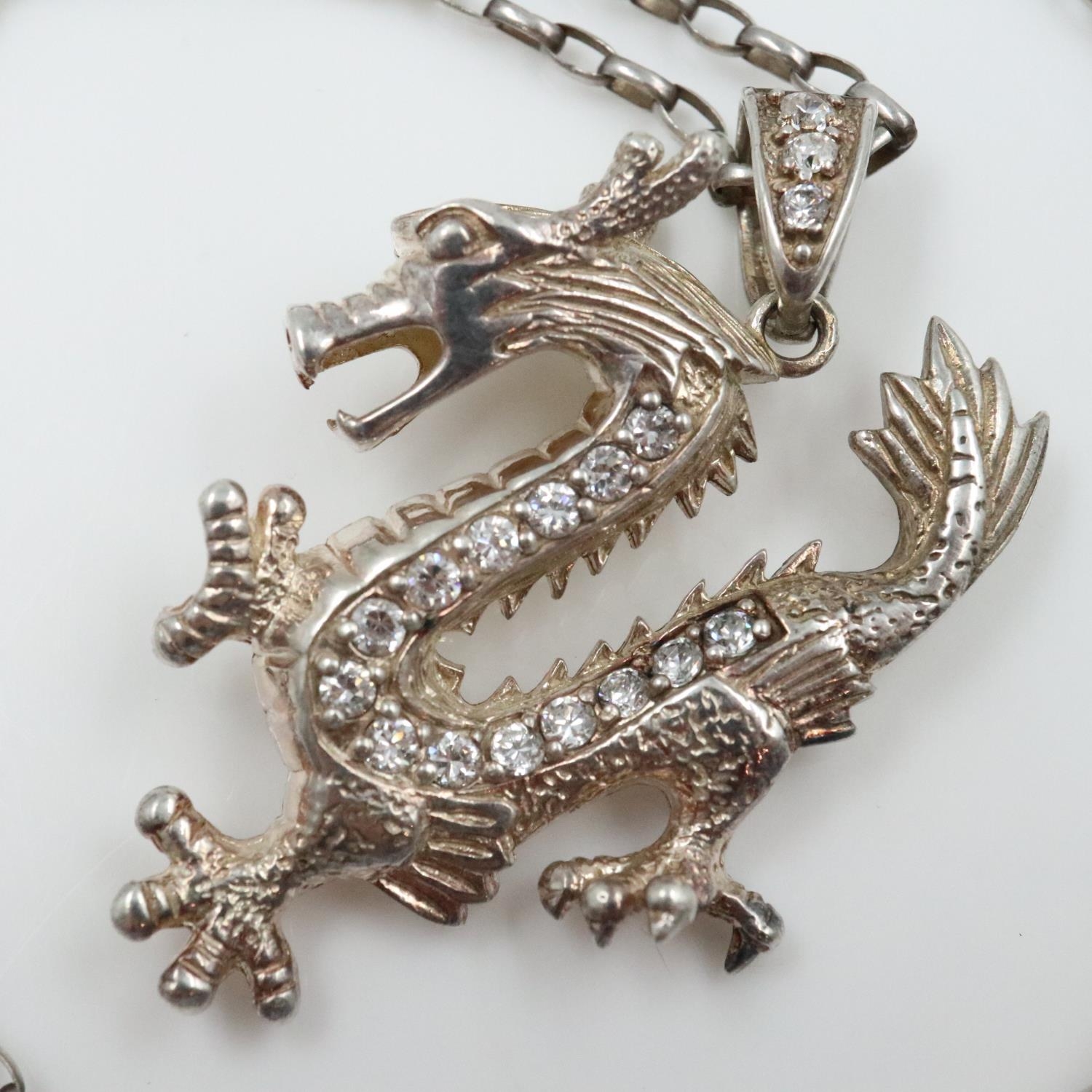 Hallmarked silver stone-set Welsh dragon pendant necklace. UK P&P Group 0 (£7+VAT for the first lot and £1+VAT for subsequent lots)
