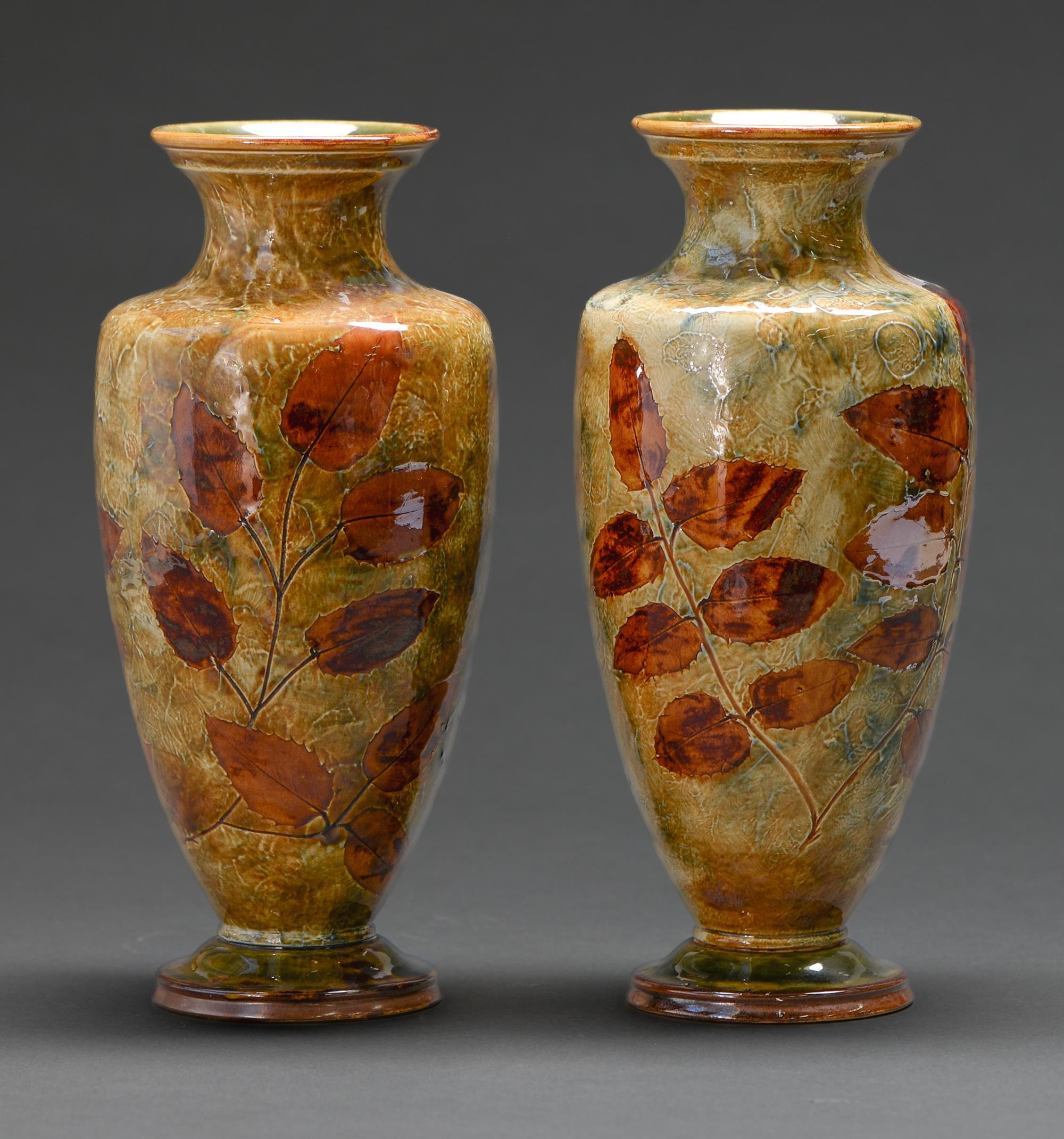 Two Doulton Natural Foliage Ware vases, c1910, 31.5cm h, impressed marks