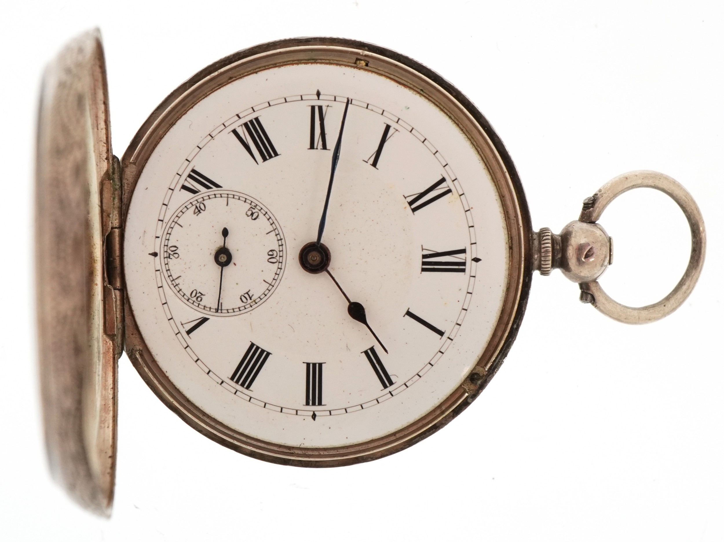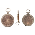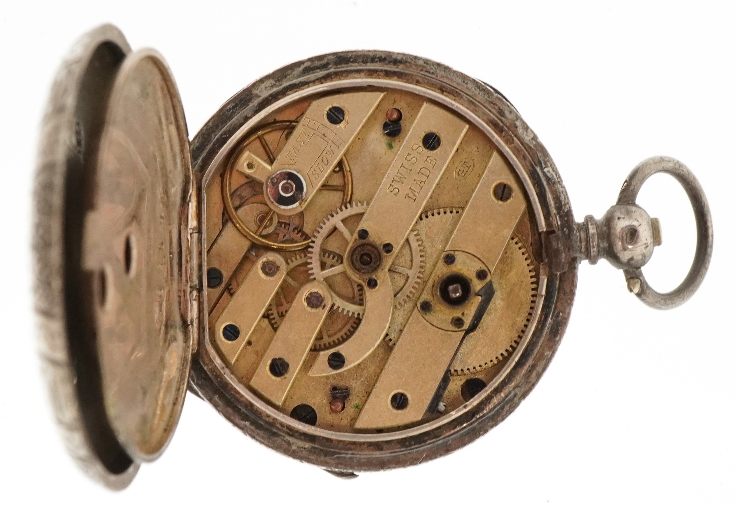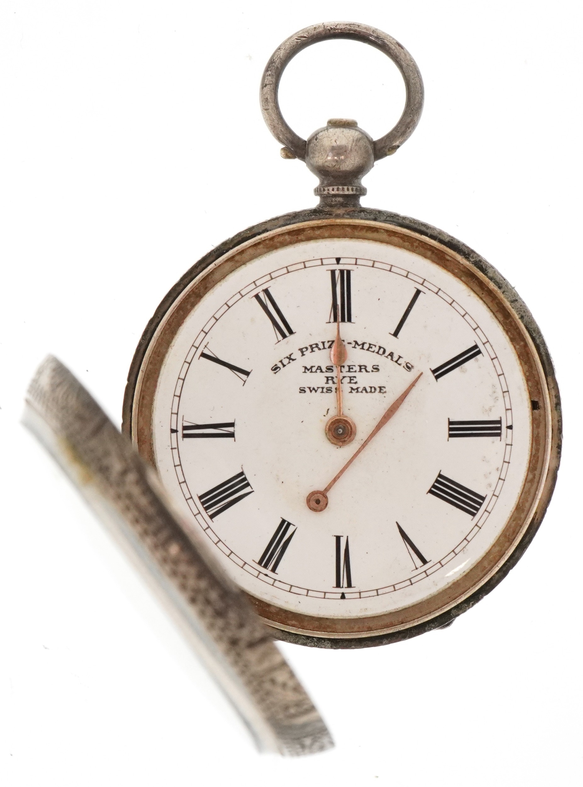 Two ladies silver open face keywind pocket watches having enamelled dials with Roman numerals, the largest 40mm in diameter.